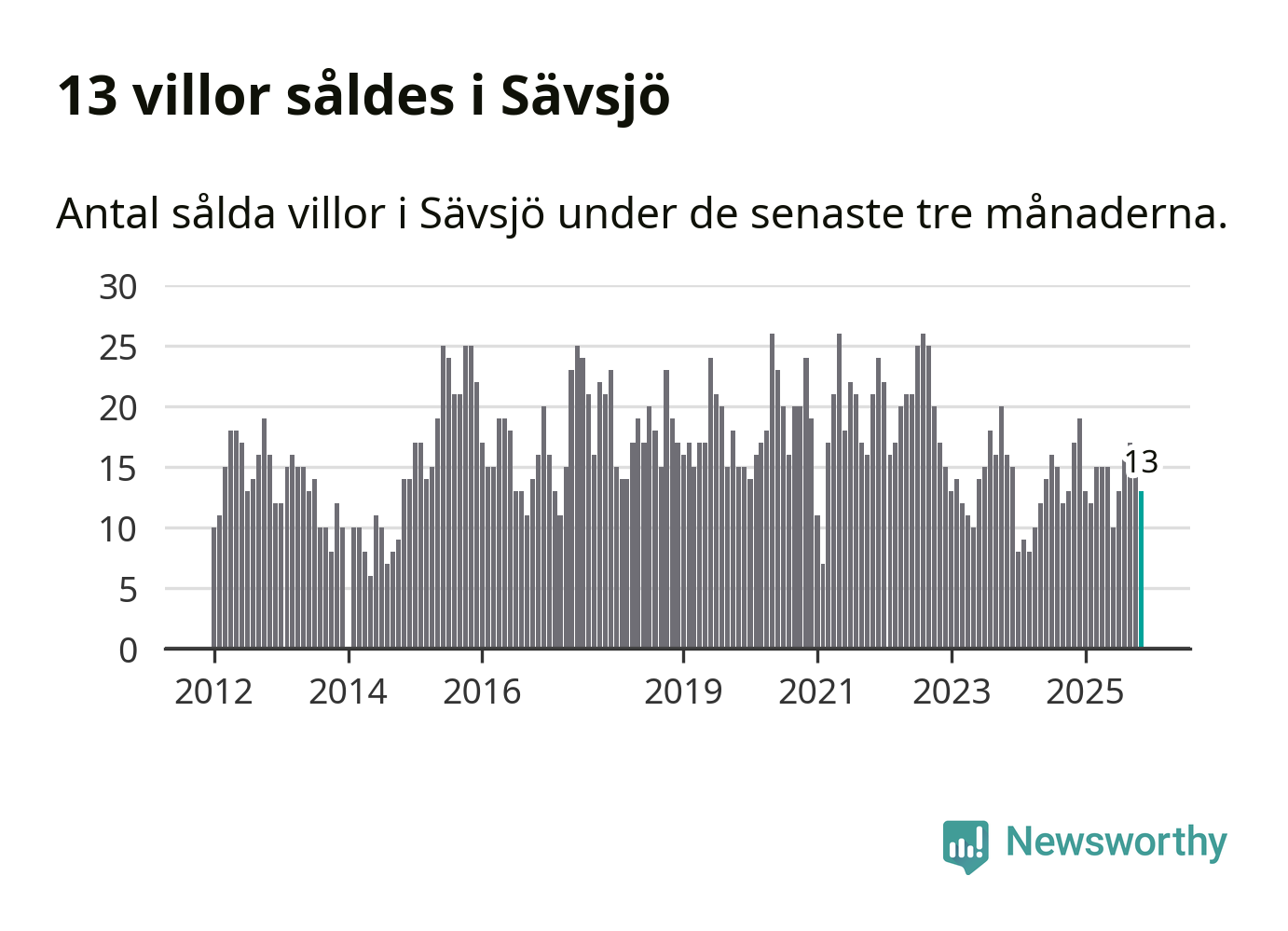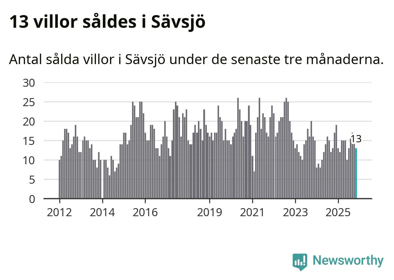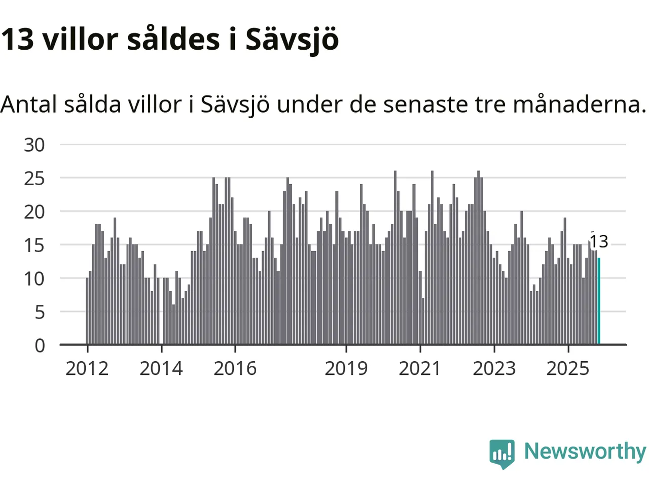 Mellan september och november gjordes sammanlagt 13 affärer med villor i Sävsjö kommun. Det kan jämföras med 17 vid motsvarande tid i fjol.