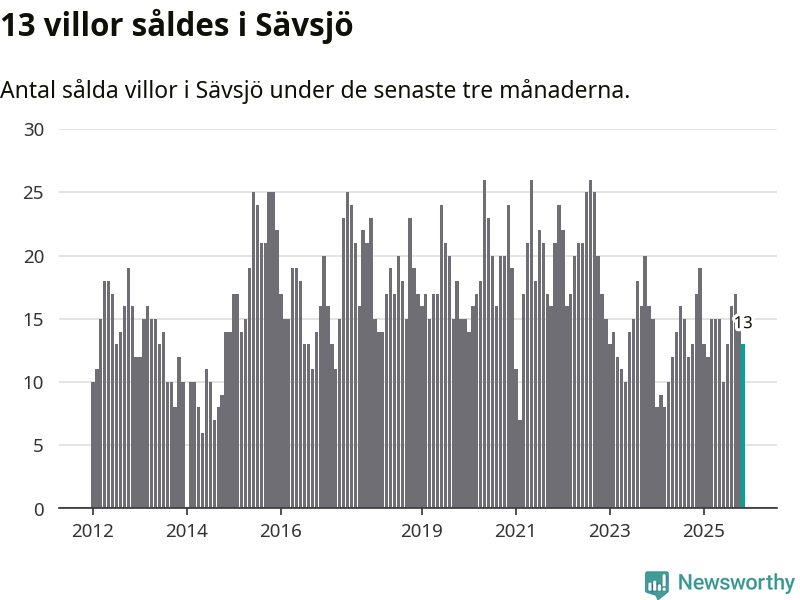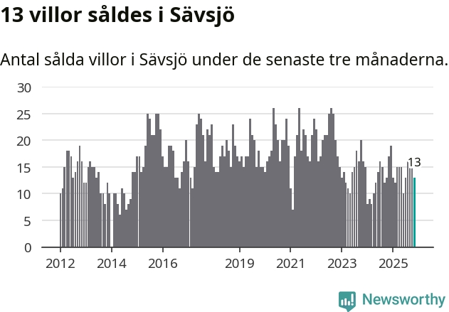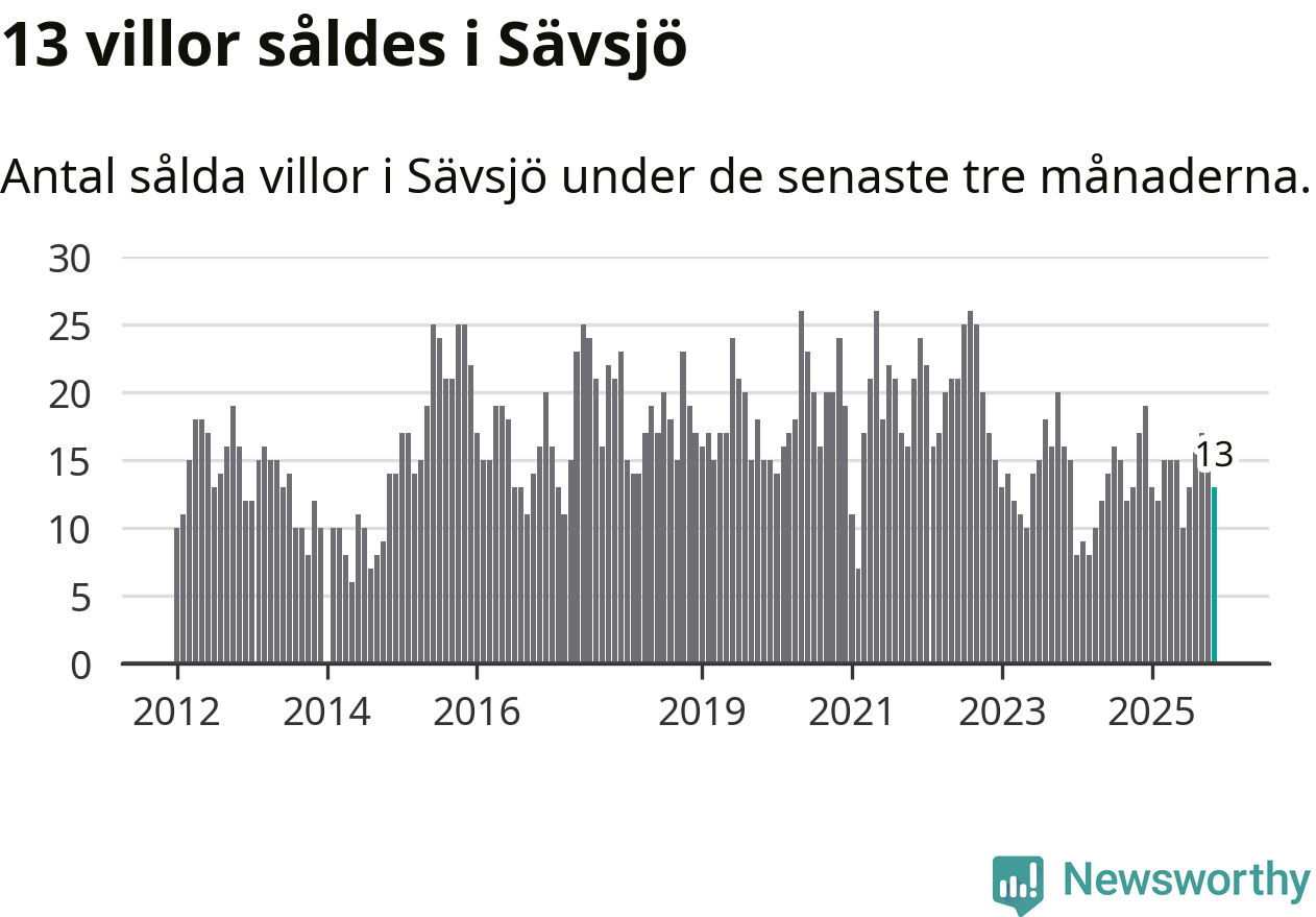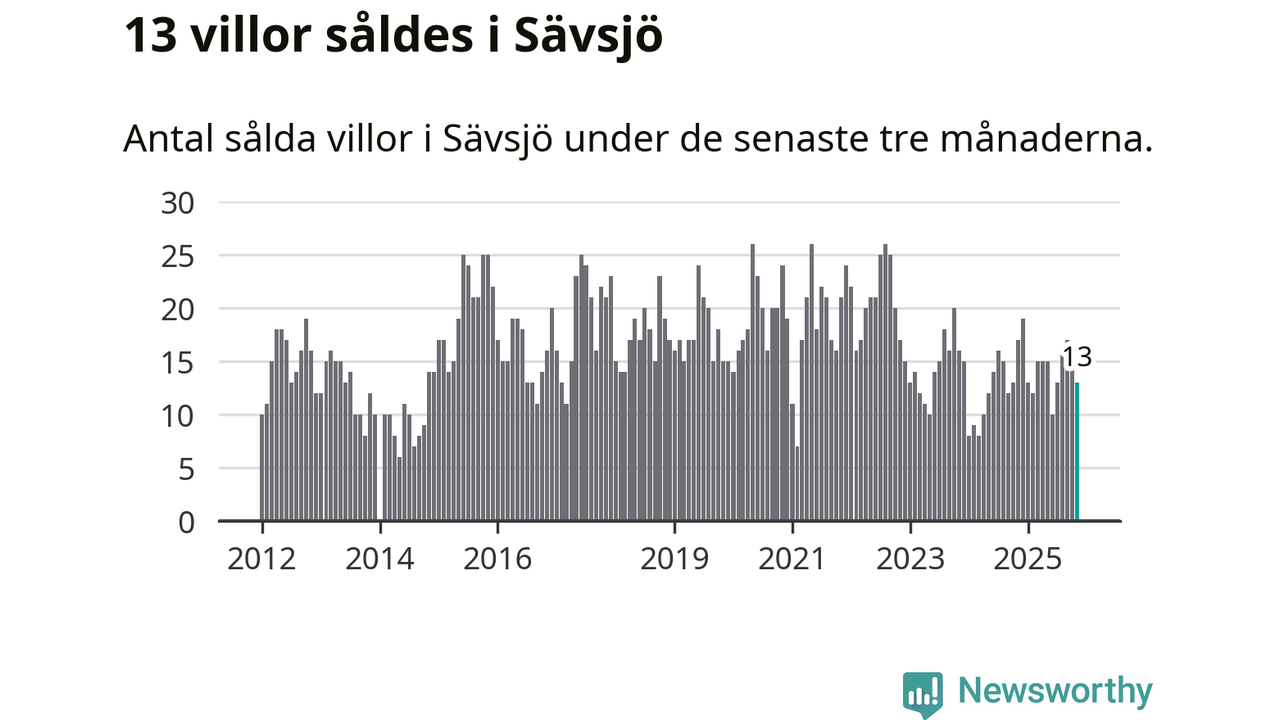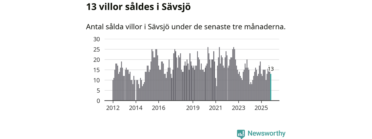 Mellan september och november gjordes sammanlagt 13 affärer med villor i Sävsjö kommun. Det kan jämföras med 17 vid motsvarande tid i fjol.