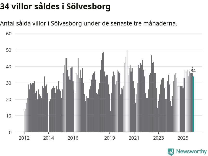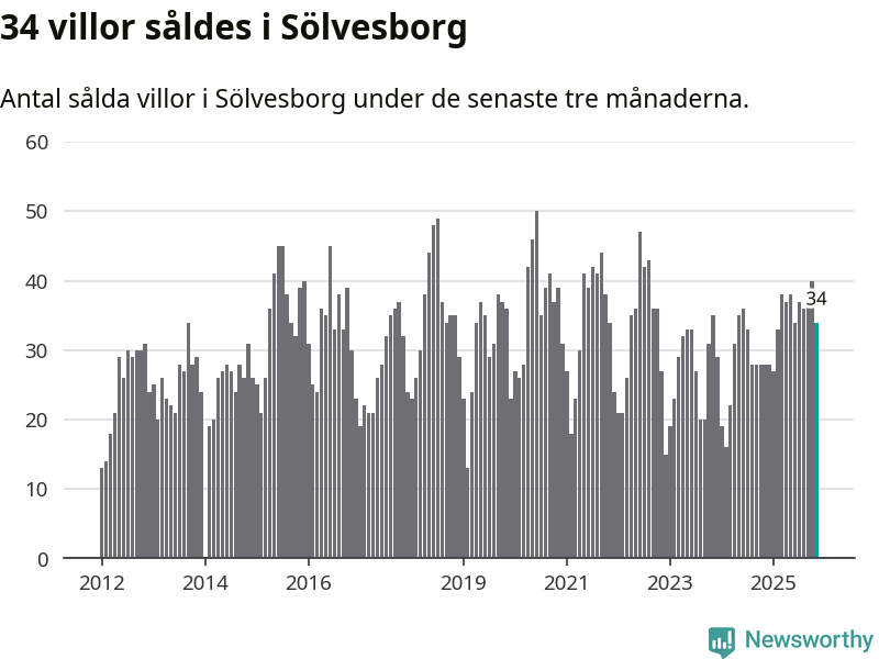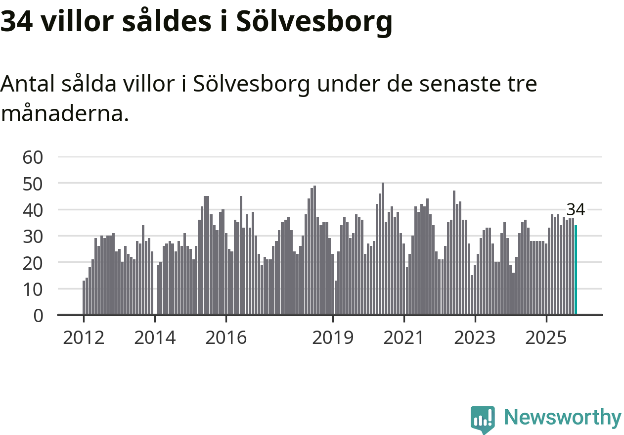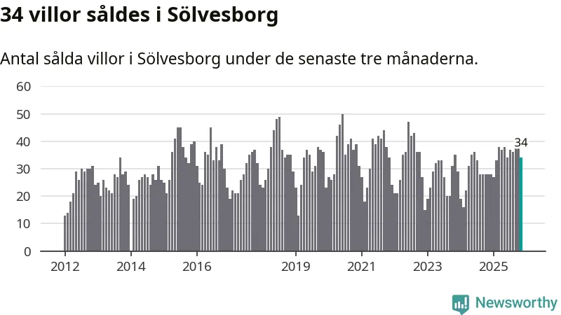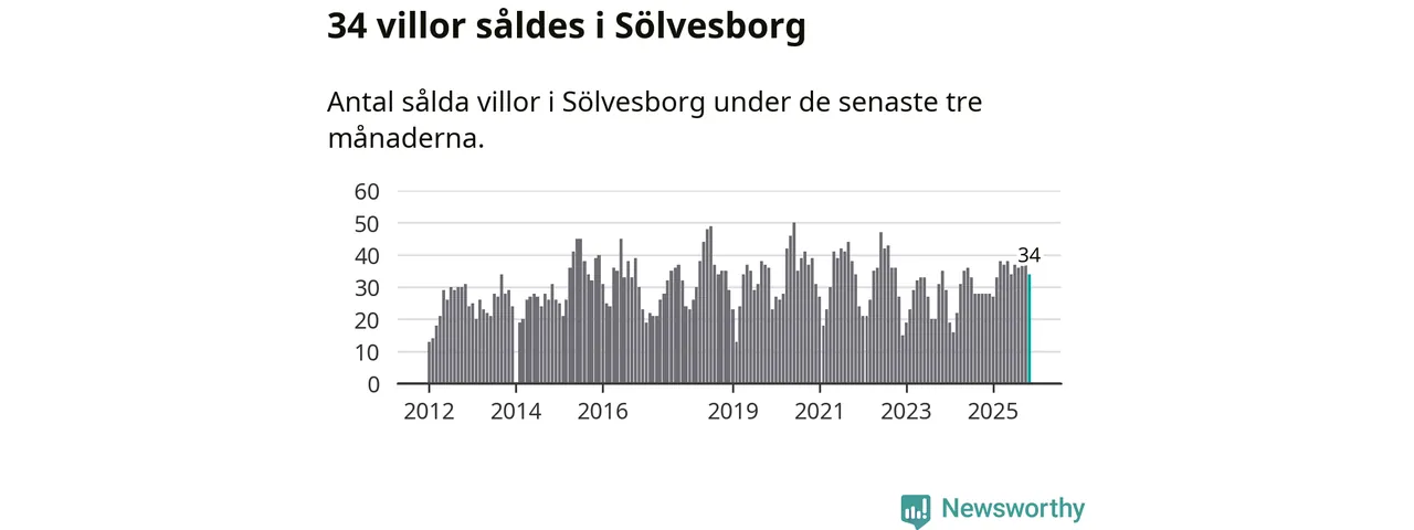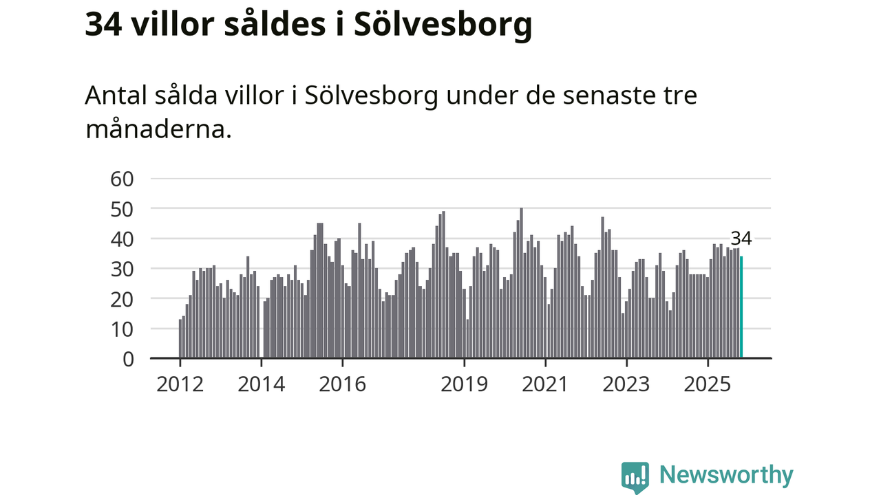 Mellan september och november gjordes sammanlagt 34 affärer med villor i Sölvesborgs kommun. Det kan jämföras med 28 vid motsvarande tid i fjol.
