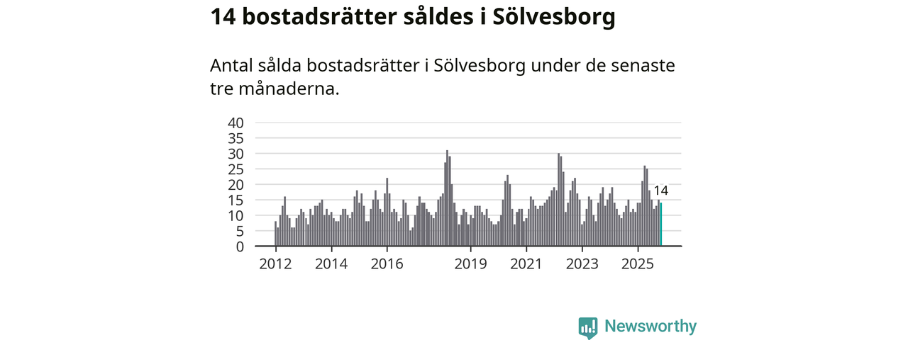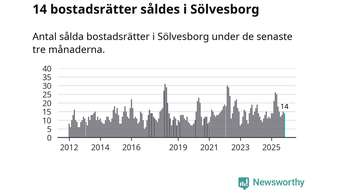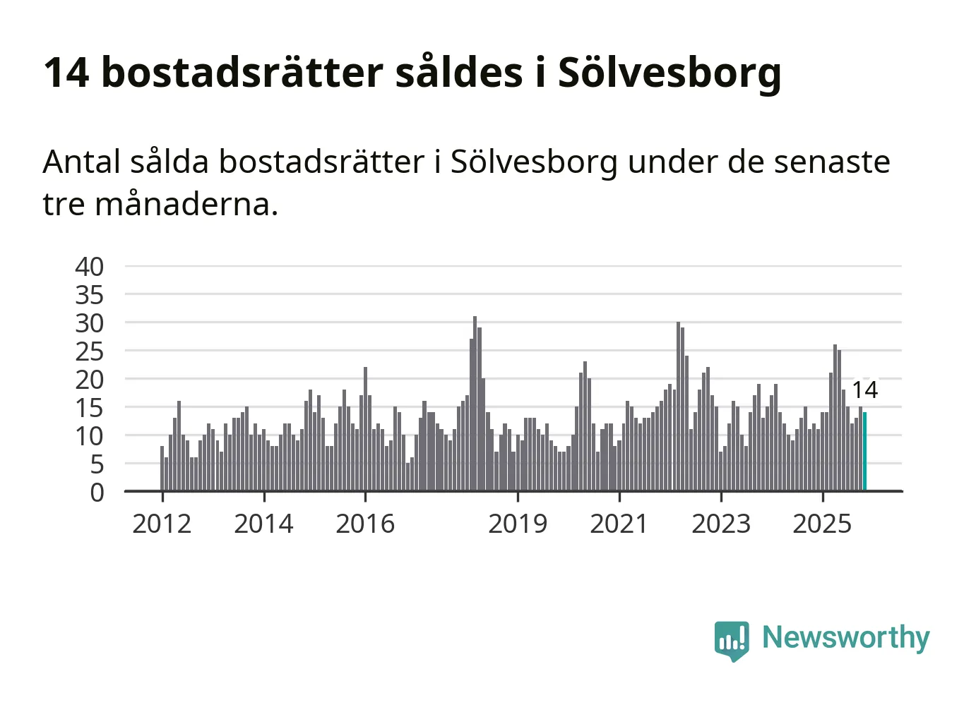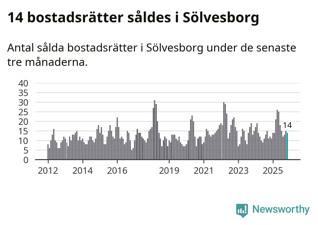 Mellan september och november gjordes sammanlagt 14 affärer med bostadsrätter i Sölvesborgs kommun. Det kan jämföras med tolv vid motsvarande tid i fjol.