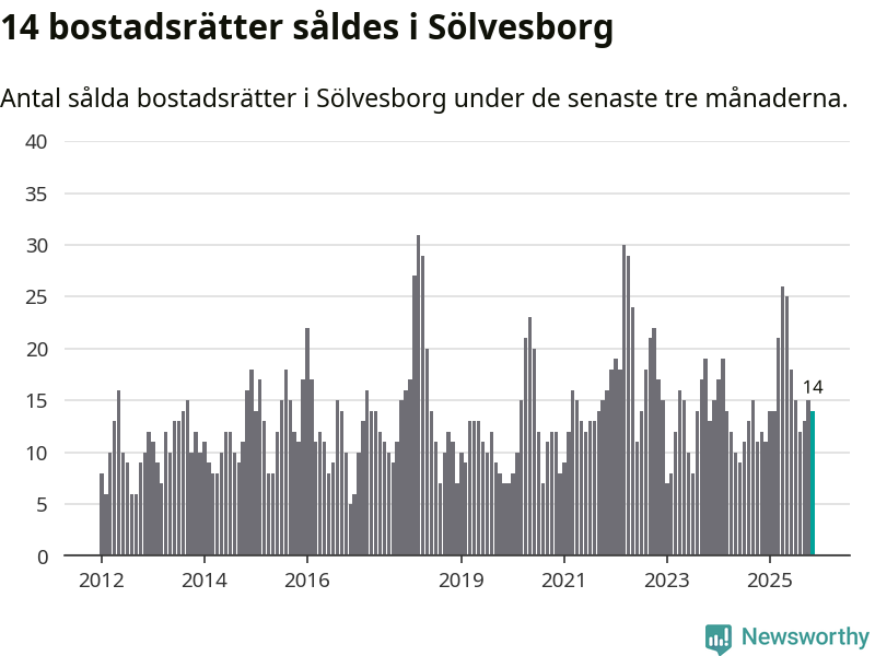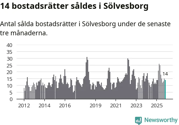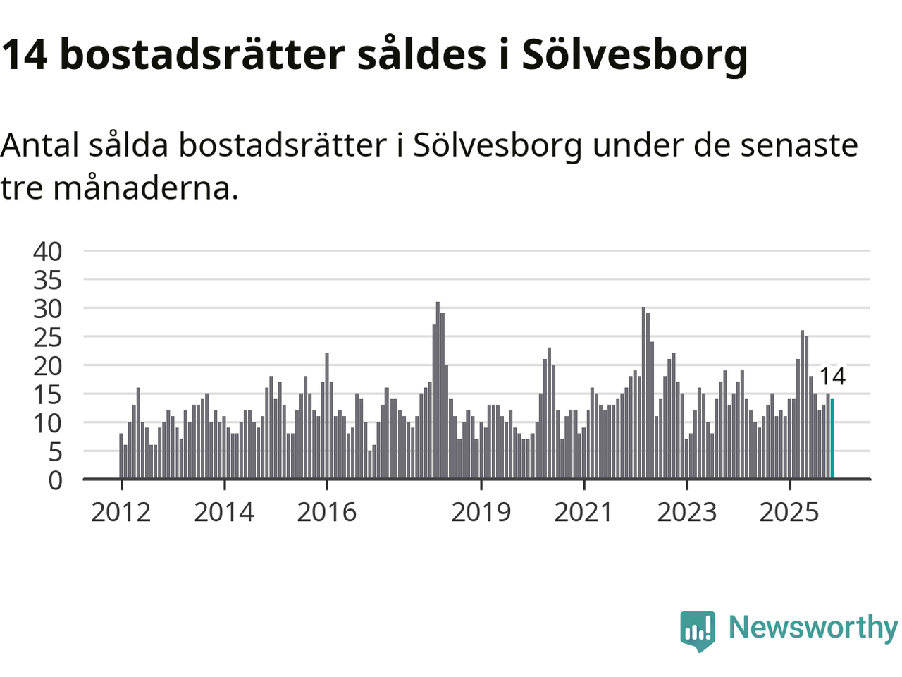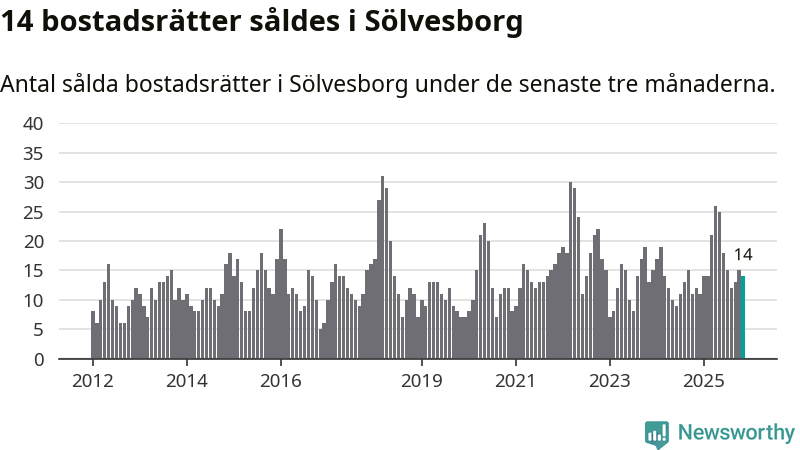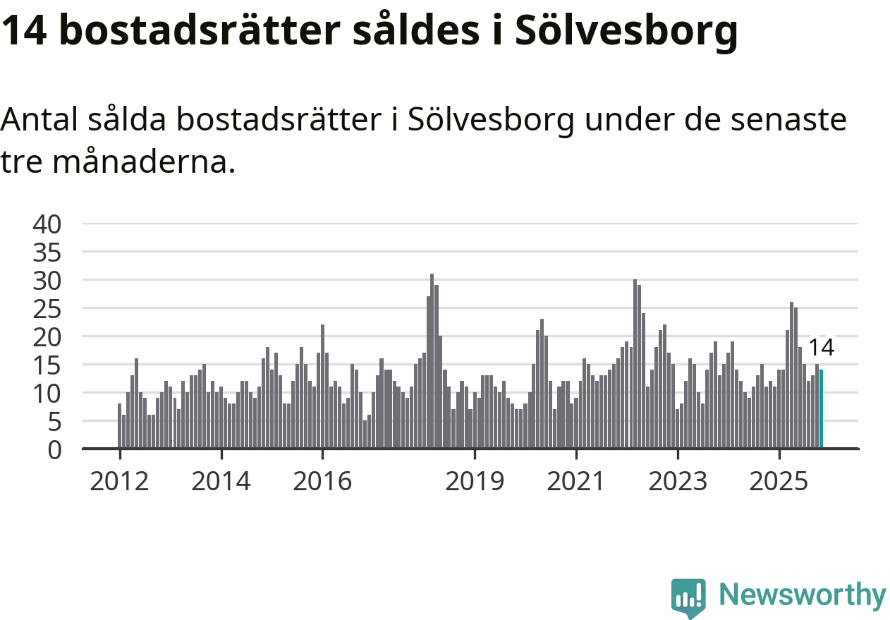 Mellan september och november gjordes sammanlagt 14 affärer med bostadsrätter i Sölvesborgs kommun. Det kan jämföras med tolv vid motsvarande tid i fjol.