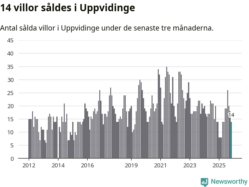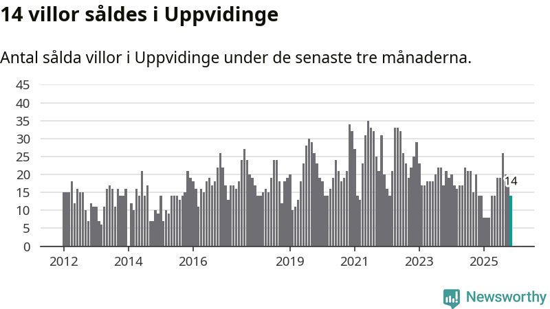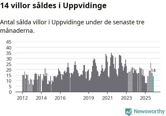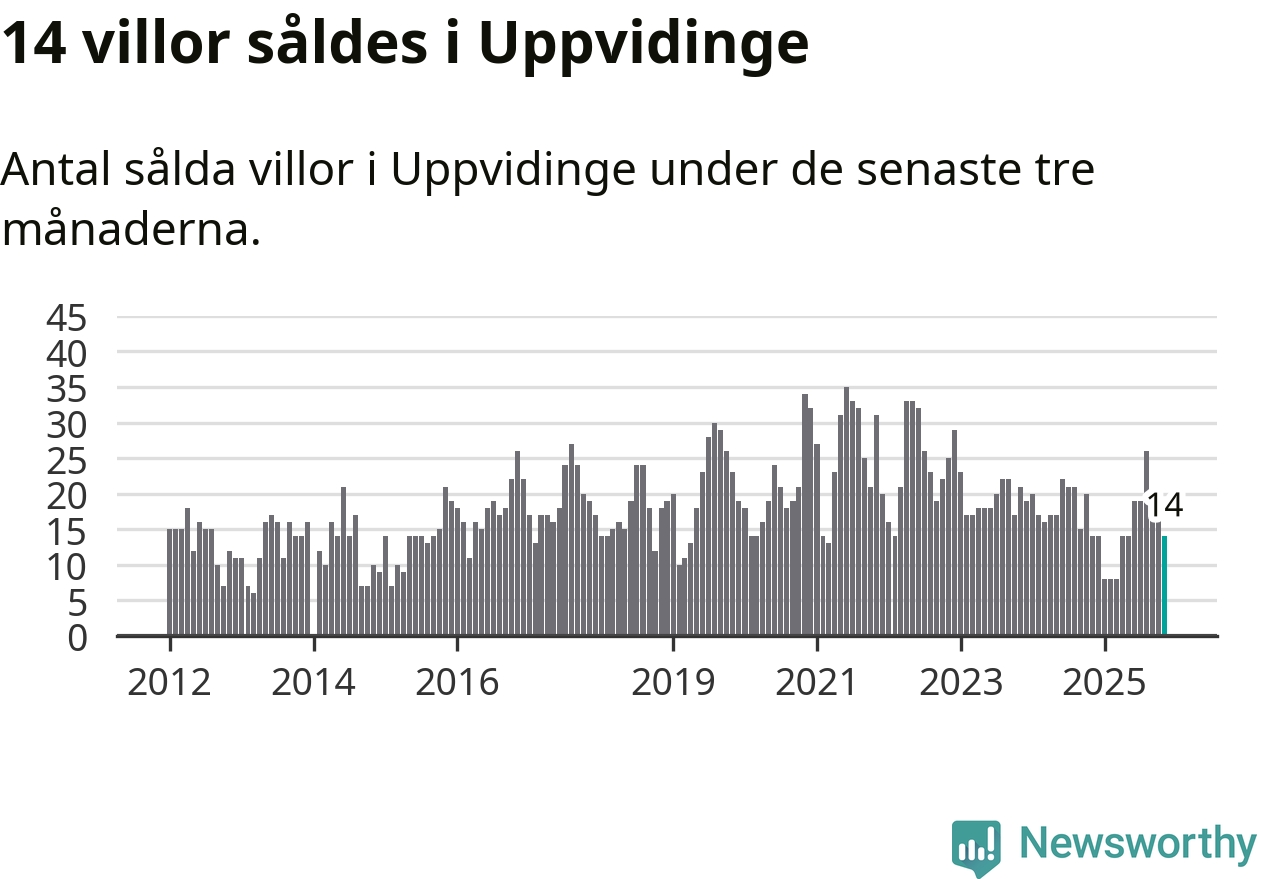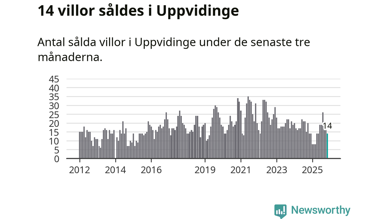 Mellan september och november gjordes sammanlagt 14 affärer med villor i Uppvidinge kommun. Det är lika många affärer som vid motsvarande tid i fjol.