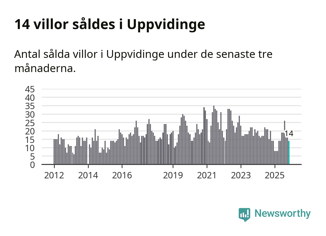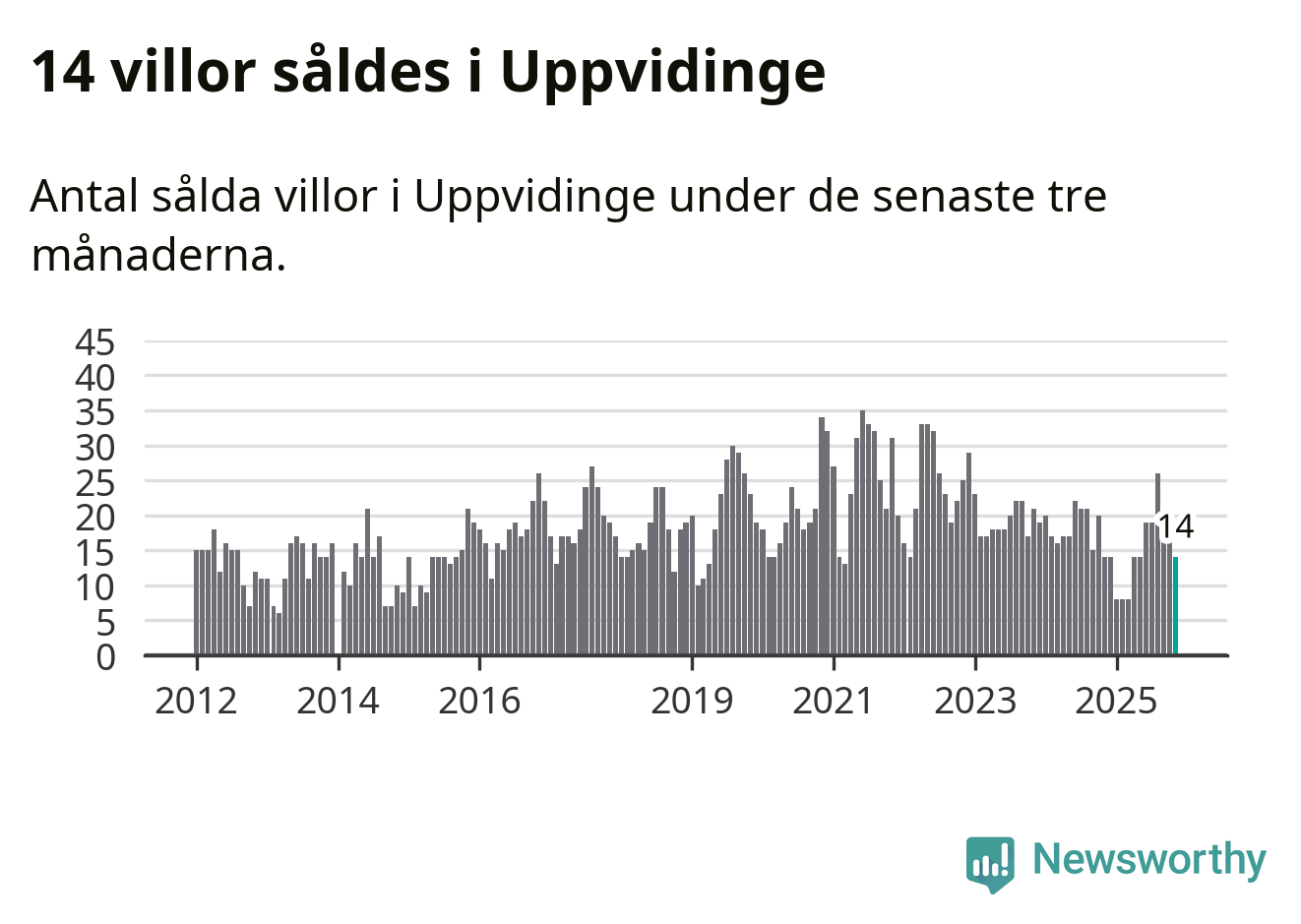 Graf: Antal sålda villor i Uppvidinge kommun