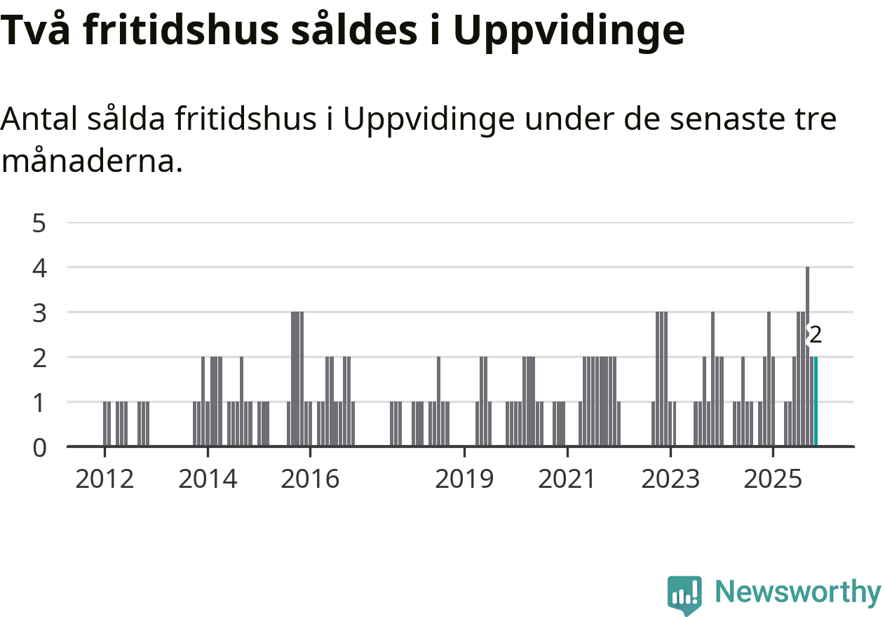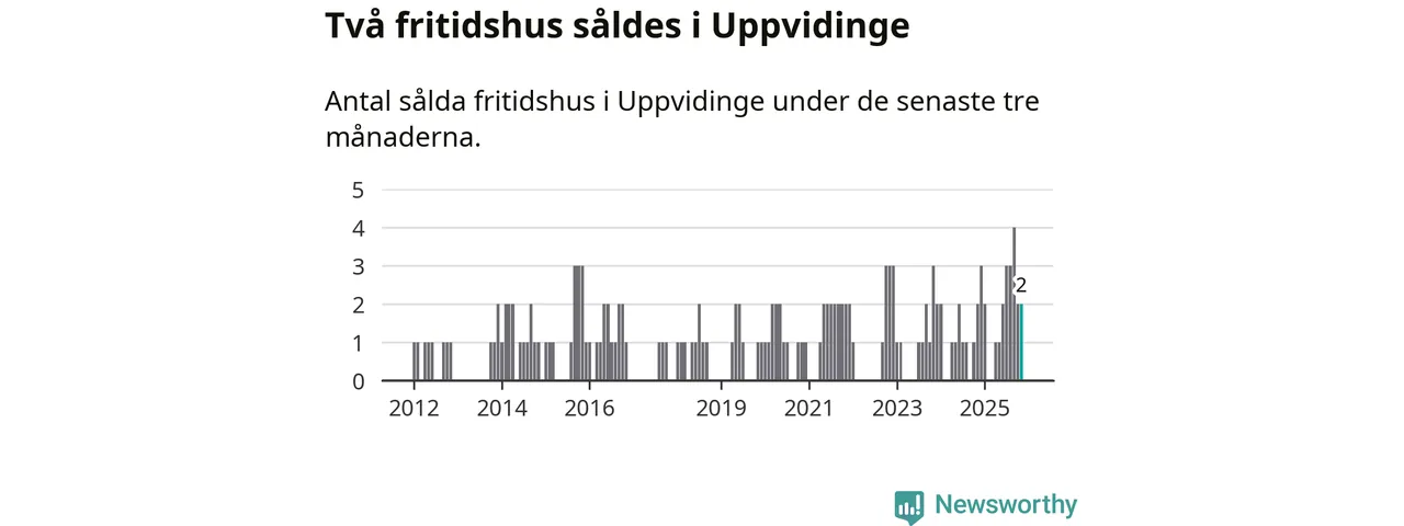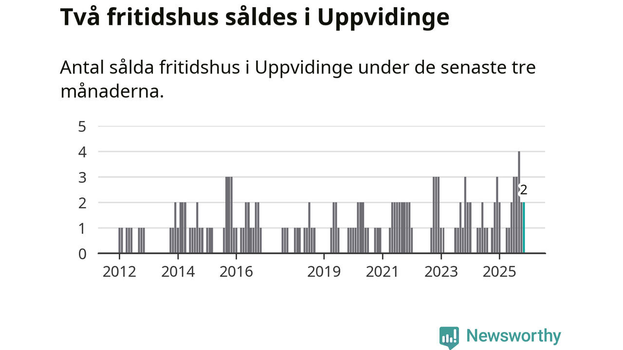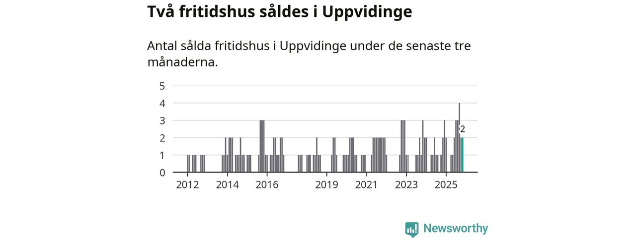 Mellan september och november gjordes sammanlagt två affärer med fritidshus i Uppvidinge kommun. Det är lika många affärer som vid motsvarande tid i fjol.