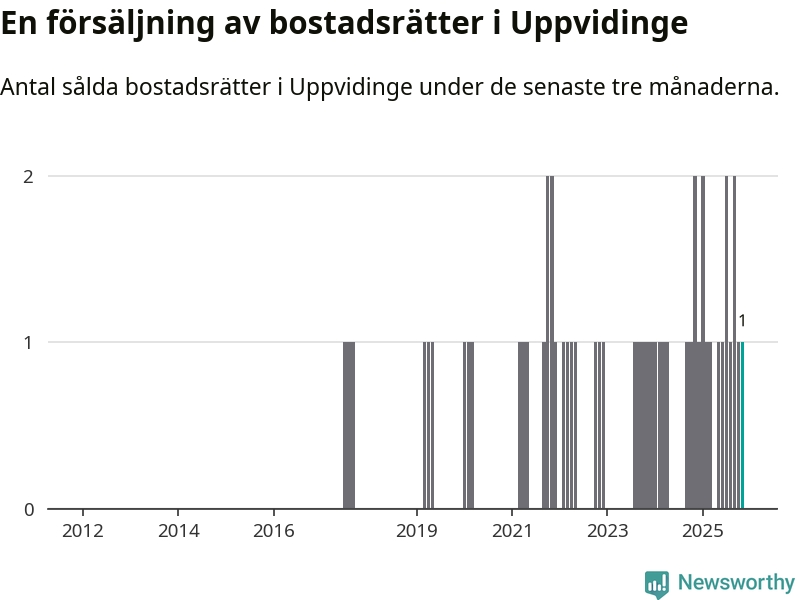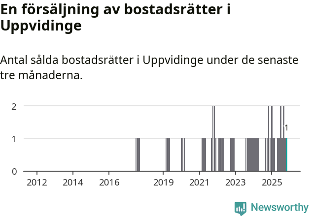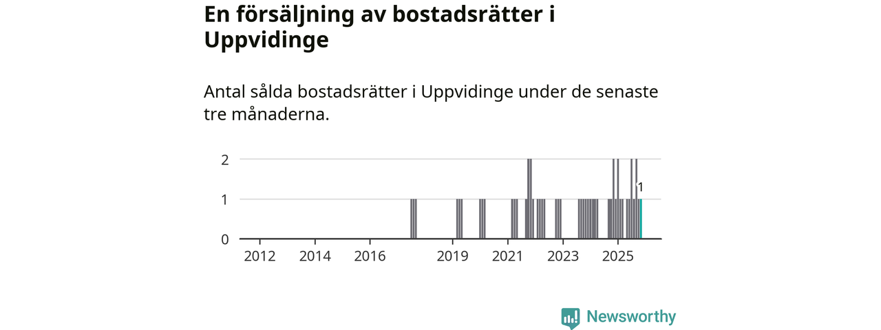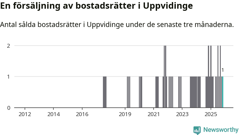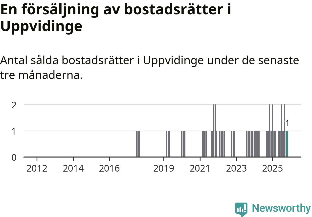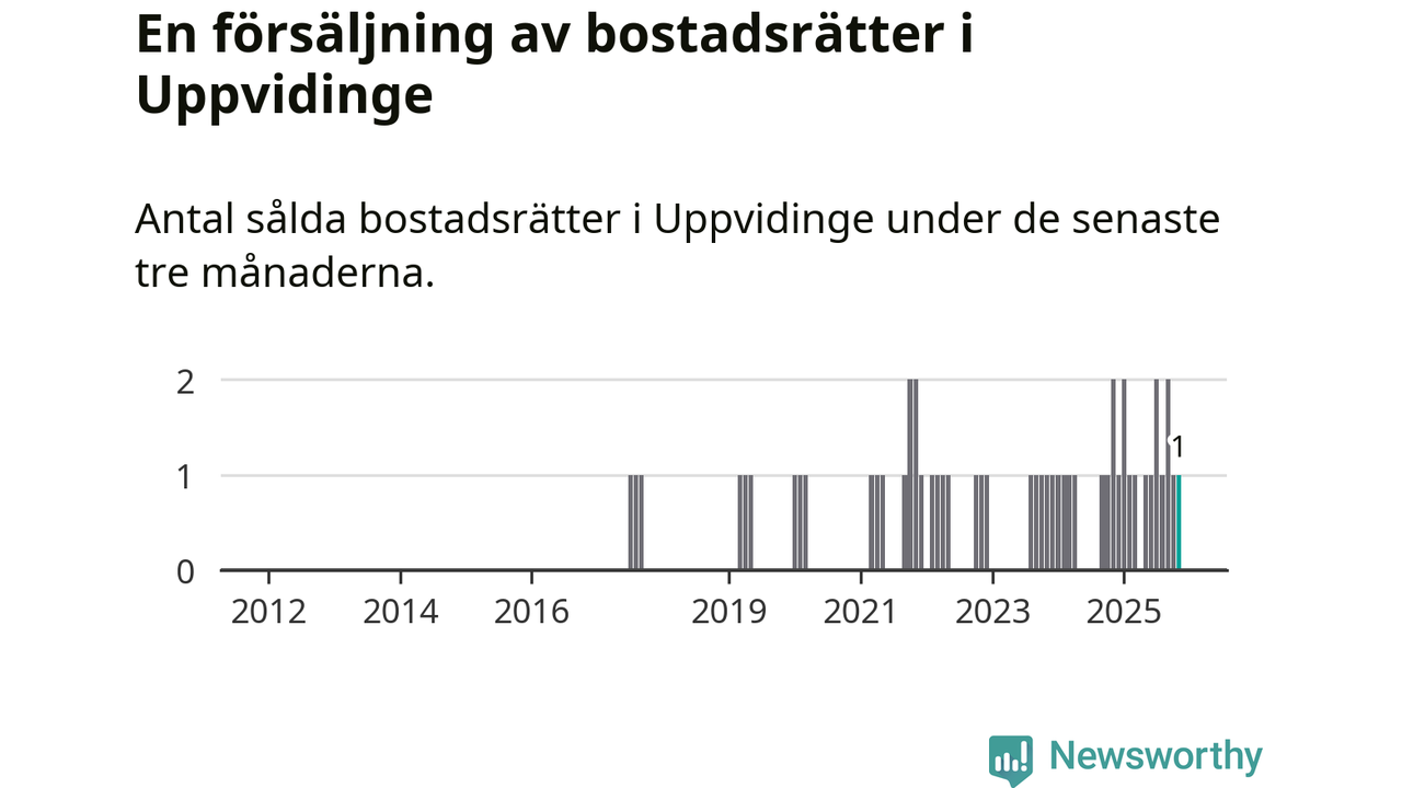 Mellan september och november gjordes sammanlagt en affär med bostadsrätter i Uppvidinge kommun. Det kan jämföras med två vid motsvarande tid i fjol.