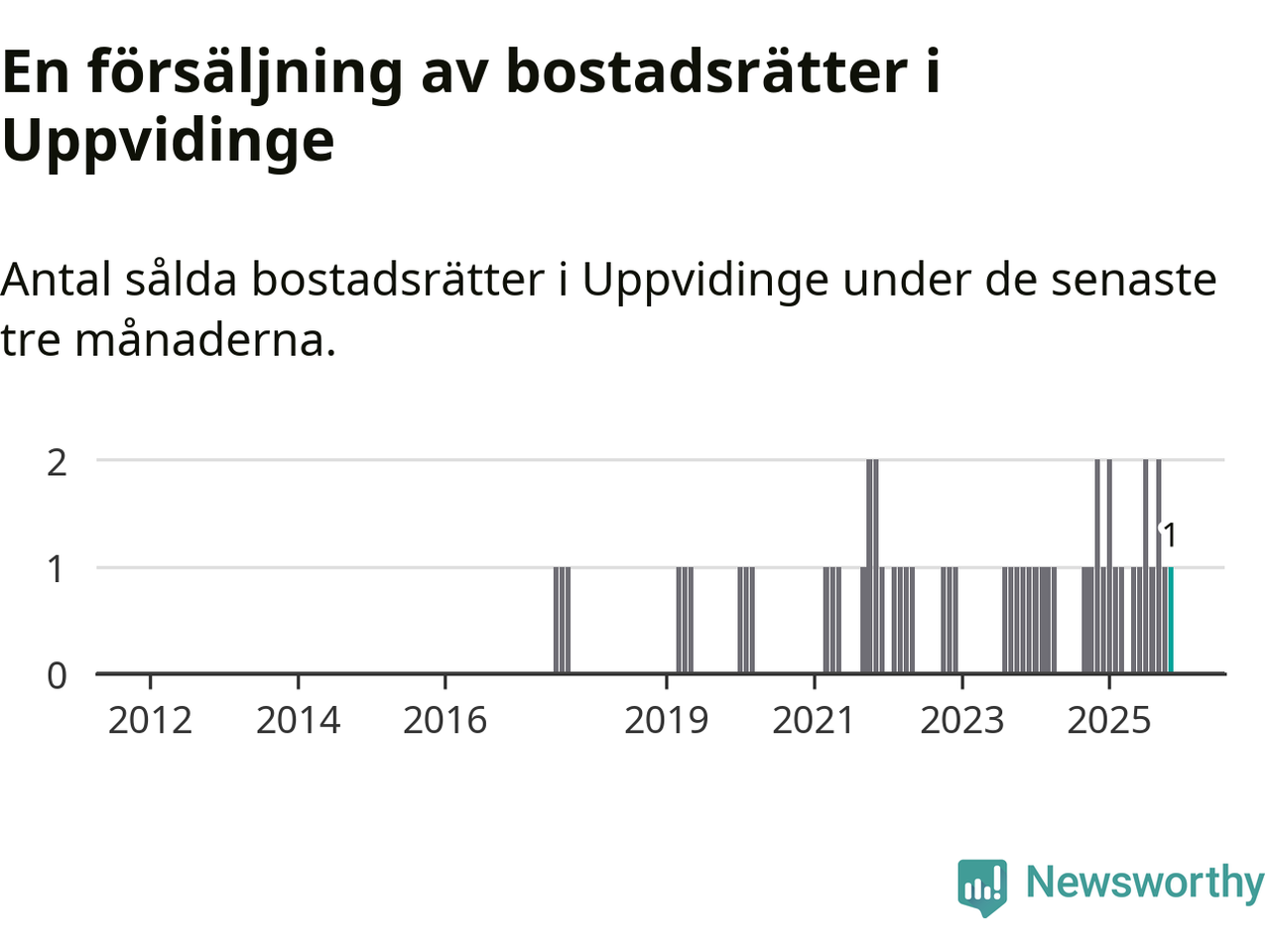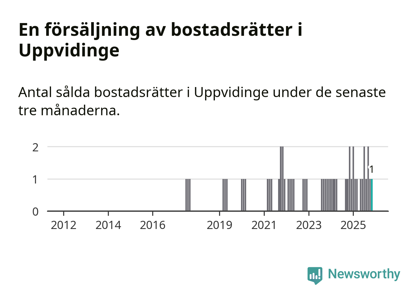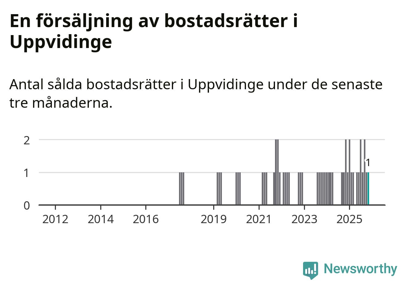 Mellan september och november gjordes sammanlagt en affär med bostadsrätter i Uppvidinge kommun. Det kan jämföras med två vid motsvarande tid i fjol.
