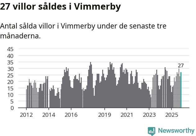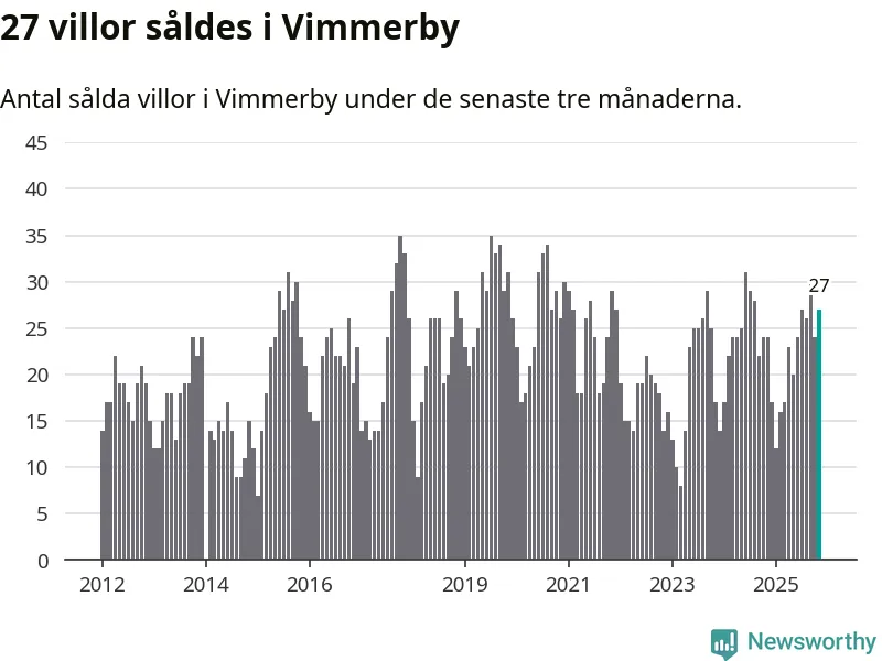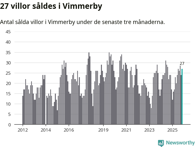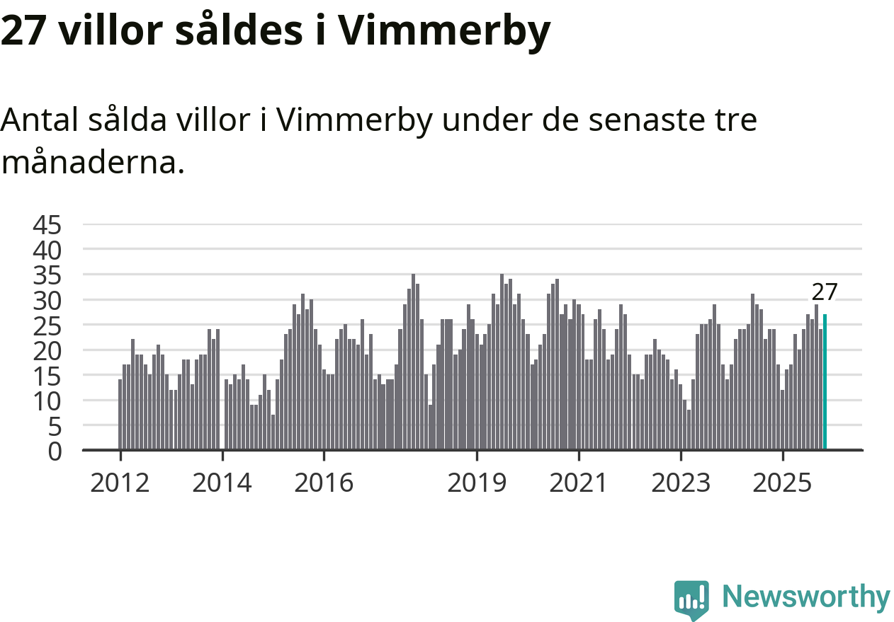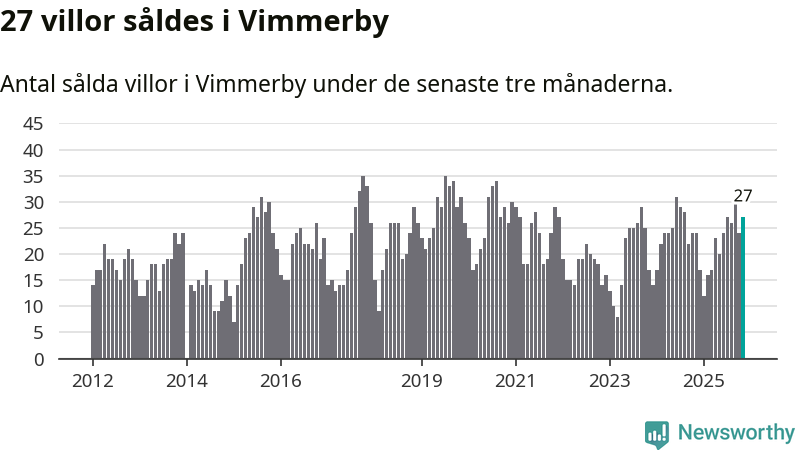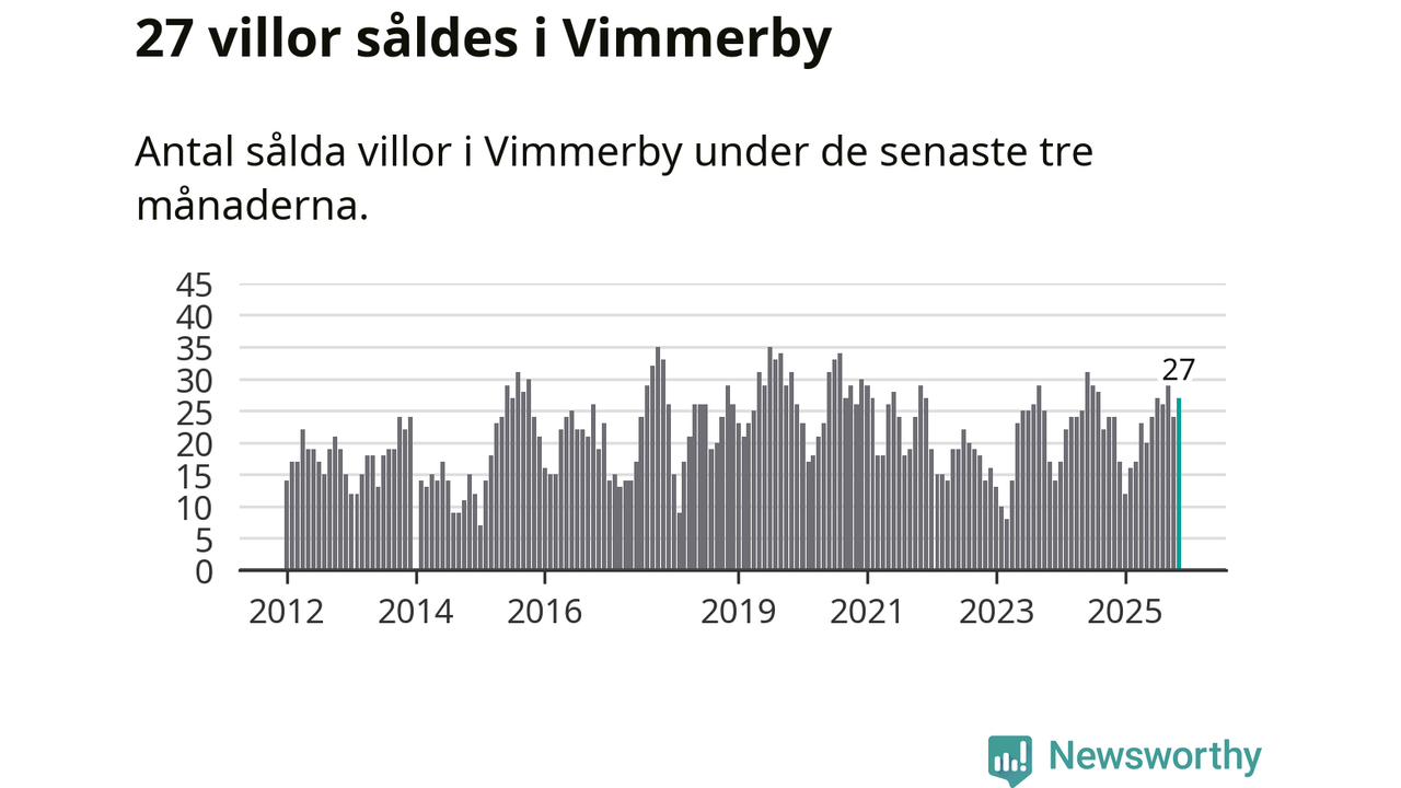 Mellan september och november gjordes sammanlagt 27 affärer med villor i Vimmerby kommun. Det kan jämföras med 24 vid motsvarande tid i fjol.