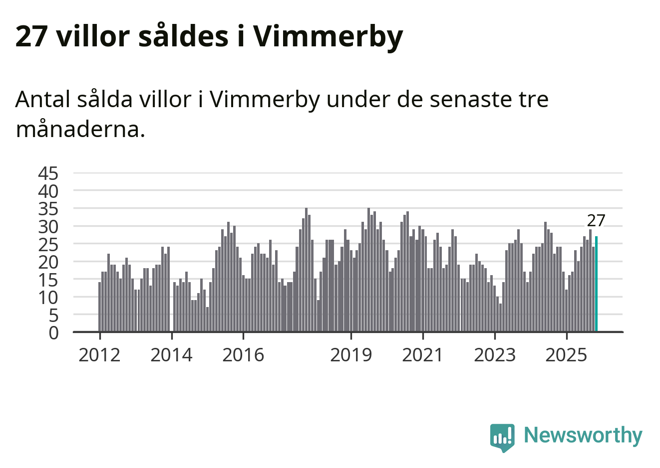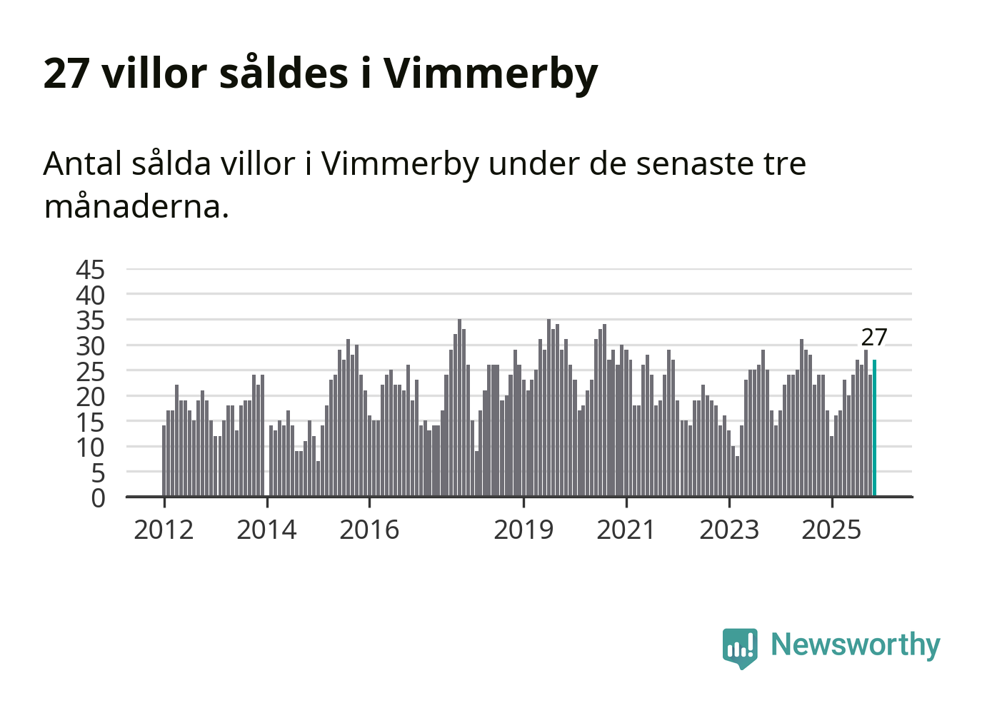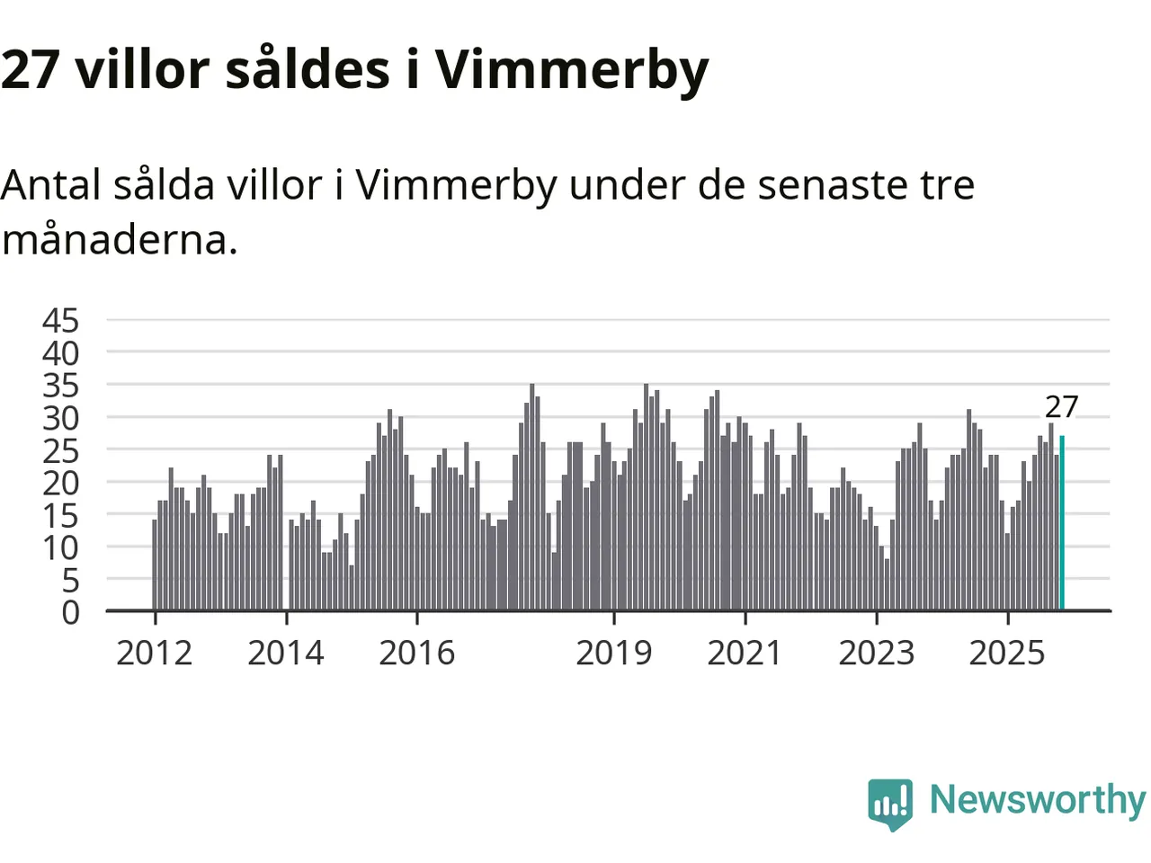 Mellan september och november gjordes sammanlagt 27 affärer med villor i Vimmerby kommun. Det kan jämföras med 24 vid motsvarande tid i fjol.