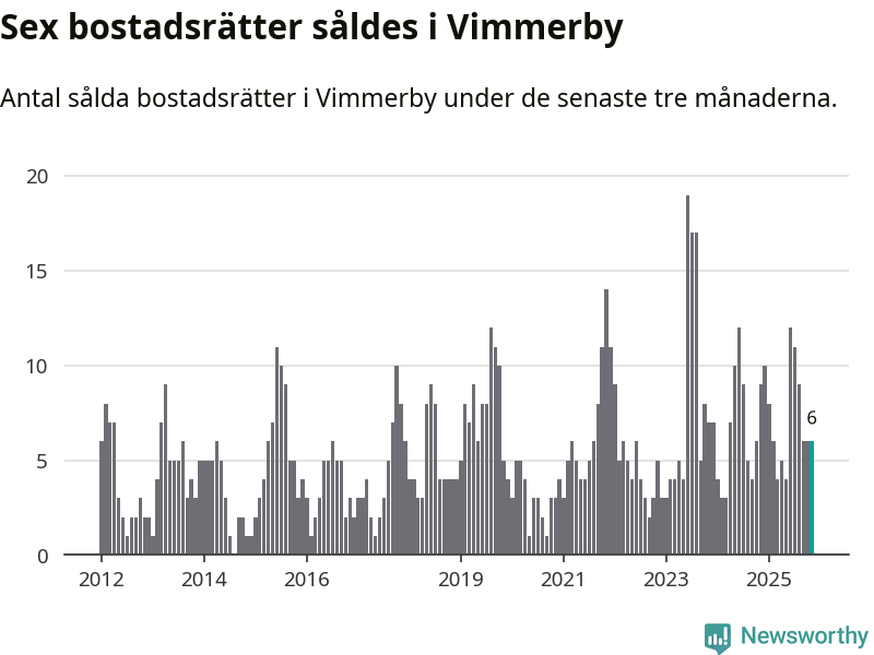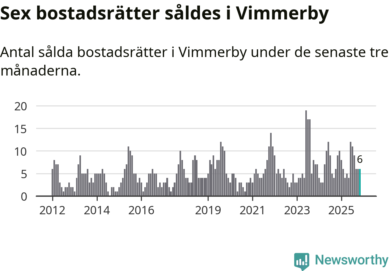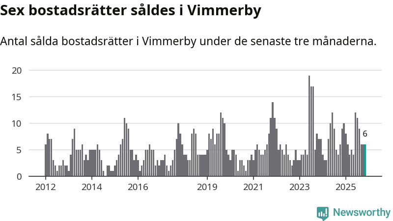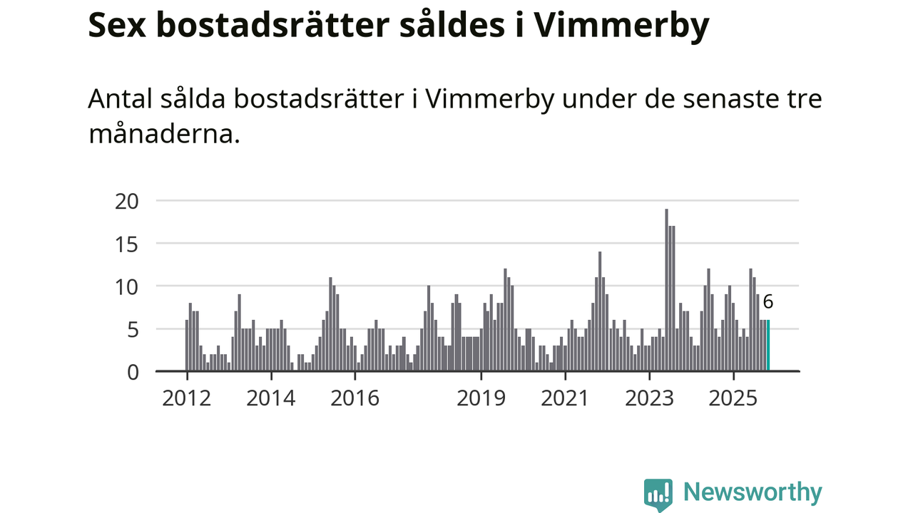 Mellan september och november gjordes sammanlagt sex affärer med bostadsrätter i Vimmerby kommun. Det kan jämföras med nio vid motsvarande tid i fjol.