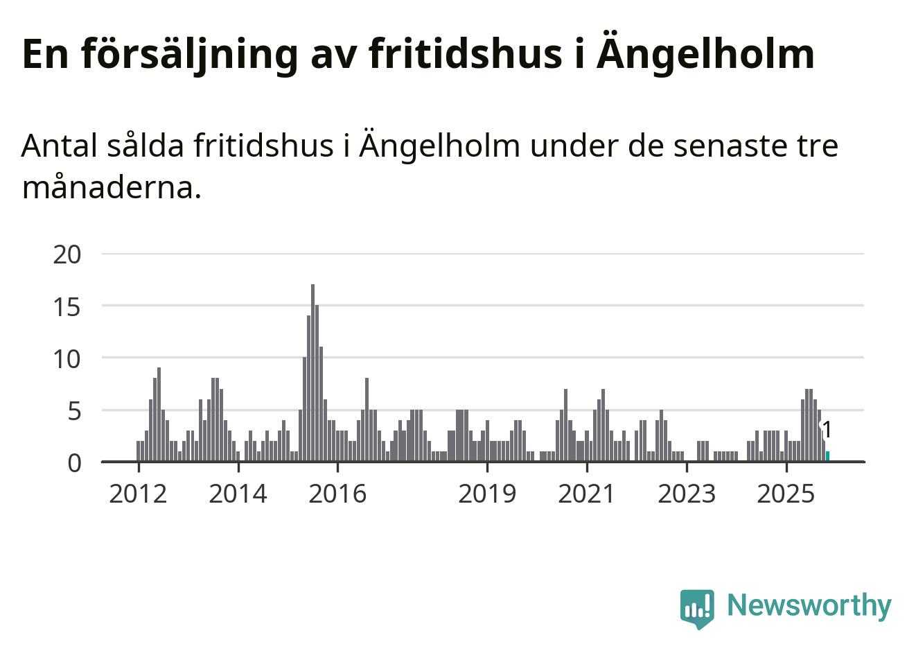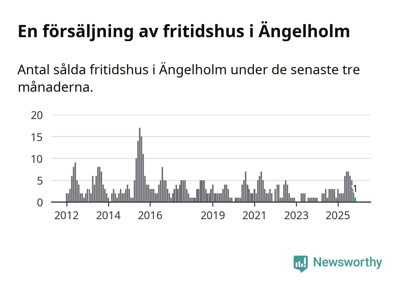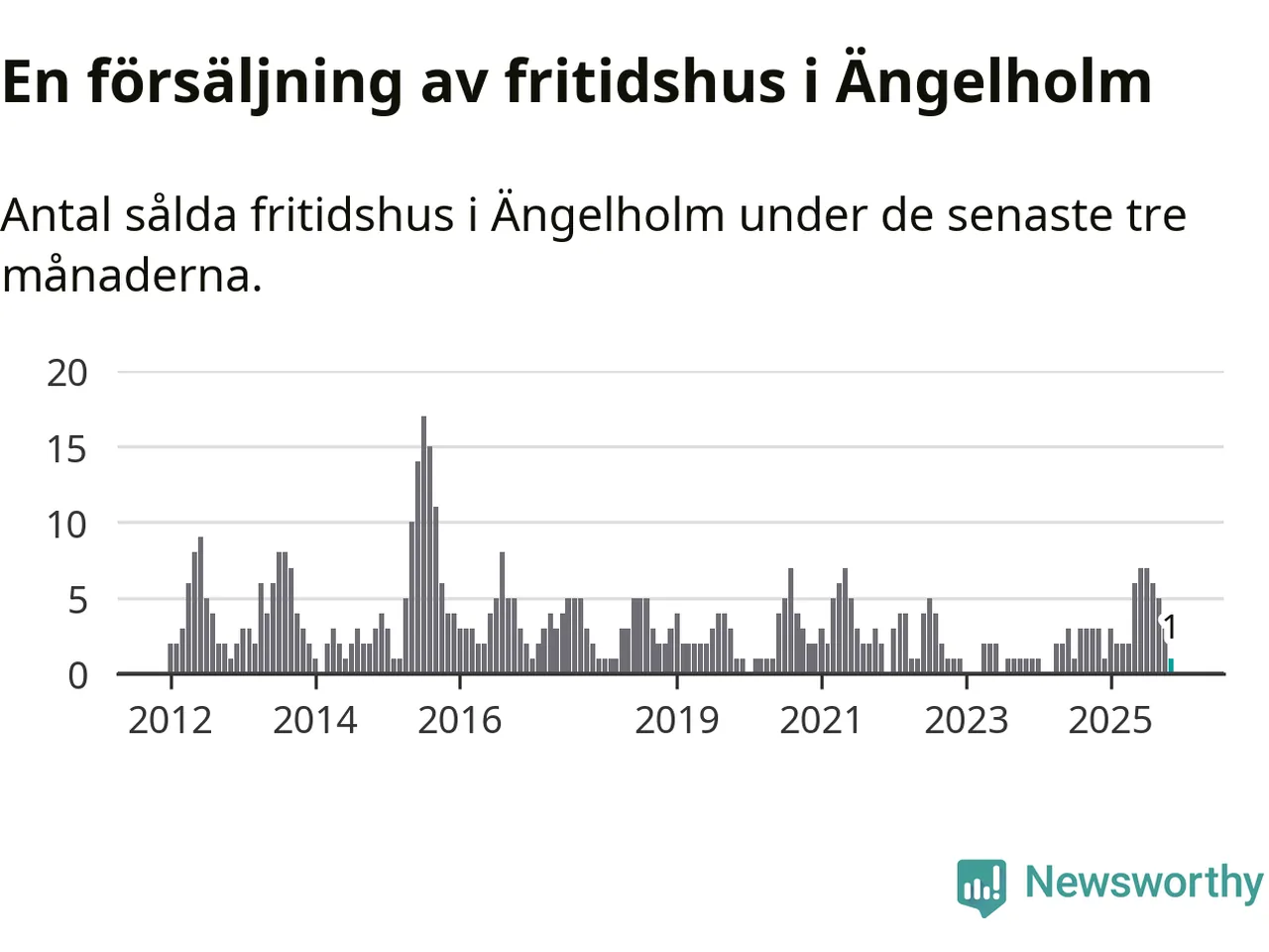 Mellan september och november gjordes sammanlagt en affär med fritidshus i Ängelholms kommun. Det kan jämföras med tre vid motsvarande tid i fjol.