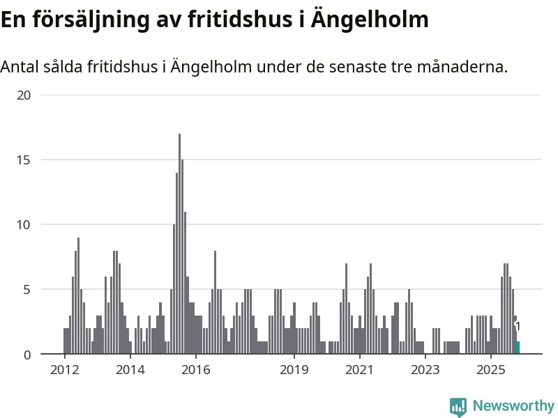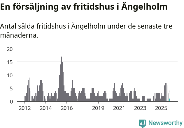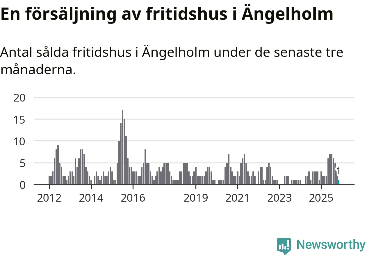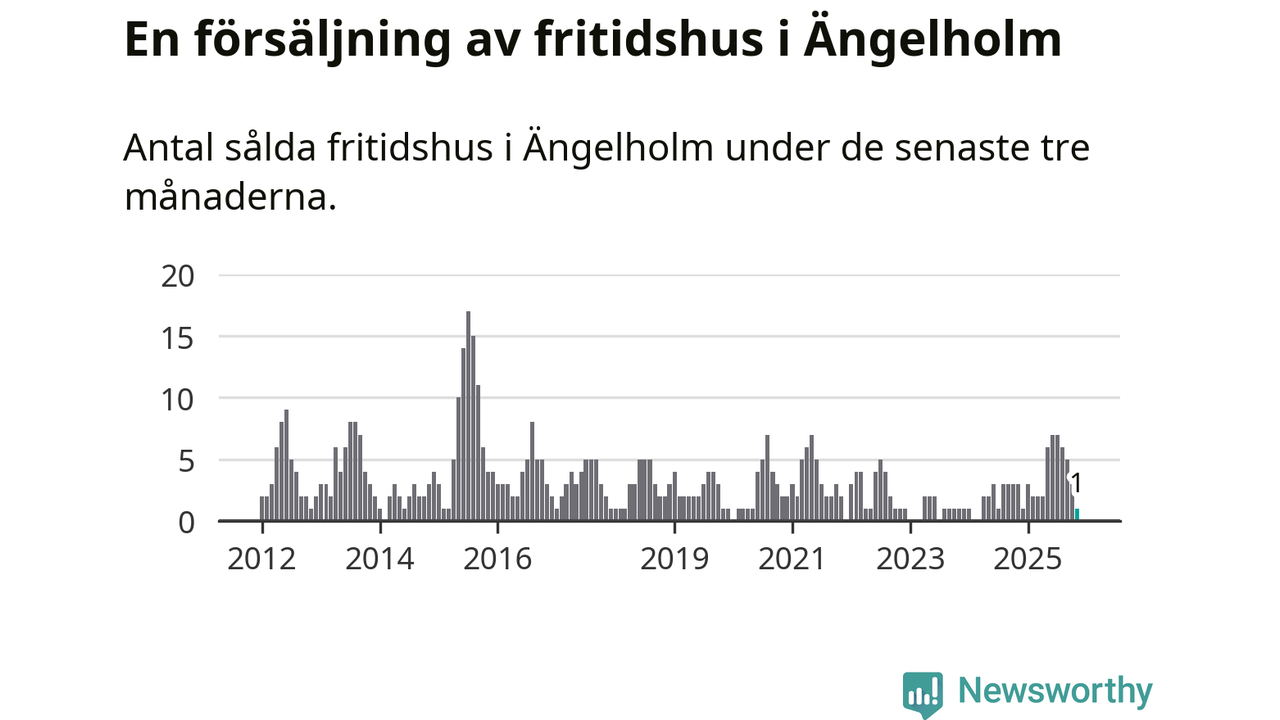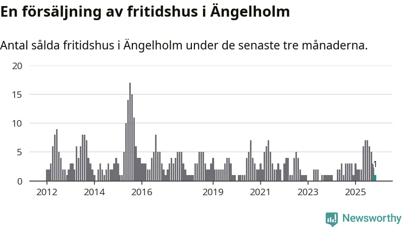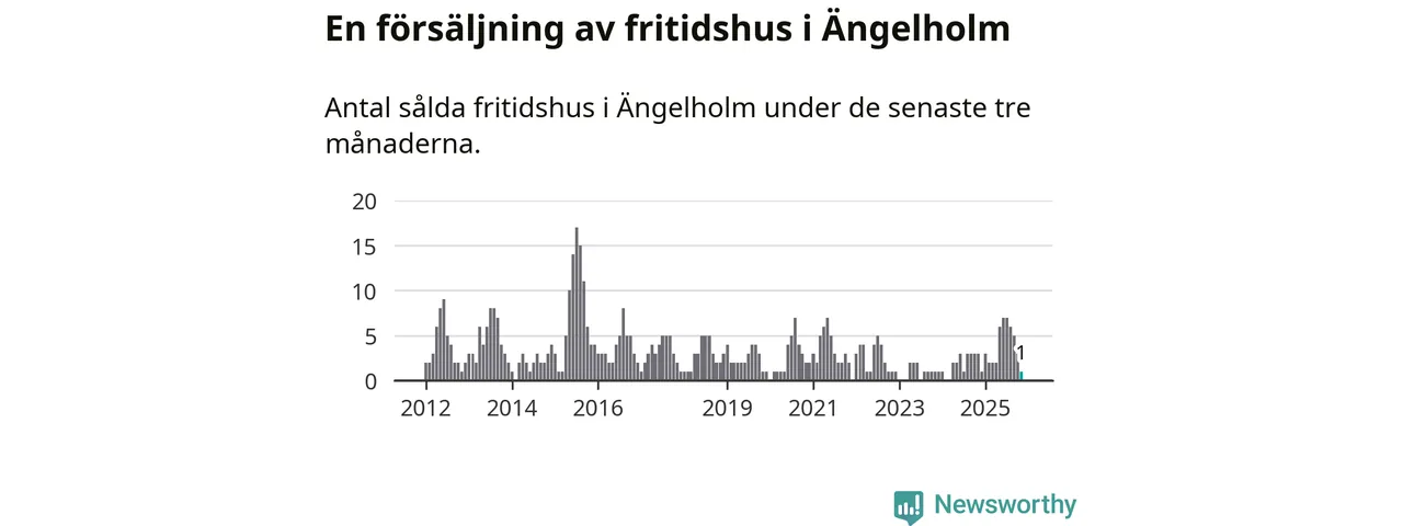 Mellan september och november gjordes sammanlagt en affär med fritidshus i Ängelholms kommun. Det kan jämföras med tre vid motsvarande tid i fjol.