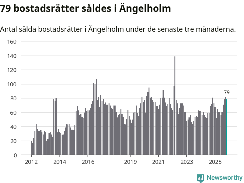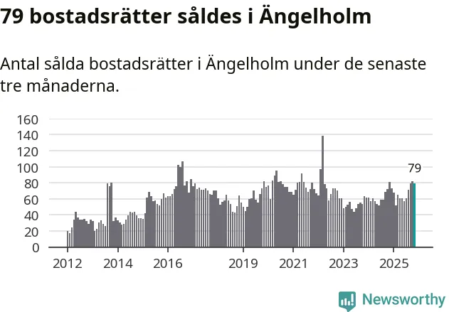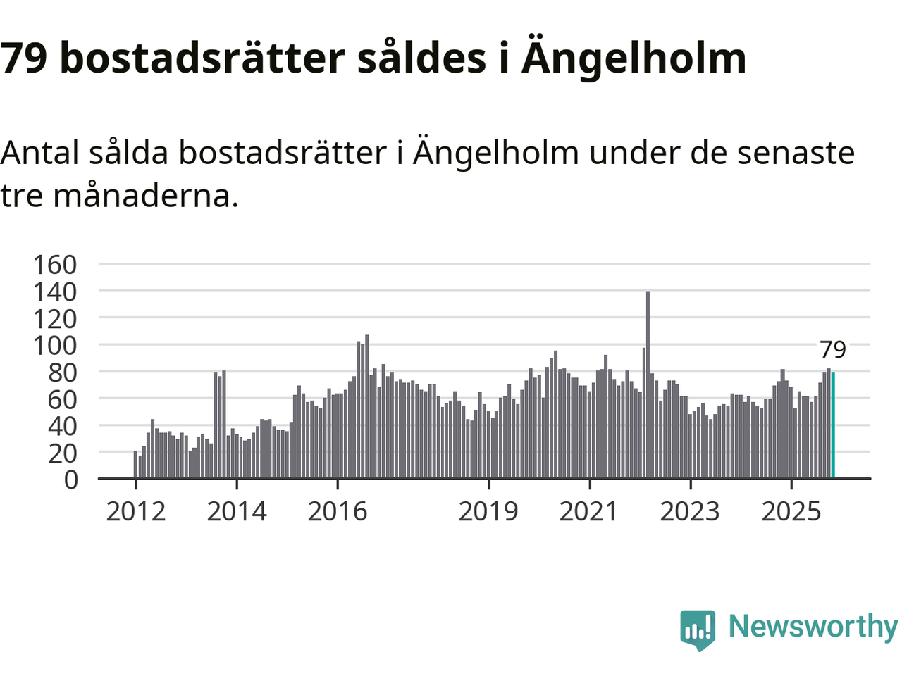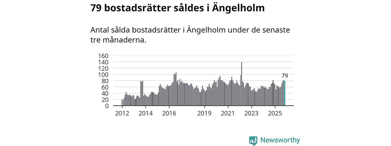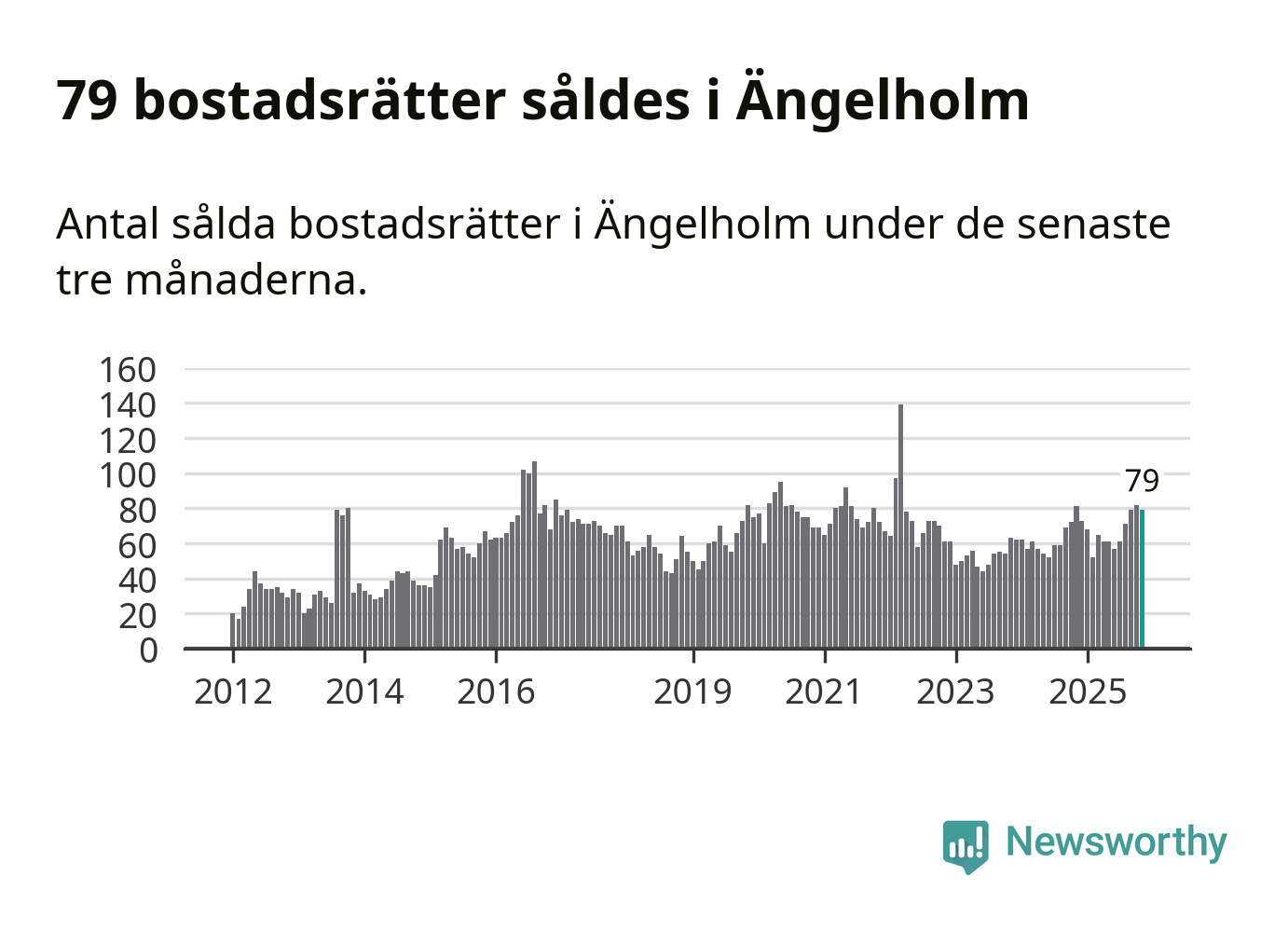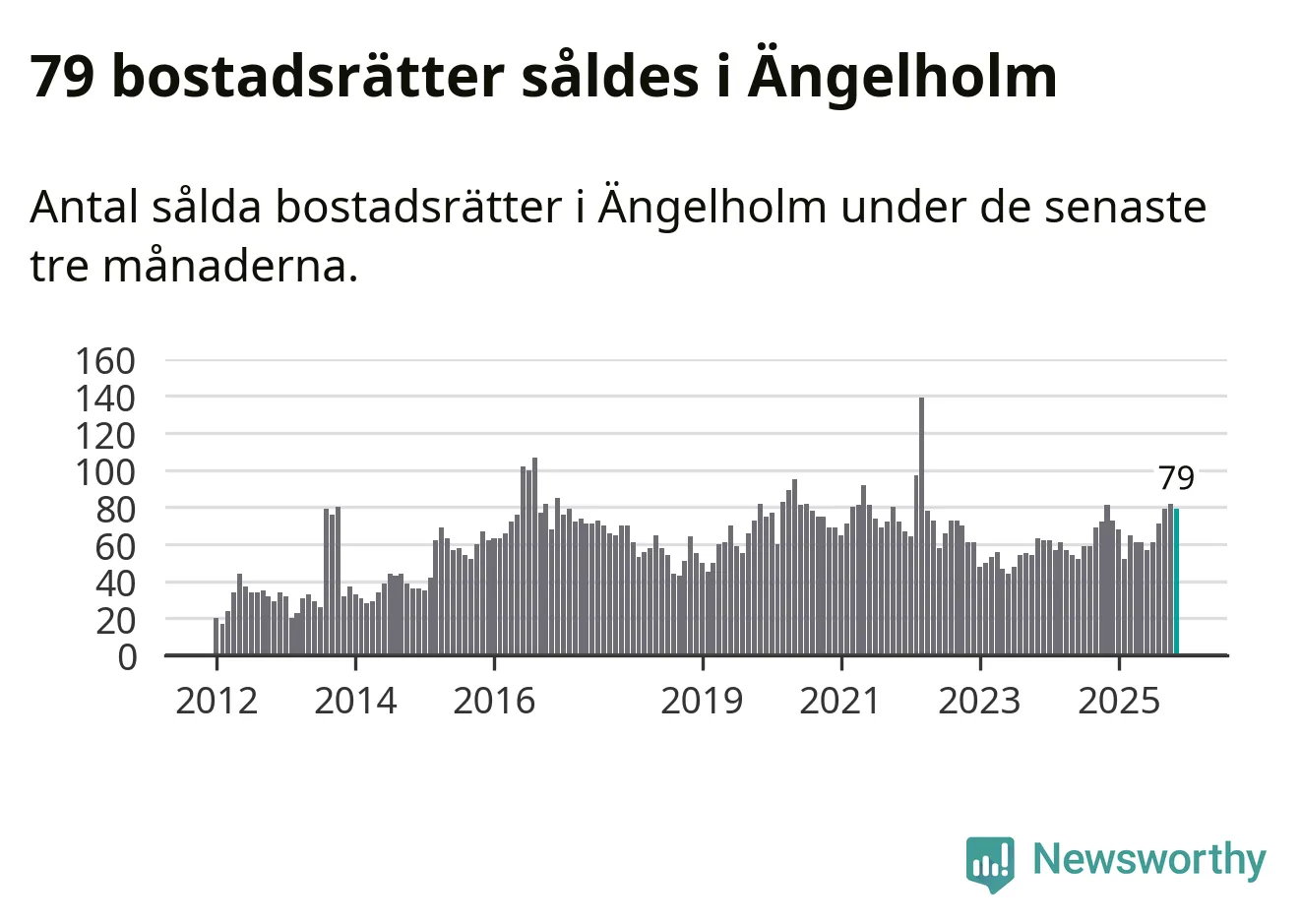 Sammanlagt såldes 79 bostadsrätter i Ängelholms kommun mellan september och november till ett genomsnittligt pris på 2,1 miljoner kronor. I fjol gjordes 81 affärer vid den här tiden på året.
