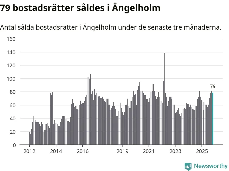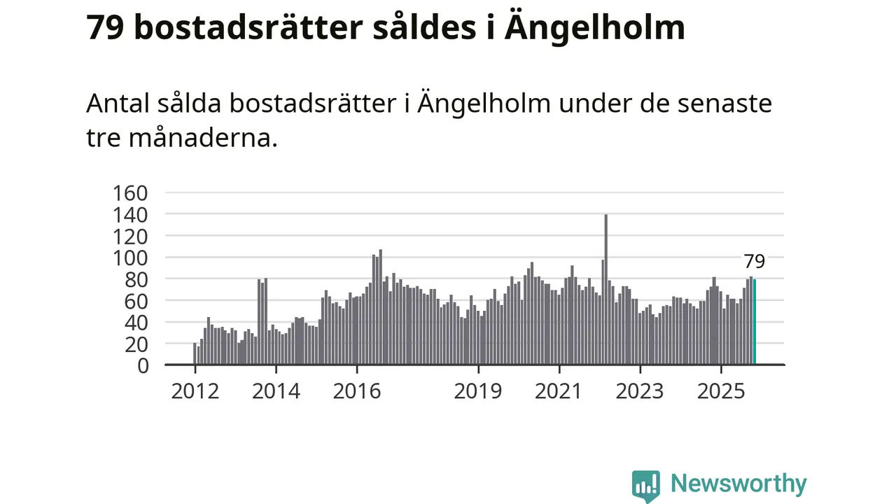 | Ängelholm | +5 % ▲ | 79 | 2,1 miljoner |