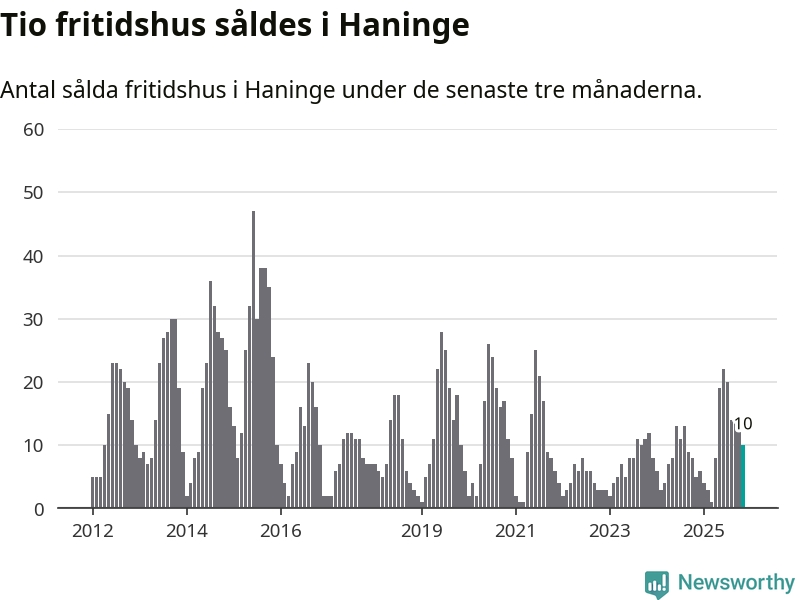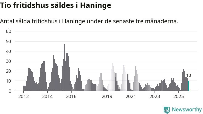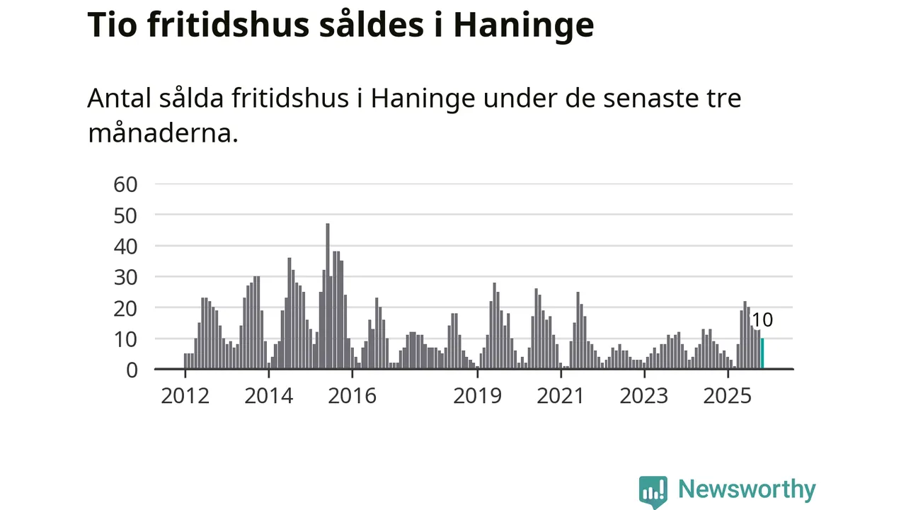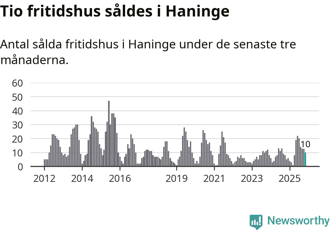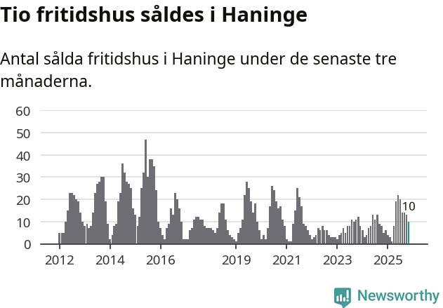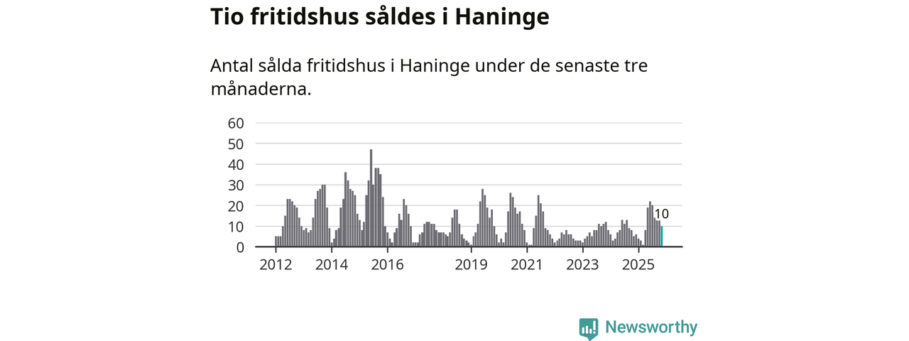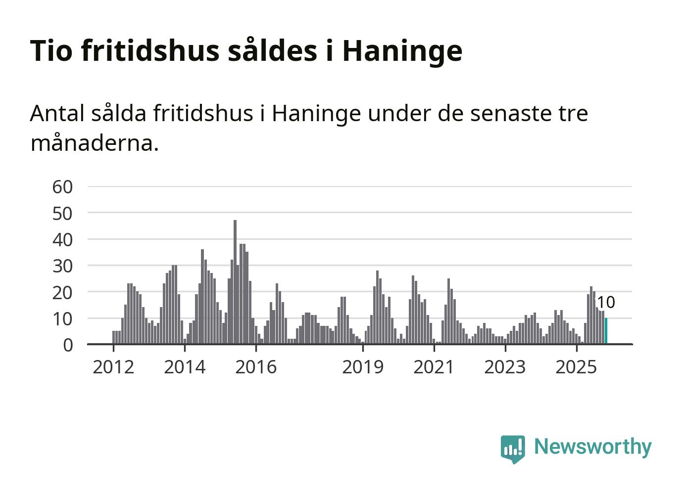 Sammanlagt såldes tio fritidshus i Haninge kommun mellan september och november till ett genomsnittligt pris på 3,3 miljoner kronor. I fjol gjordes fem affärer vid den här tiden på året.