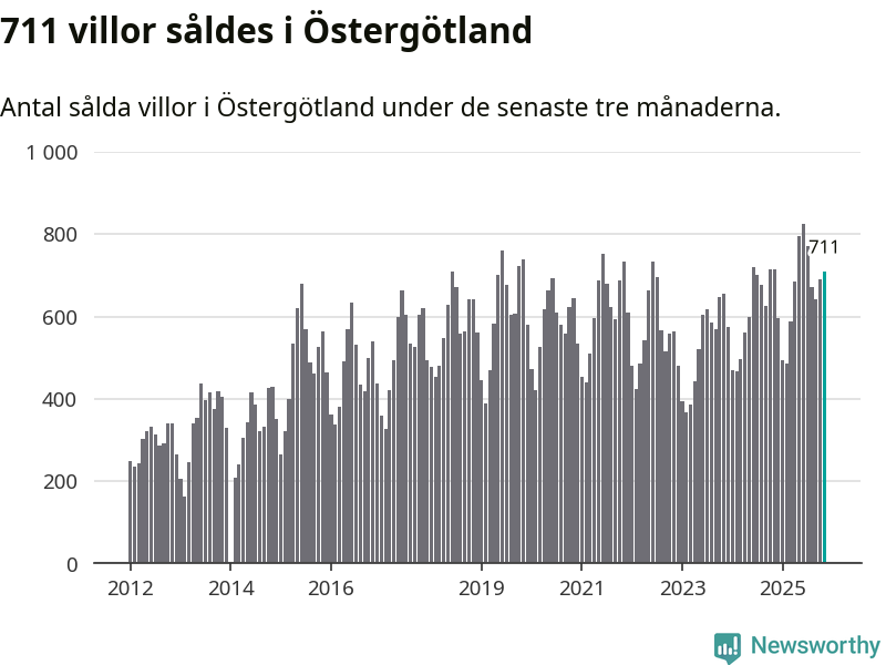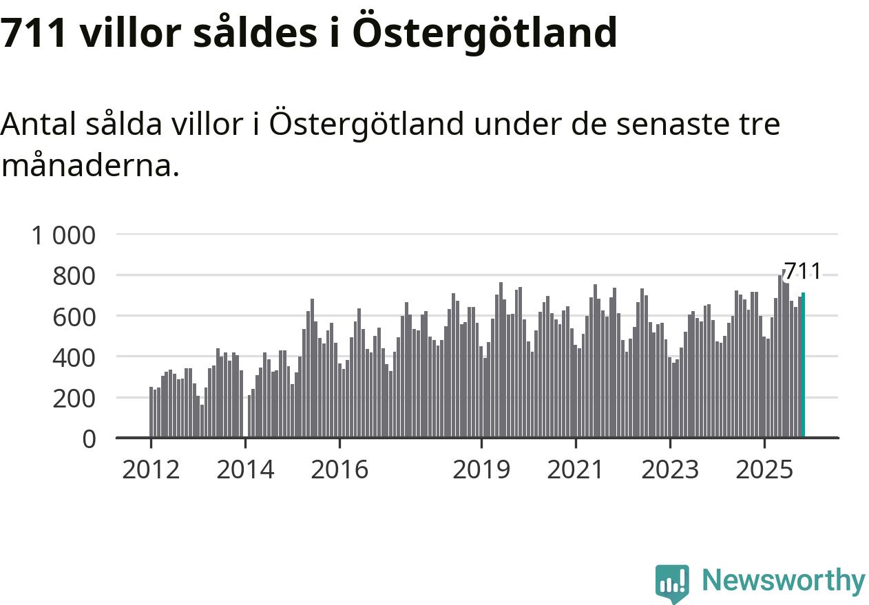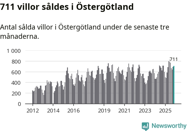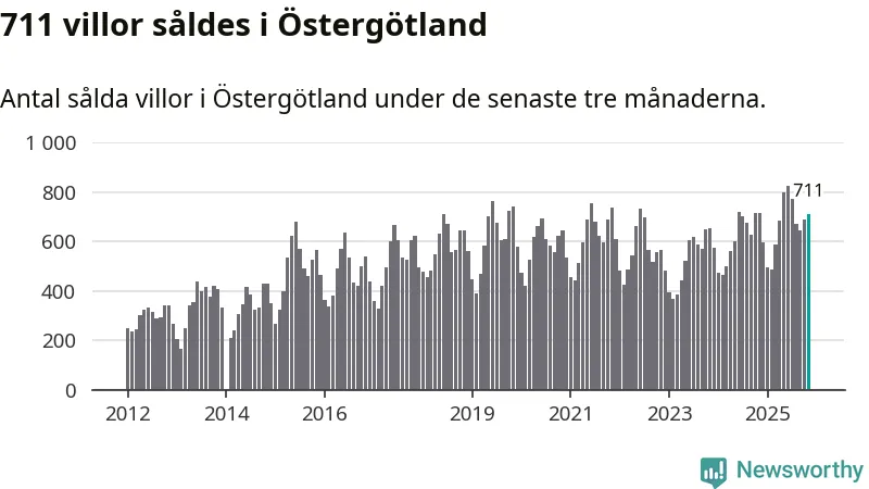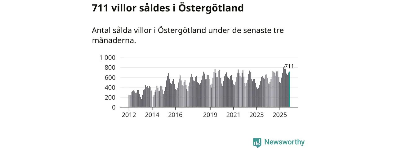 Mellan september och november såldes 711 villor i Östergötlands län. Det är relativt få sett till aktiviteten på bostadsmarknaden i länet under de senaste tolv månaderna, samt det historiska snittet för den här tiden på året.