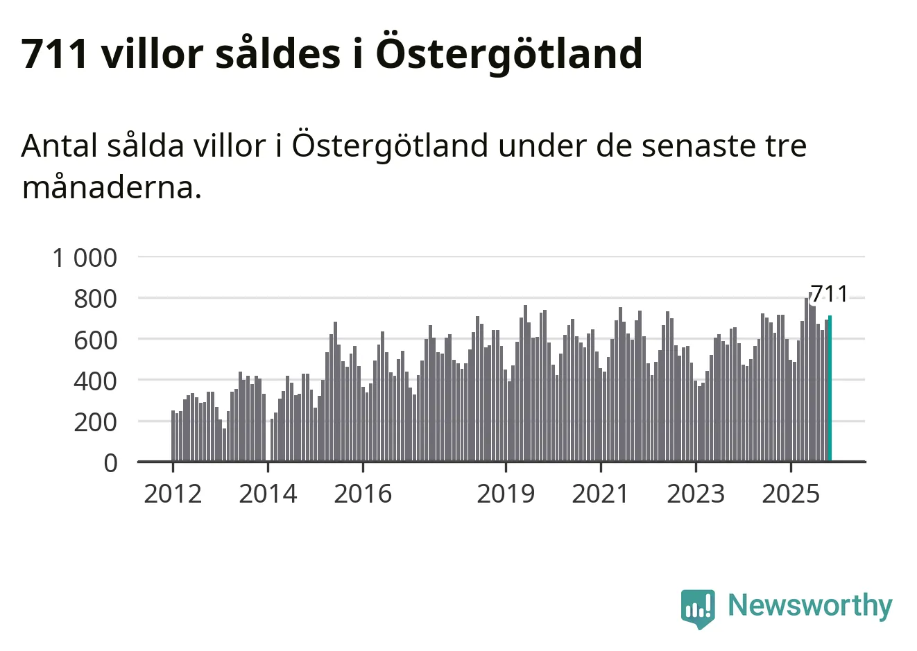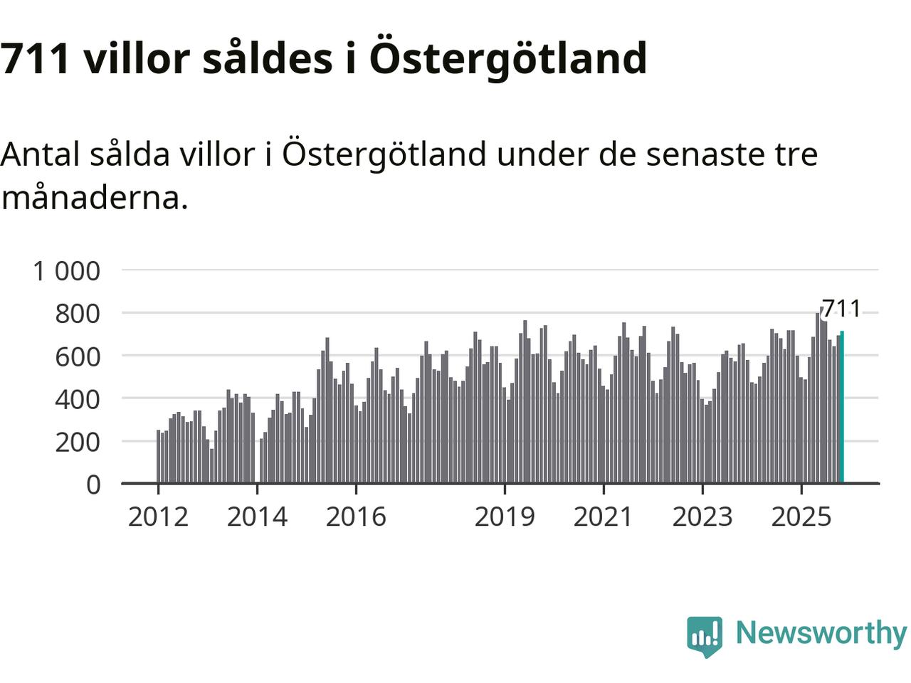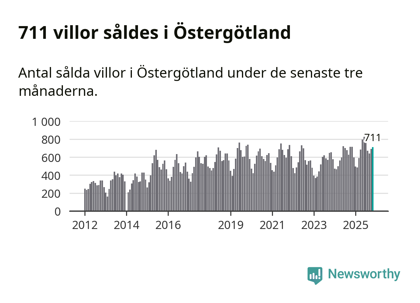 Mellan september och november såldes 711 villor i Östergötlands län. Det är relativt få sett till aktiviteten på bostadsmarknaden i länet under de senaste tolv månaderna, samt det historiska snittet för den här tiden på året.