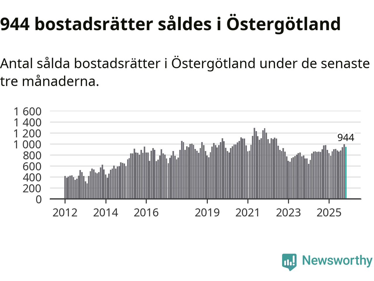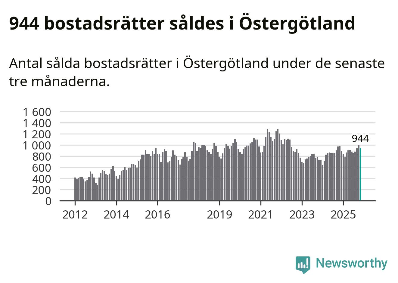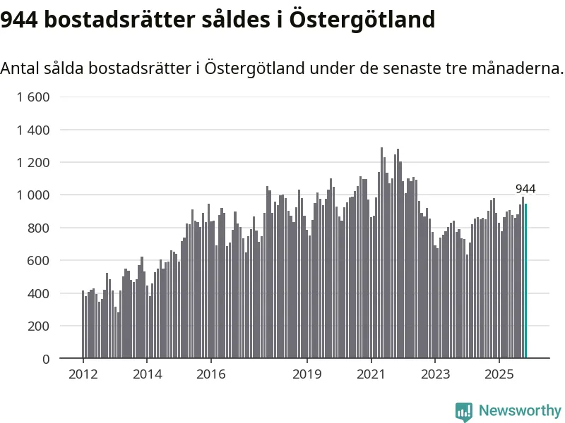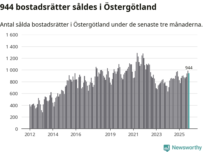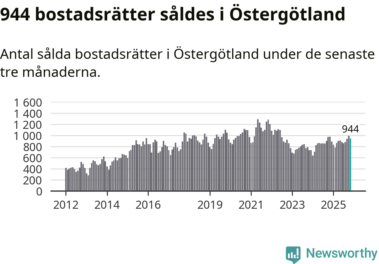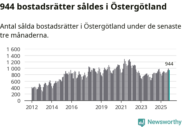 Graf: Antal sålda bostadsrätter i Östergötlands län