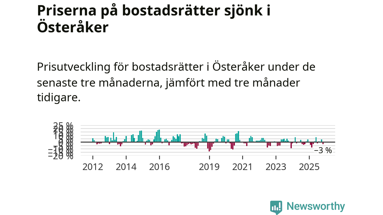 | Österåker | −1 % ▼ | 158 | 6,0 miljoner |