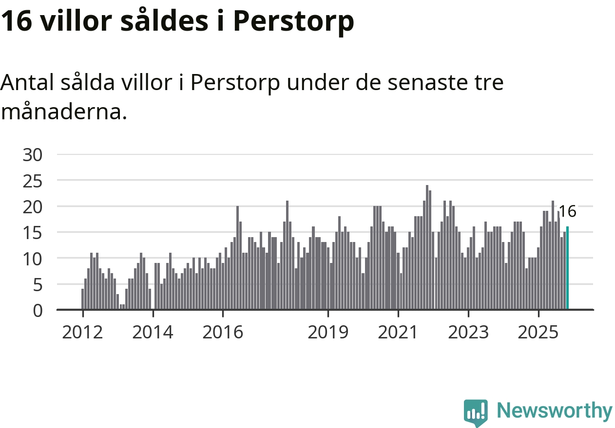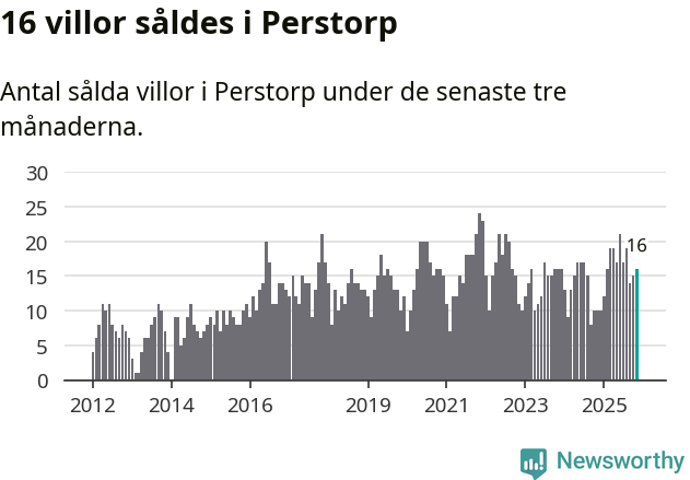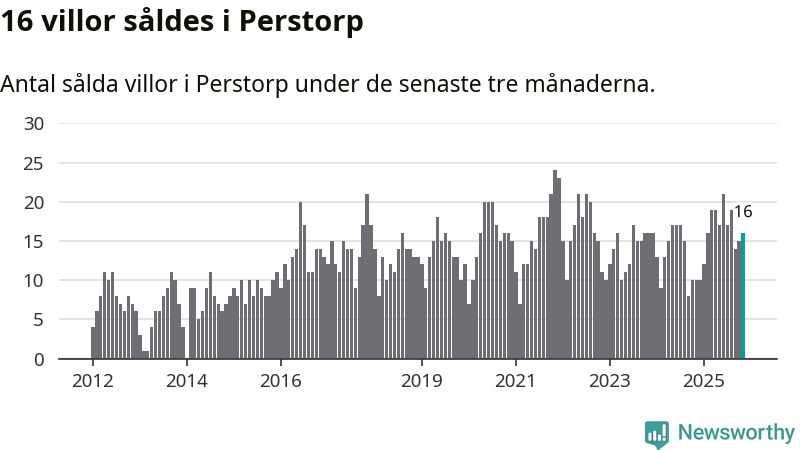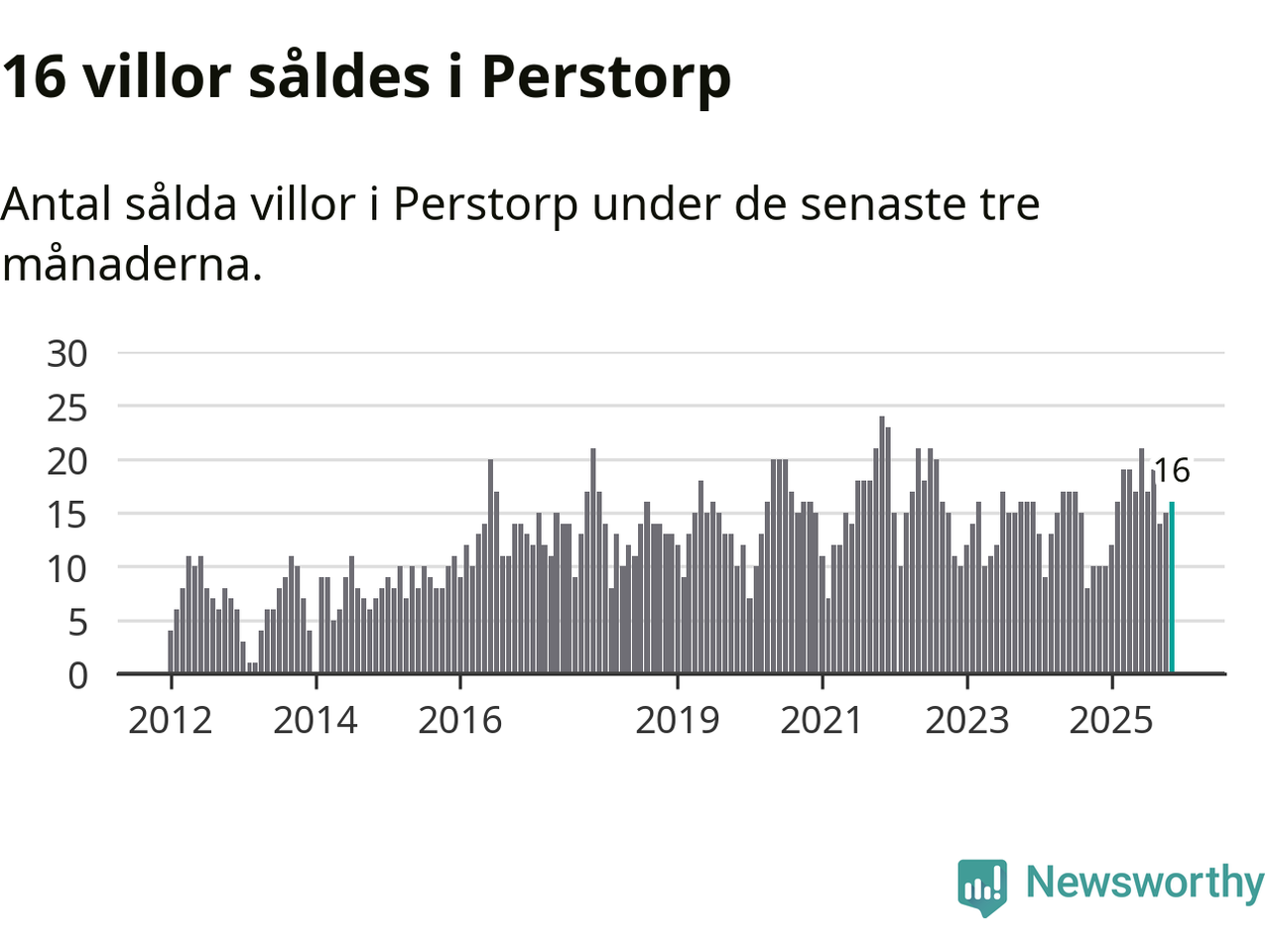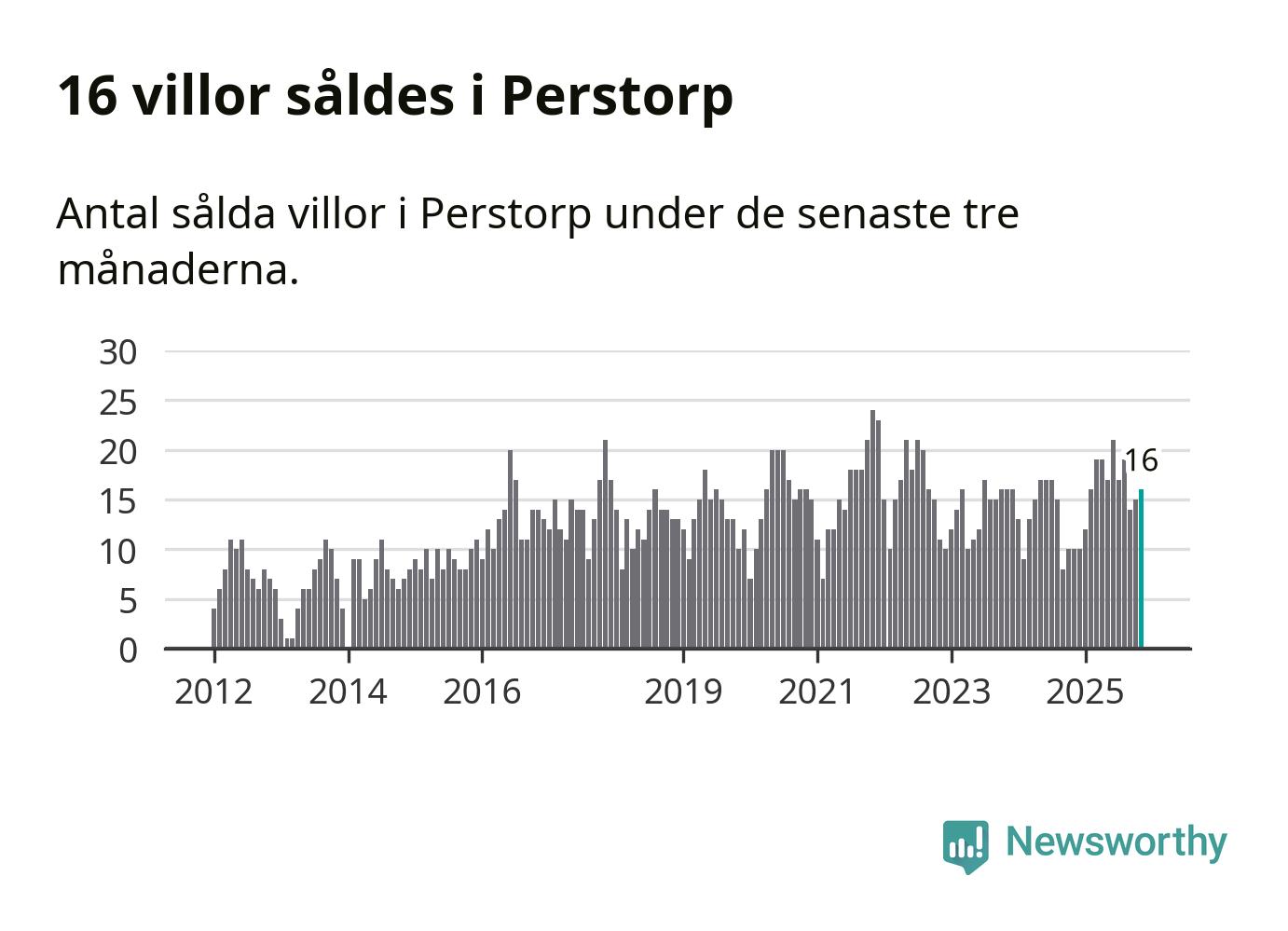Mellan september och november gjordes sammanlagt 16 affärer med villor i Perstorps kommun. Det kan jämföras med tio vid motsvarande tid i fjol.