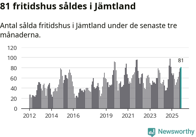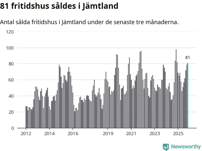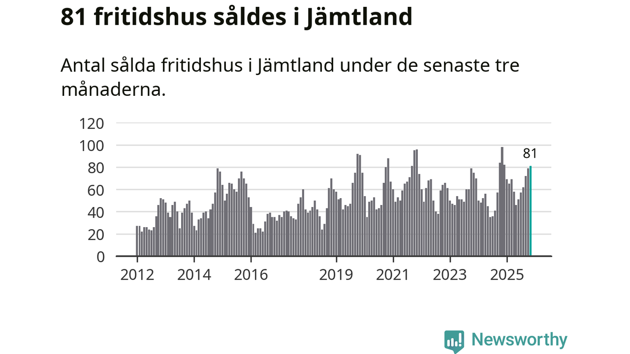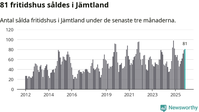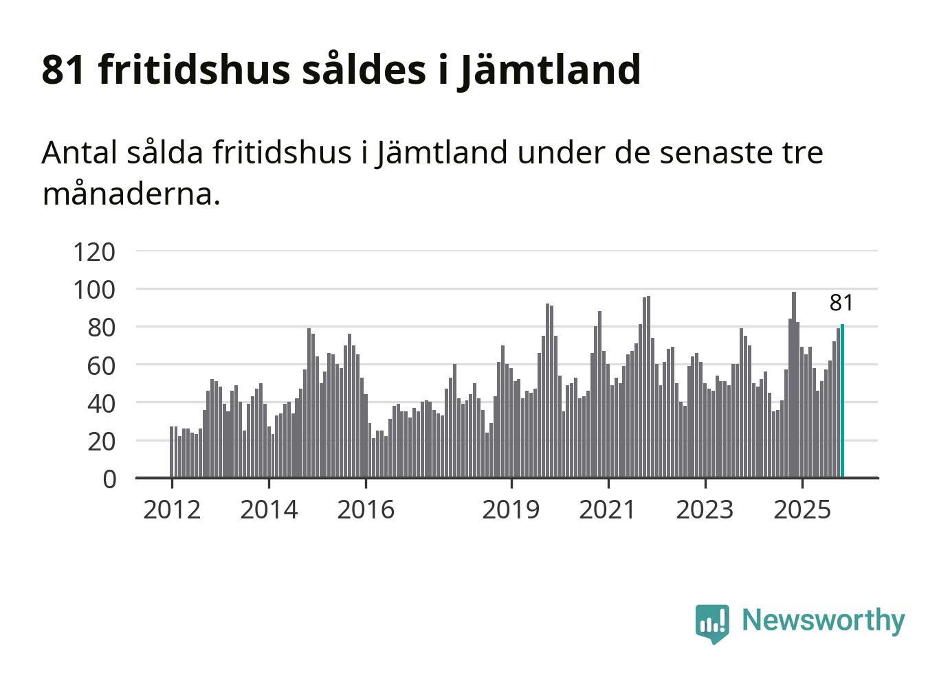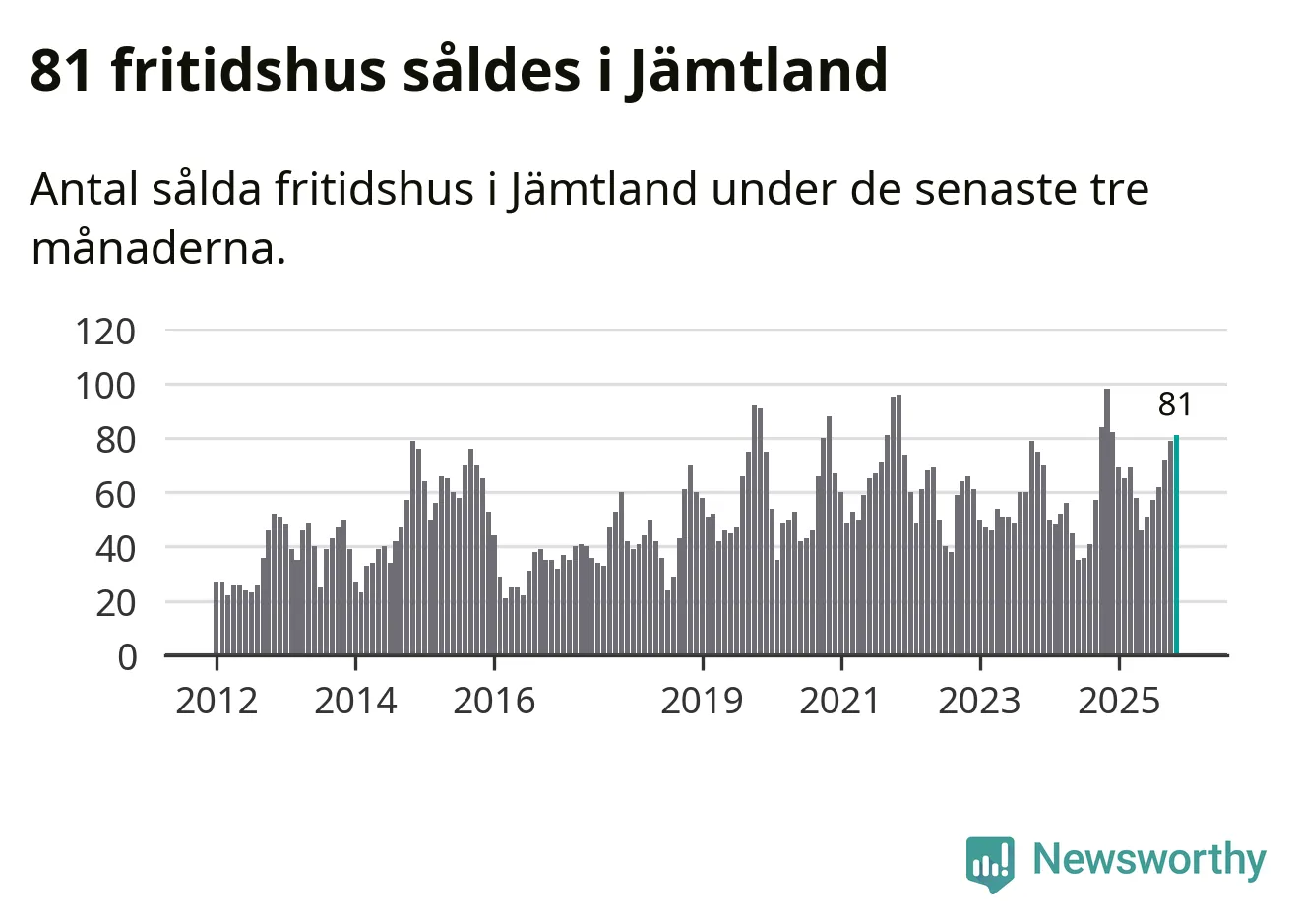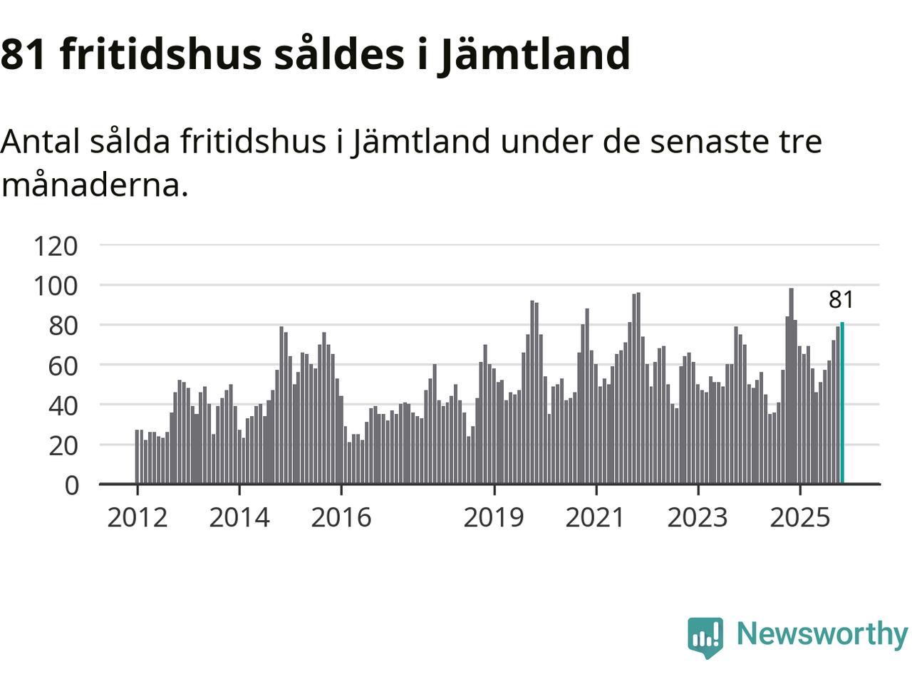 Sammanlagt såldes 81 fritidshus i Jämtlands län mellan september och november till ett genomsnittligt pris på 2,7 miljoner kronor. I fjol gjordes 98 affärer vid den här tiden på året.
