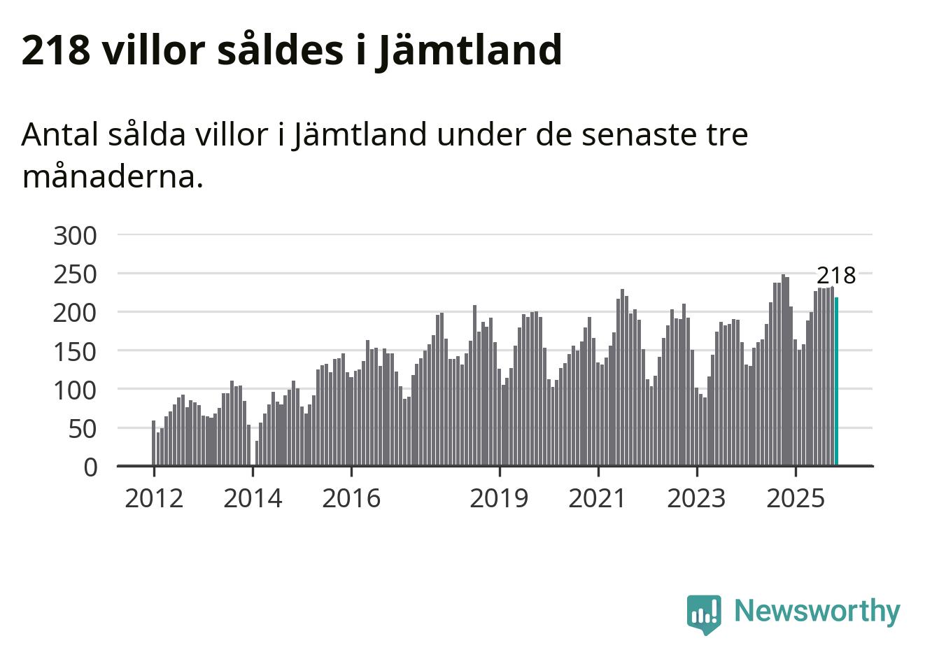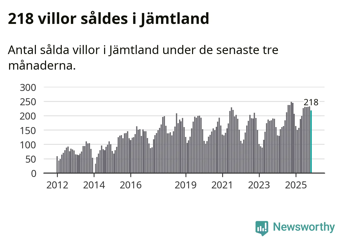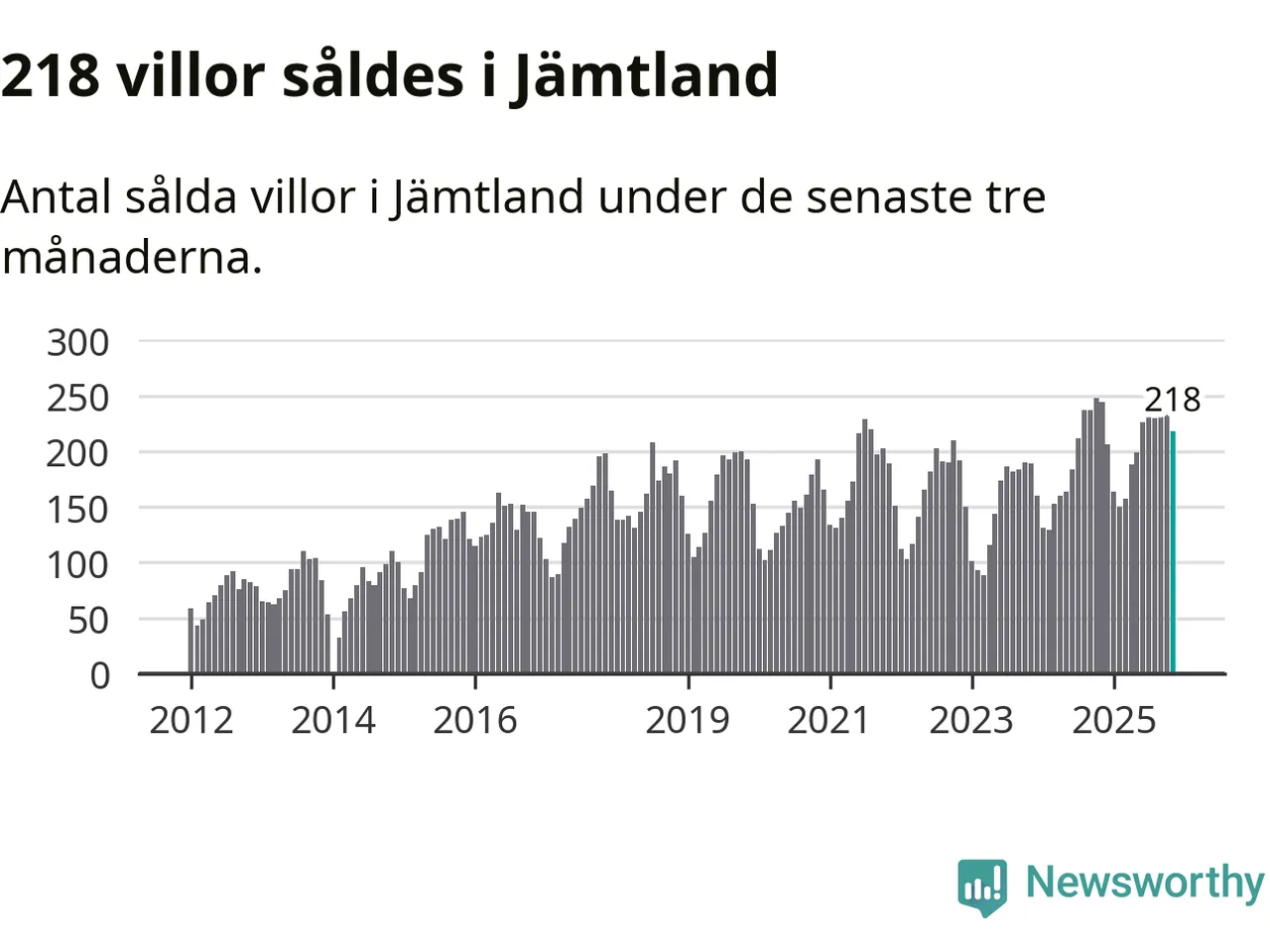 Mellan september och november såldes 218 villor i Jämtlands län. Det är relativt få sett till aktiviteten på bostadsmarknaden i länet under de senaste tolv månaderna, samt det historiska snittet för den här tiden på året.