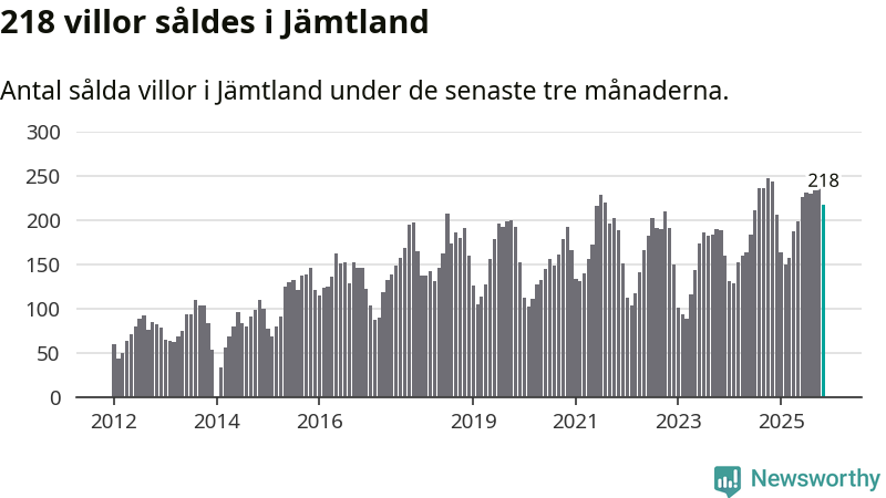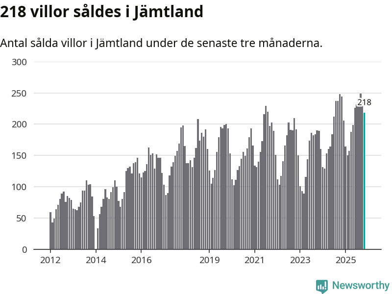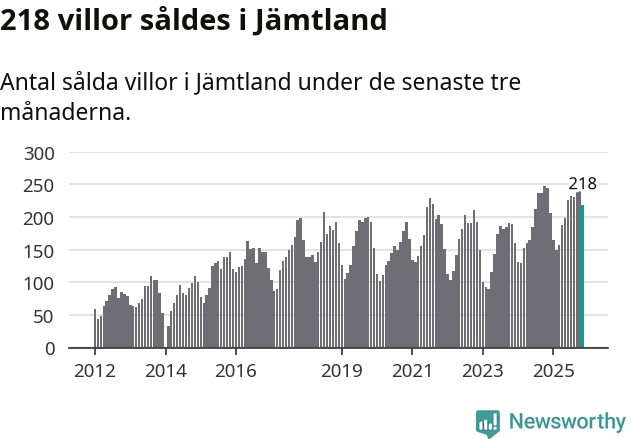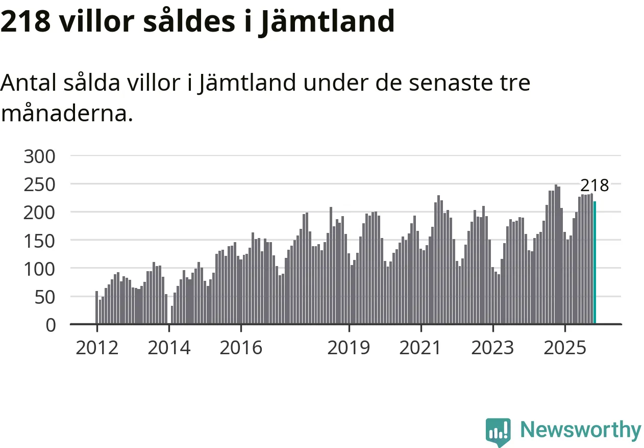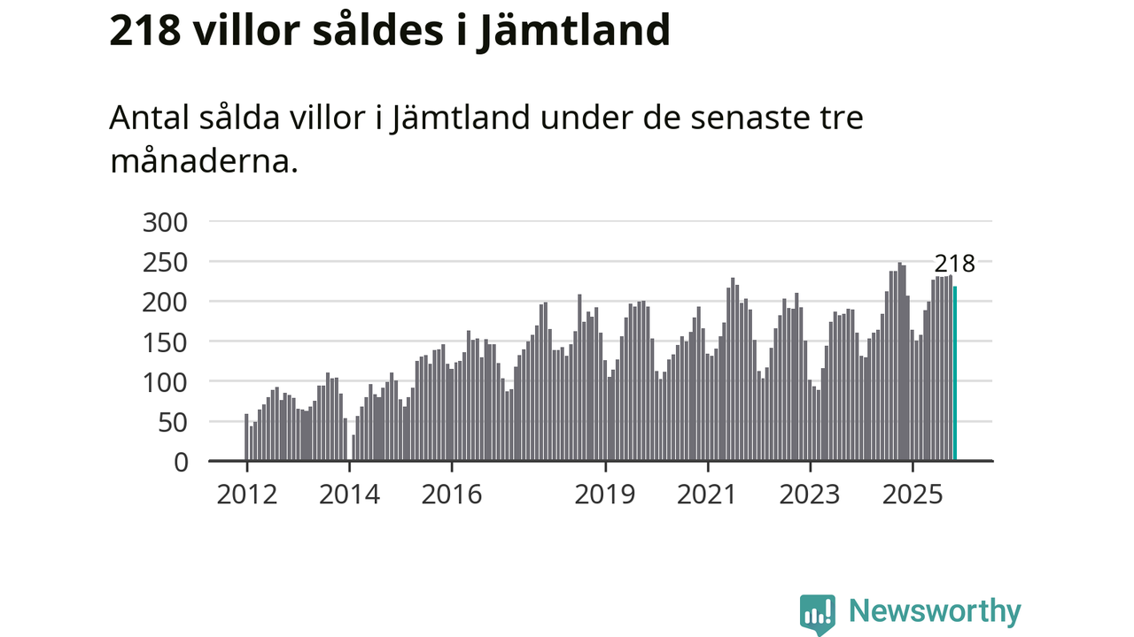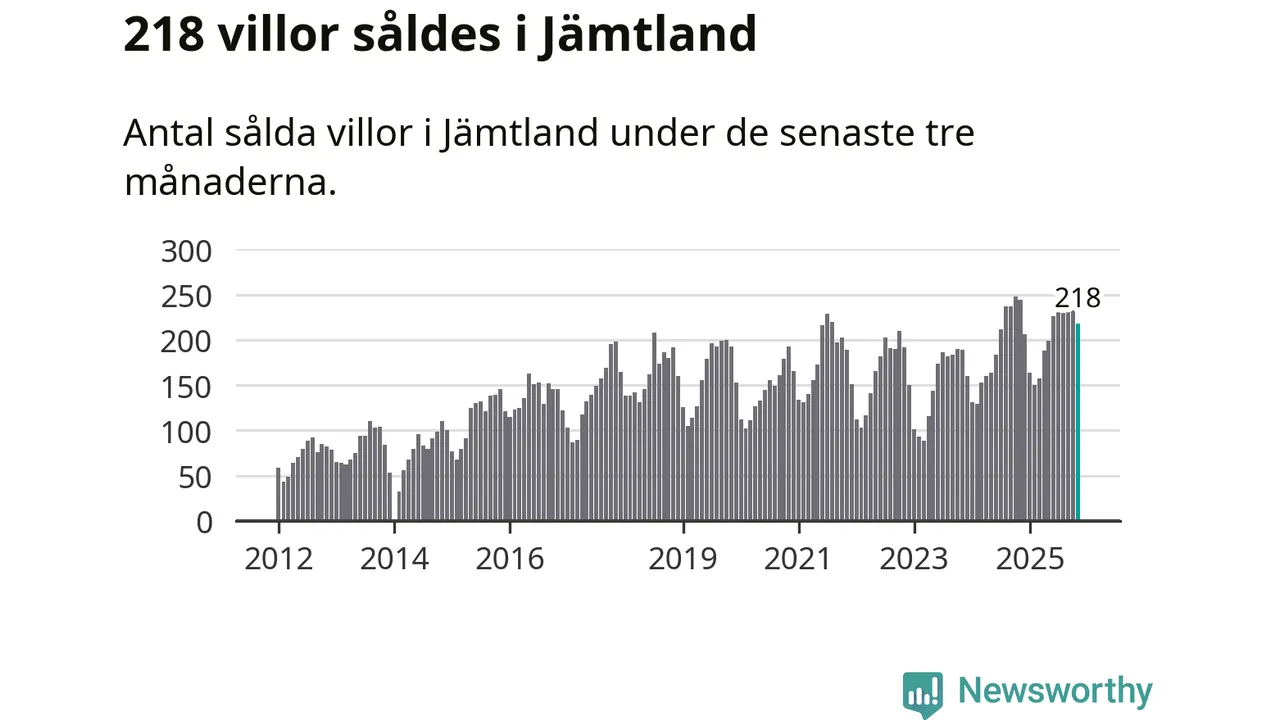 Mellan september och november såldes 218 villor i Jämtlands län. Det är relativt få sett till aktiviteten på bostadsmarknaden i länet under de senaste tolv månaderna, samt det historiska snittet för den här tiden på året.