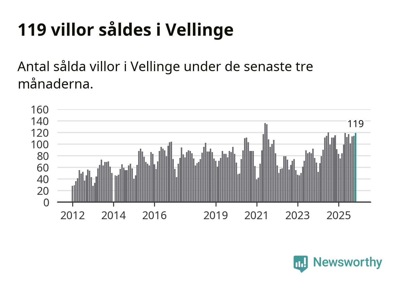 Graf: Antal sålda villor i Vellinge kommun