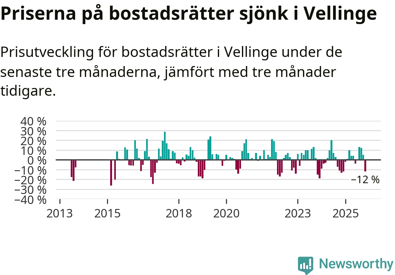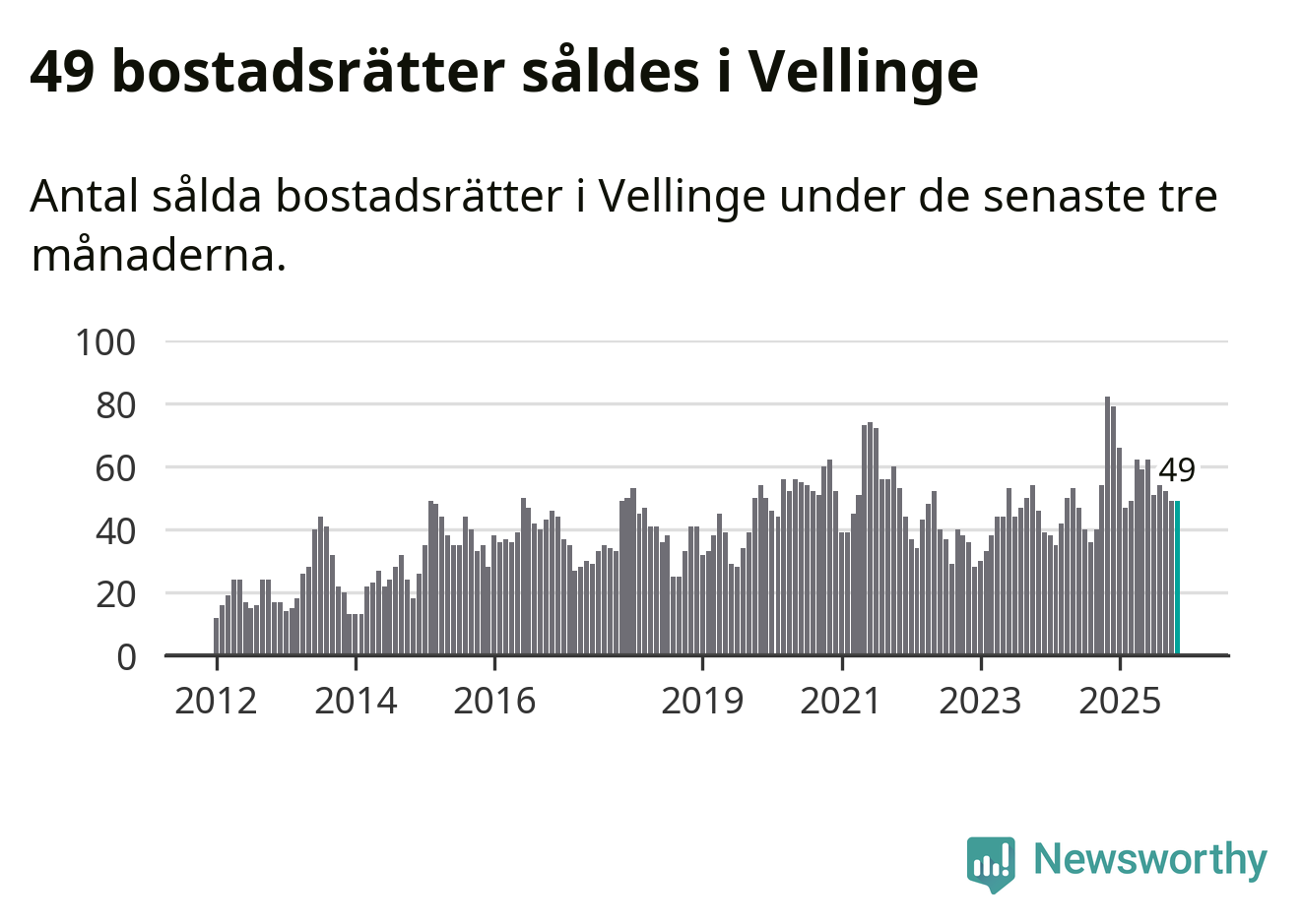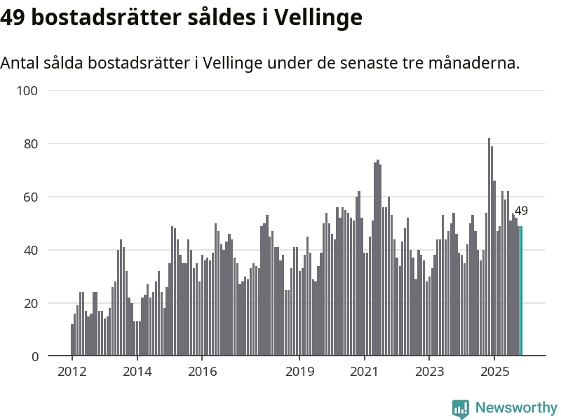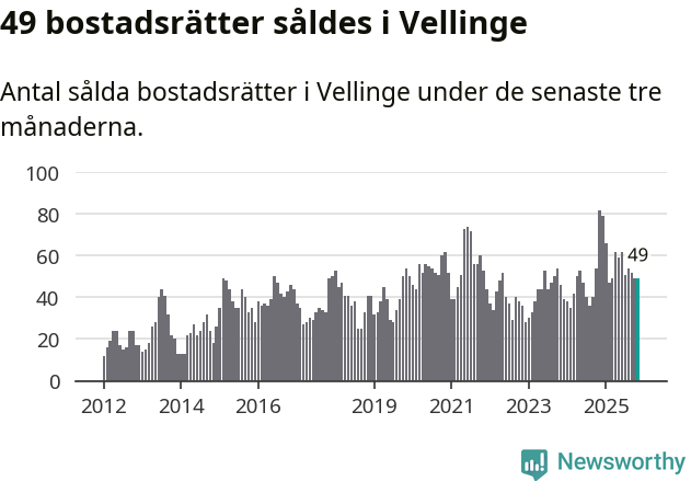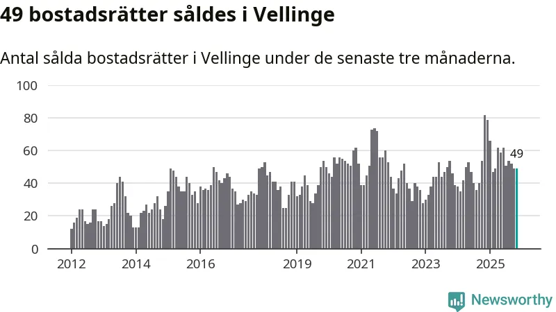 Mellan september och november såldes 49 bostadsrätter i Vellinge kommun. Det är relativt få sett till aktiviteten på bostadsmarknaden i kommunen under de senaste tolv månaderna, samt det historiska snittet för den här tiden på året.