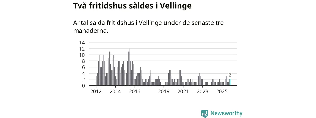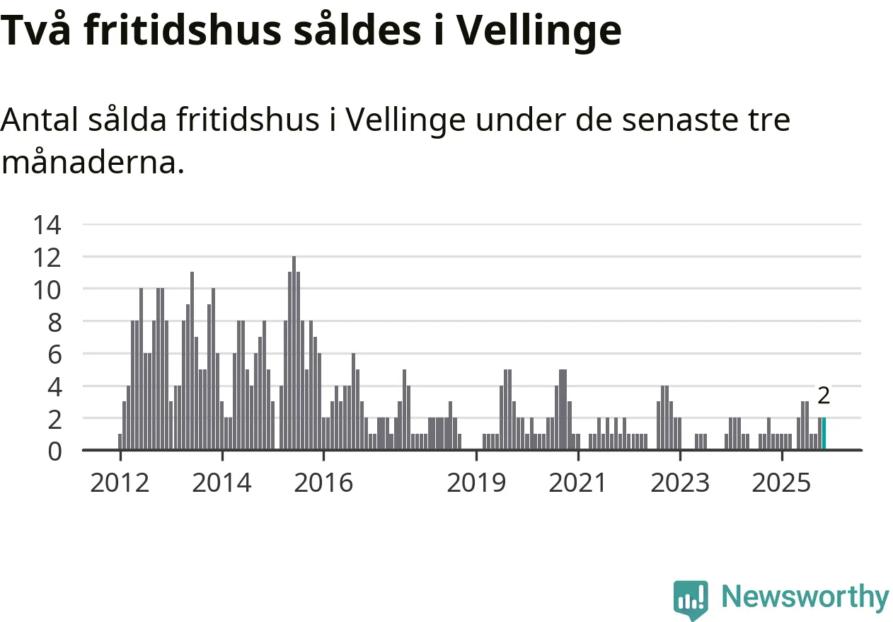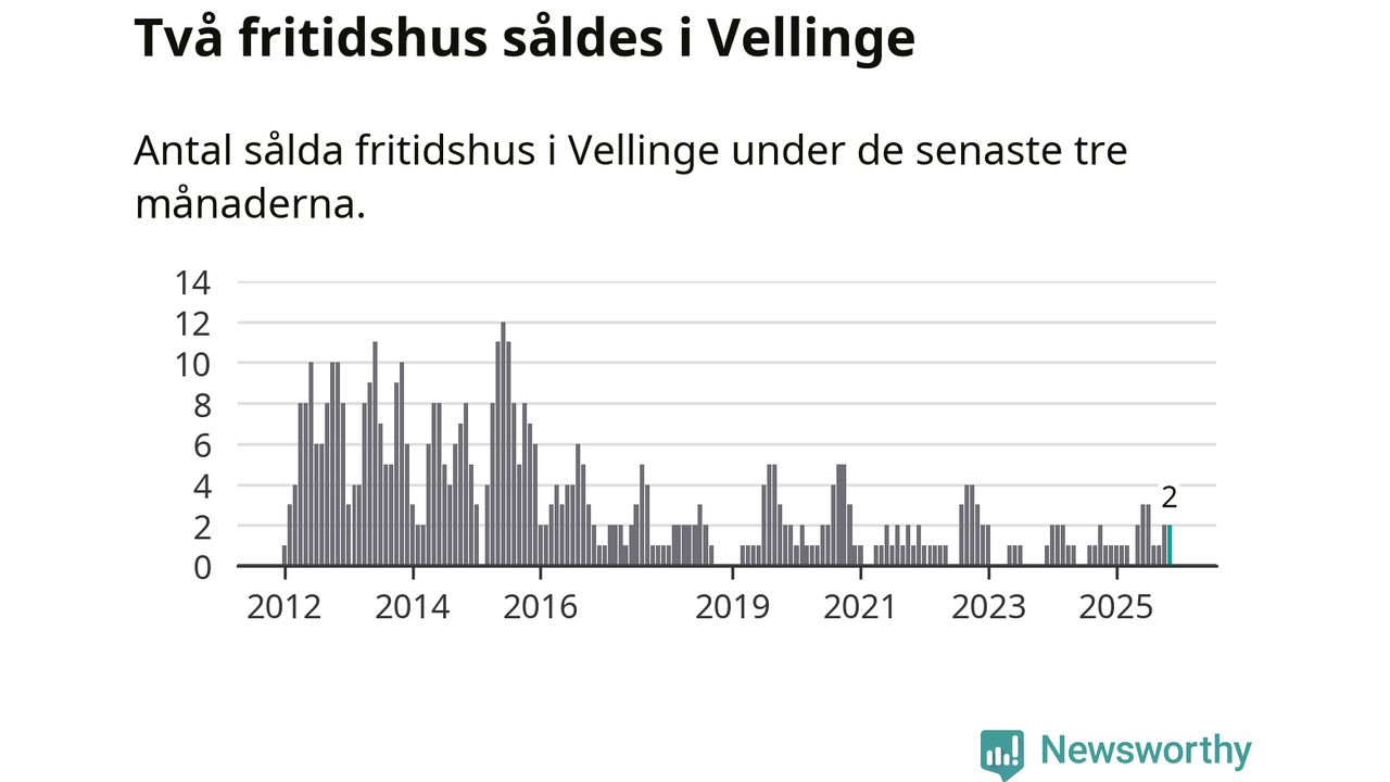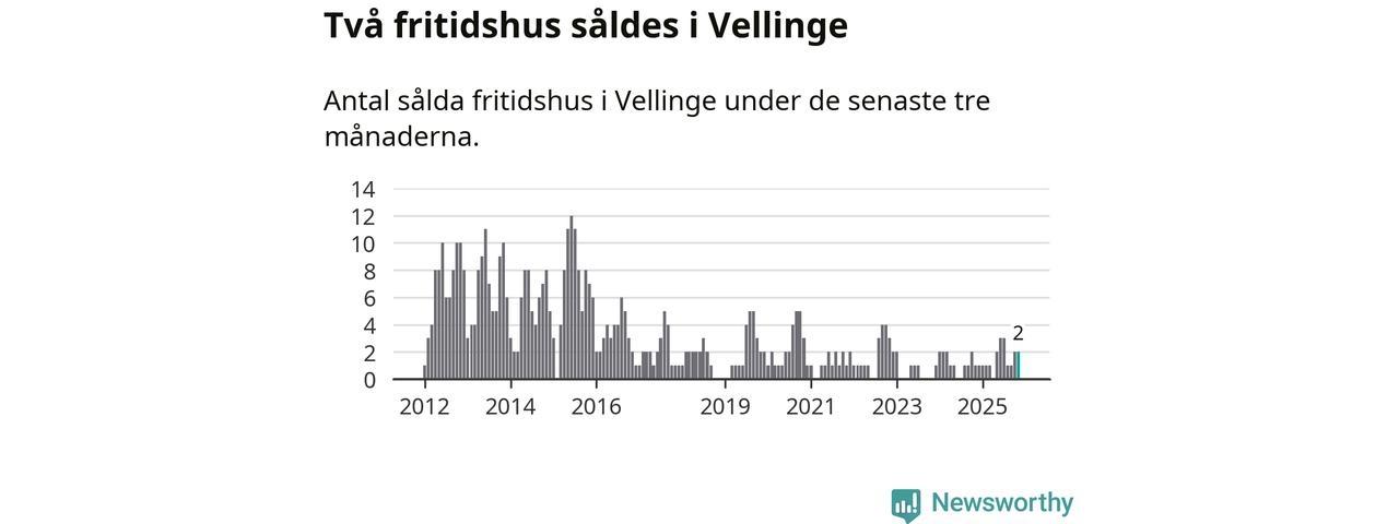 Mellan september och november gjordes sammanlagt två affärer med fritidshus i Vellinge kommun. Det kan jämföras med ett vid motsvarande tid i fjol.