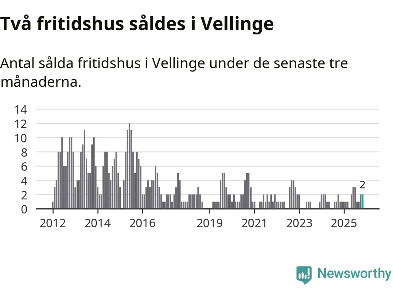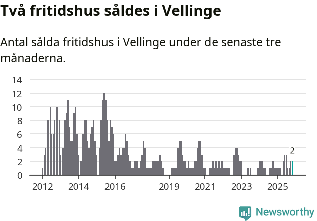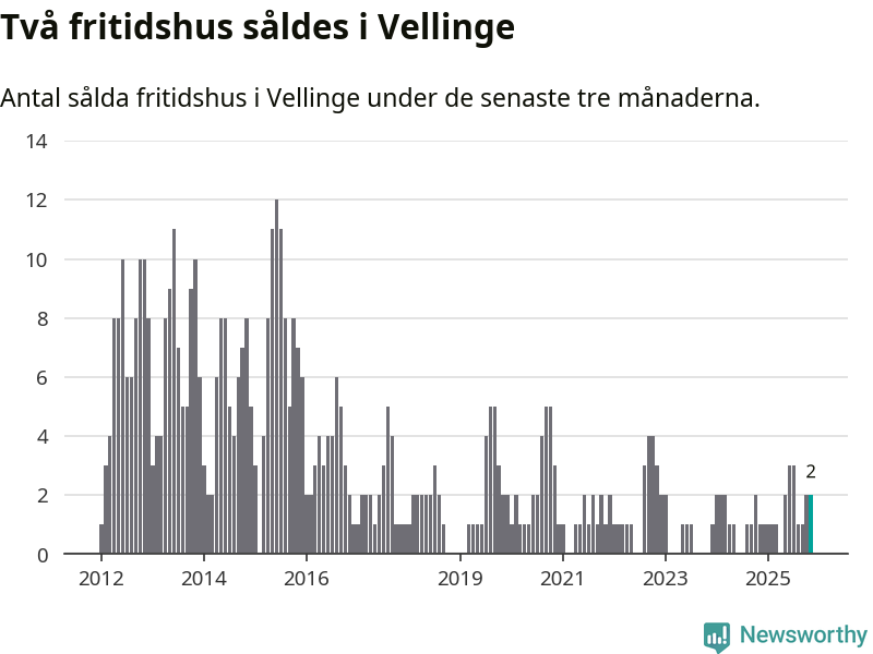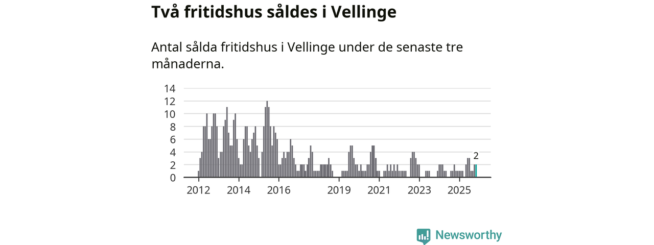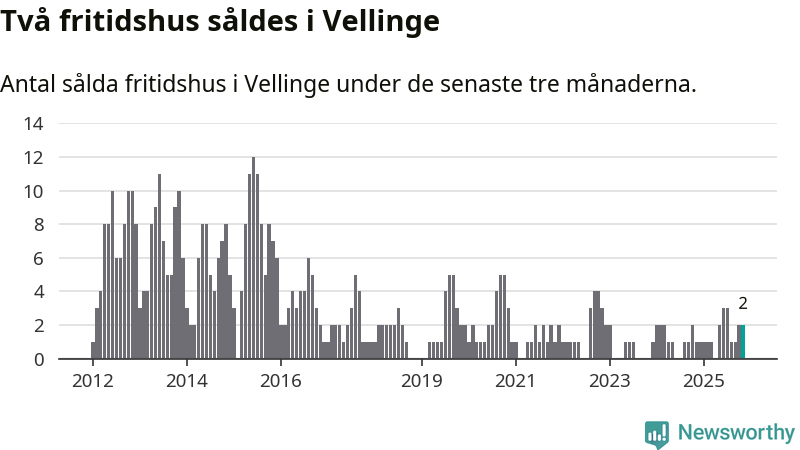 Mellan september och november gjordes sammanlagt två affärer med fritidshus i Vellinge kommun. Det kan jämföras med ett vid motsvarande tid i fjol.