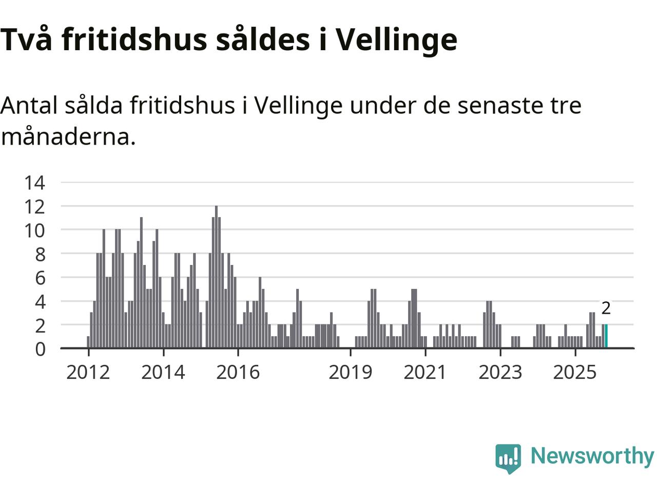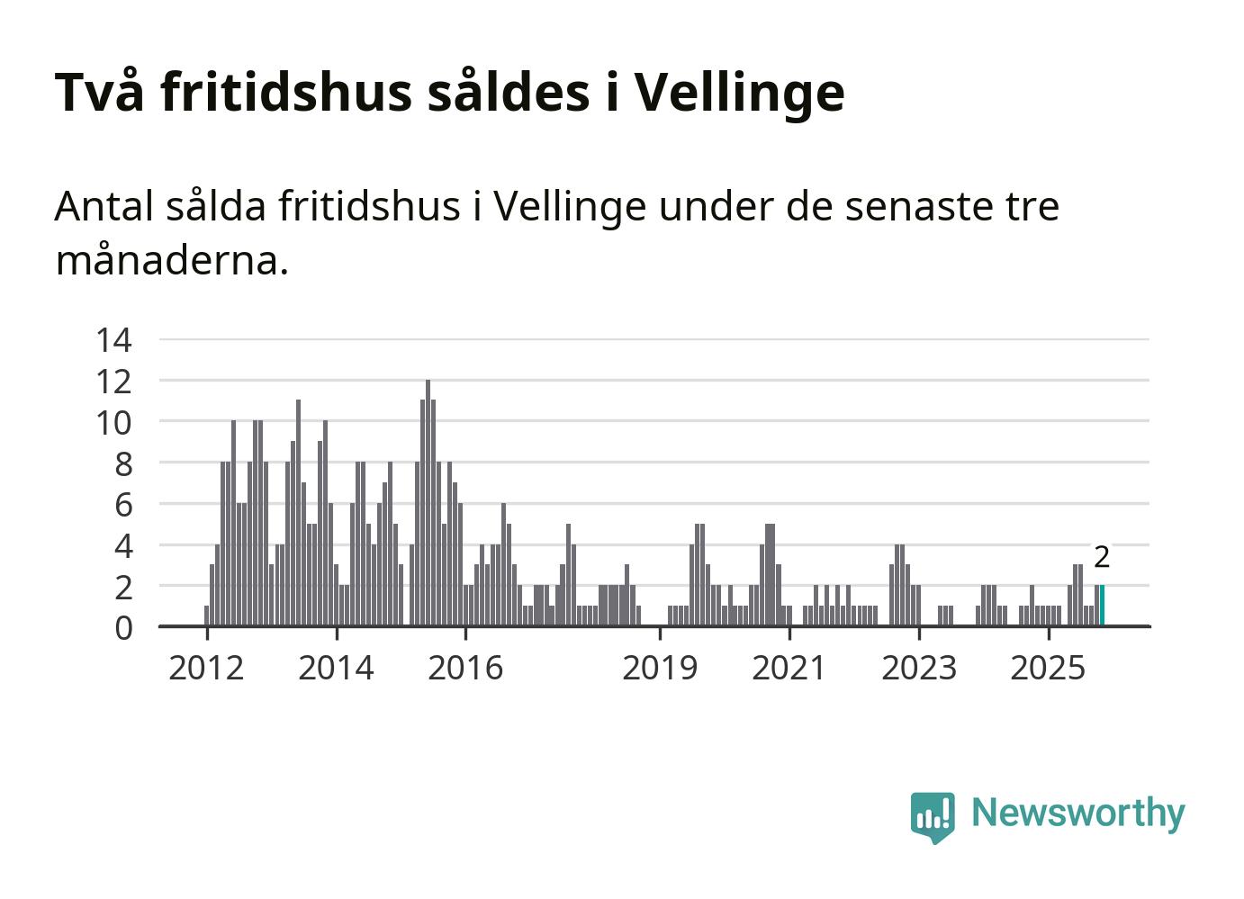 Graf: Antal sålda fritidshus i Vellinge kommun