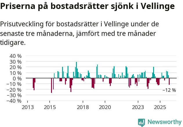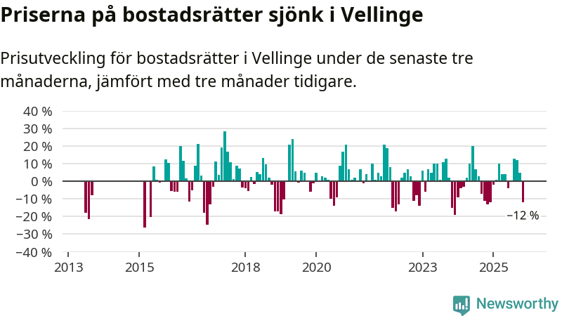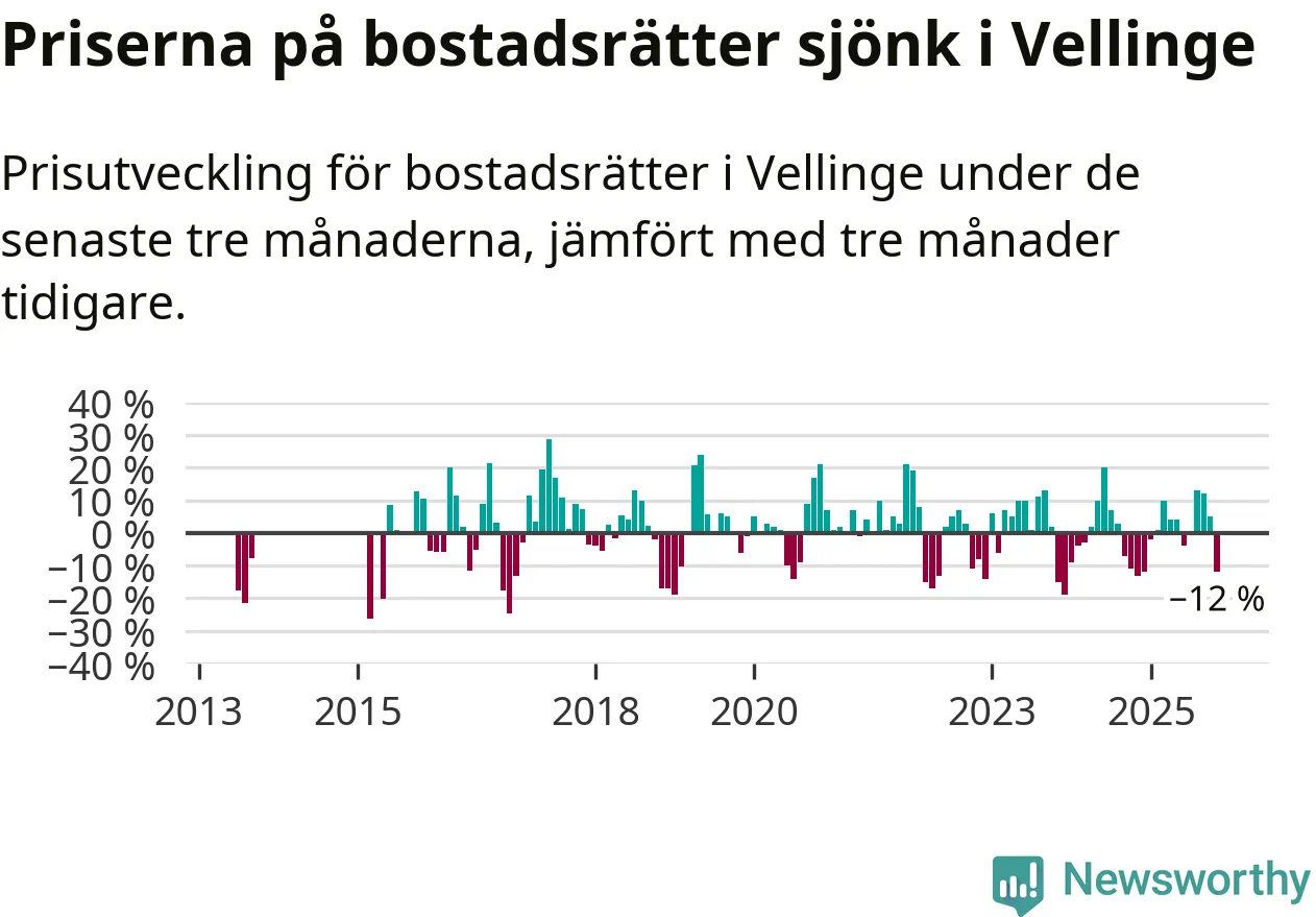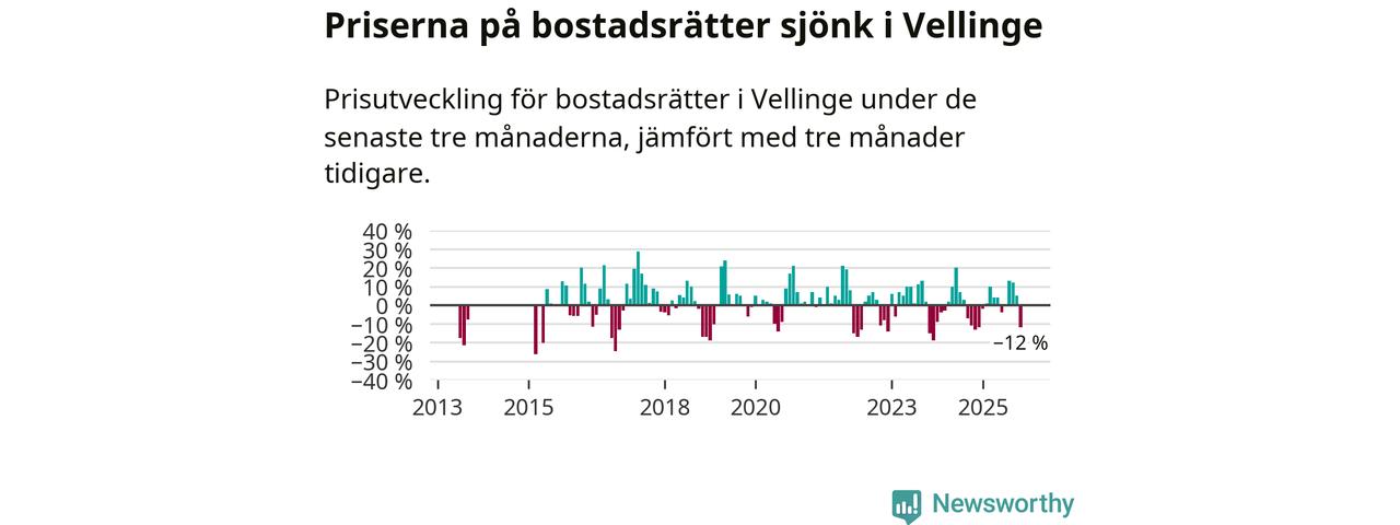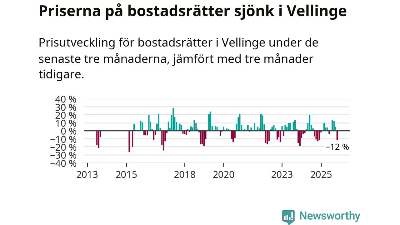 Under september till november såldes det åtta färre bostadsrätter i Vellinge än snittet för det senaste året.