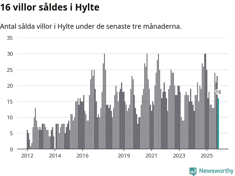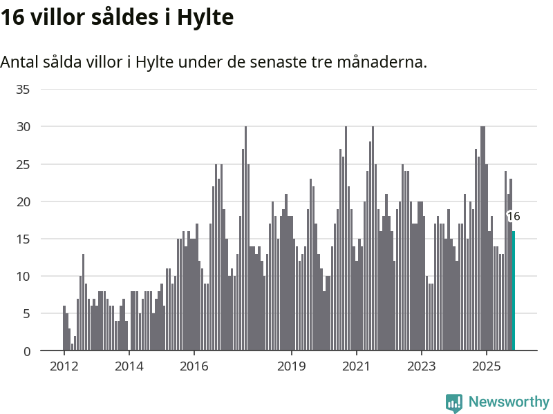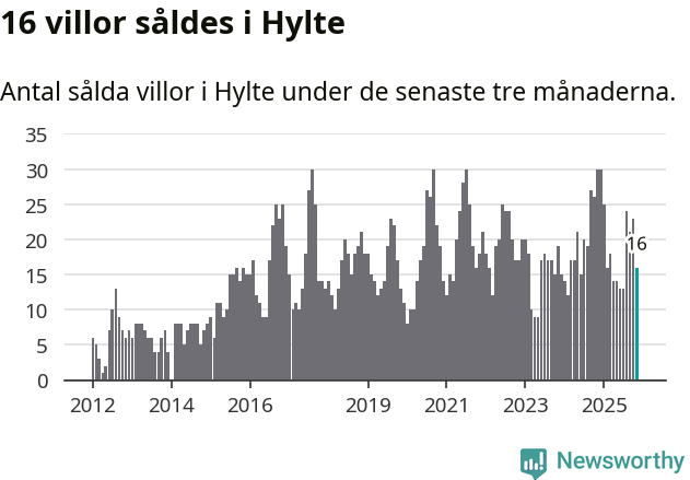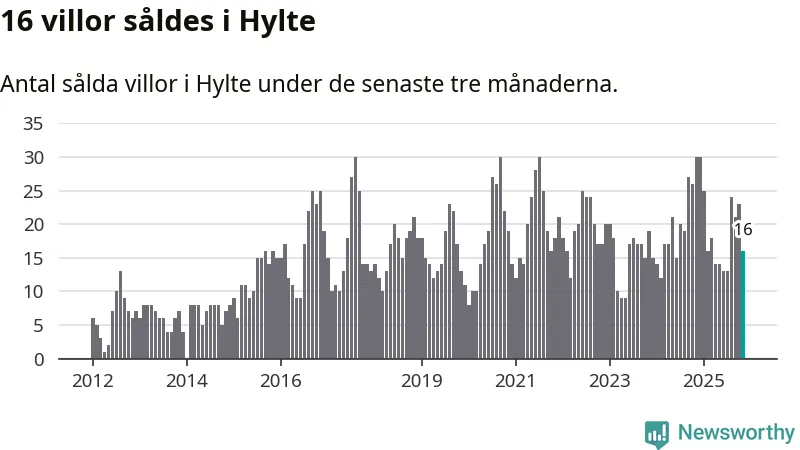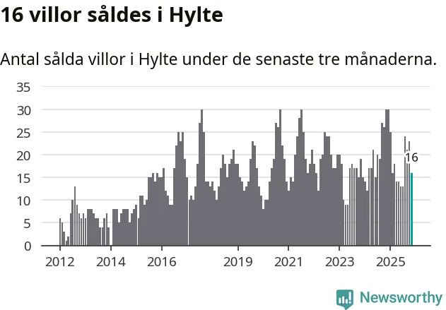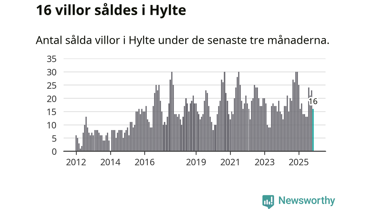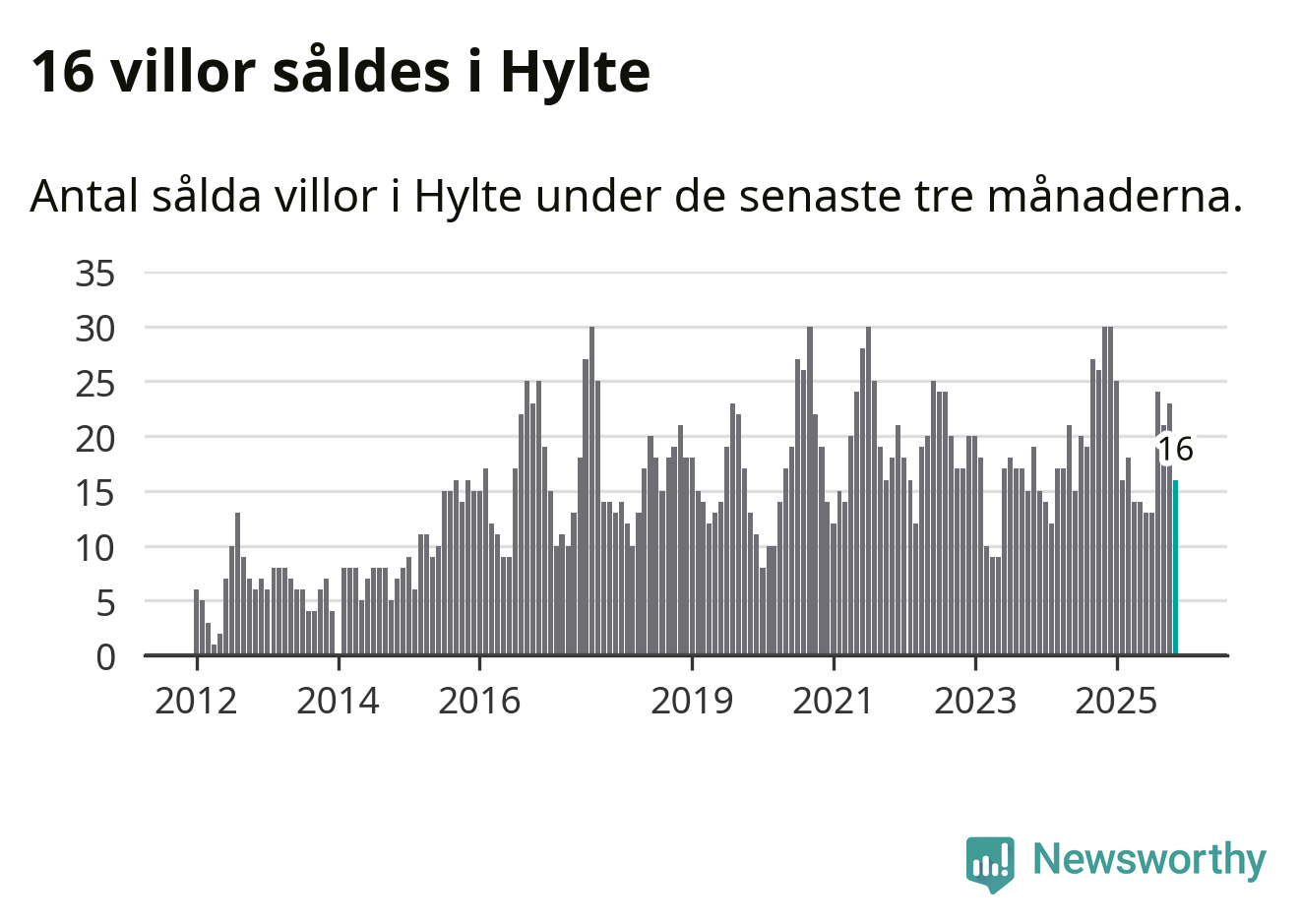 Mellan september och november gjordes sammanlagt 16 affärer med villor i Hylte kommun. Det kan jämföras med 30 vid motsvarande tid i fjol.