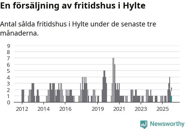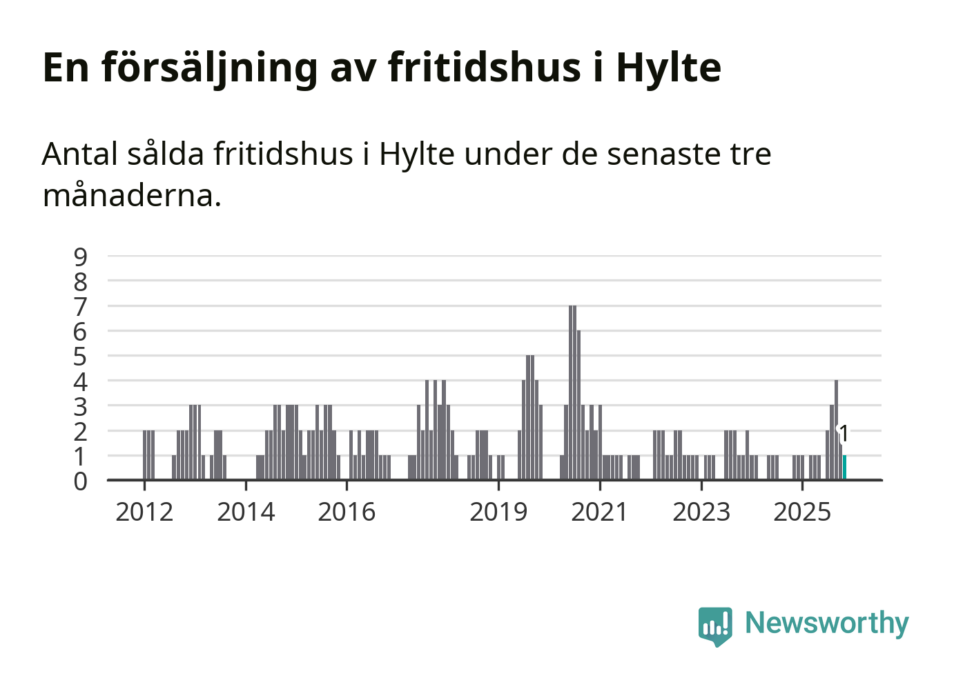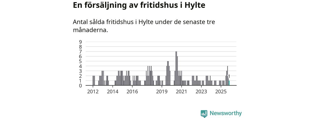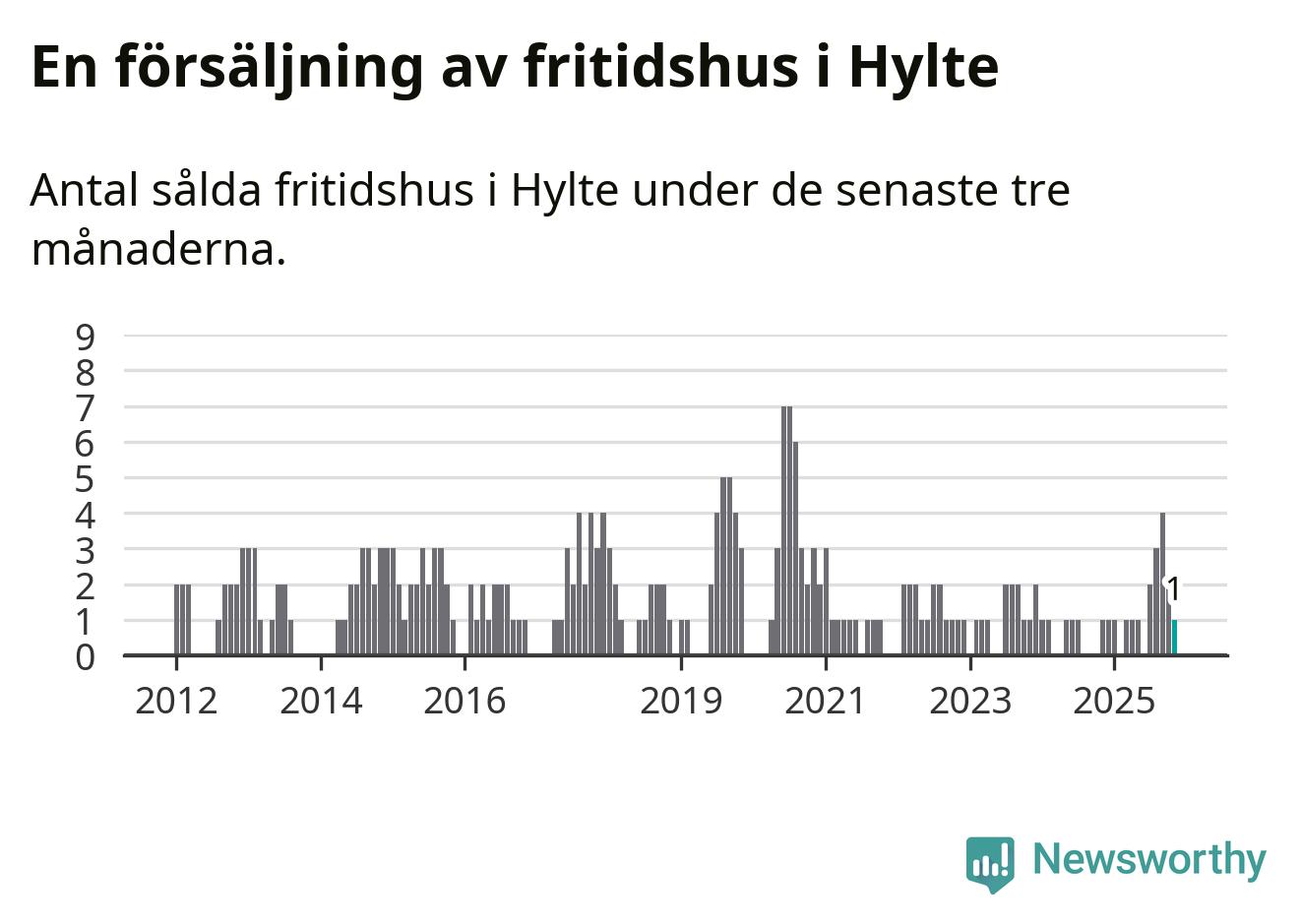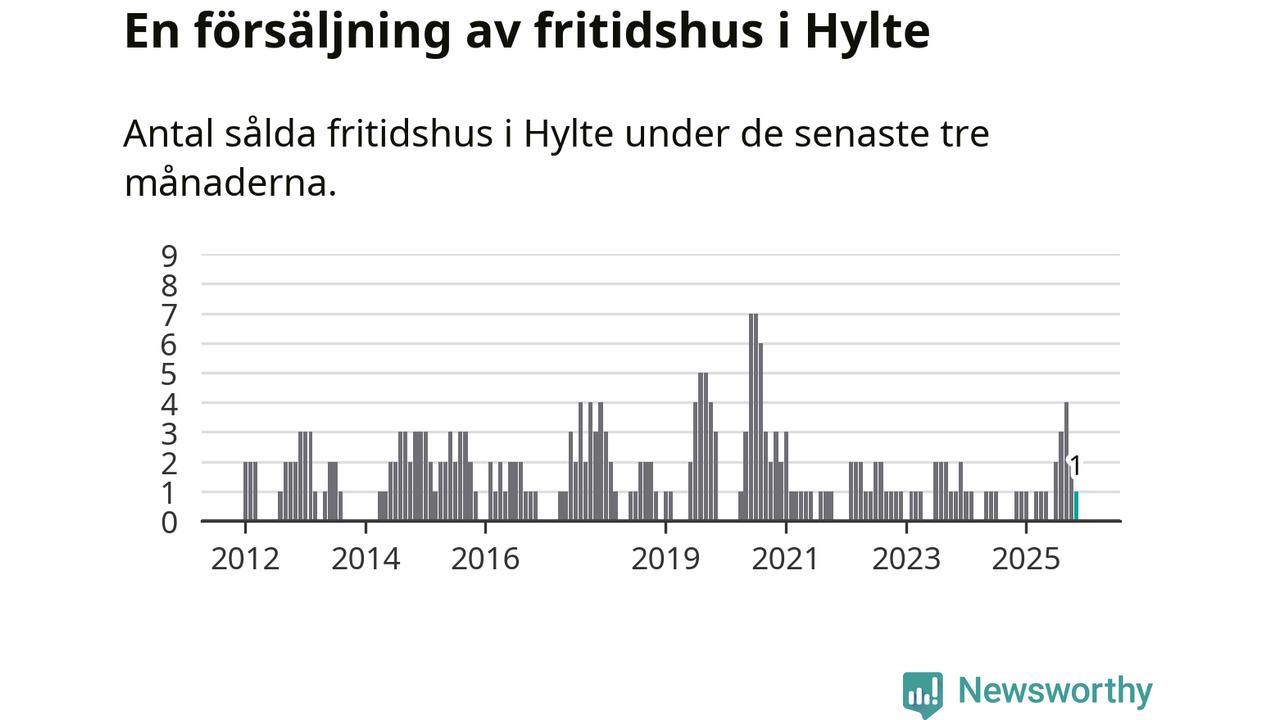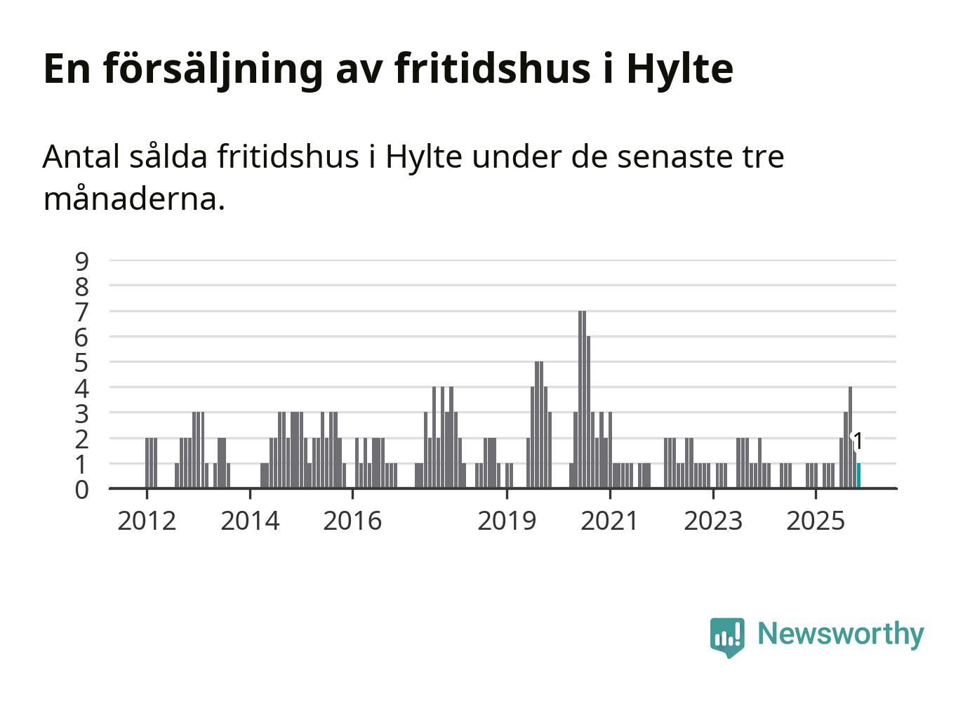 Mellan september och november gjordes sammanlagt en affär med fritidshus i Hylte kommun. Det är lika många affärer som vid motsvarande tid i fjol.