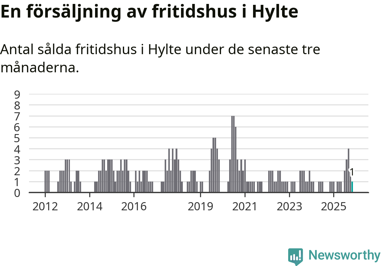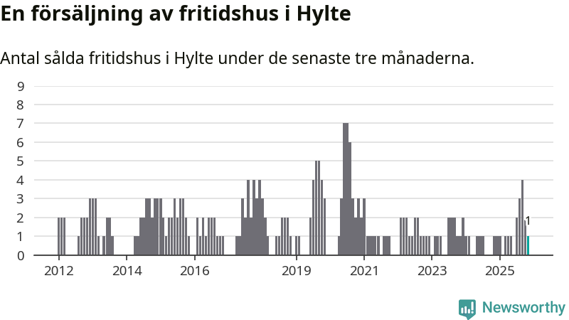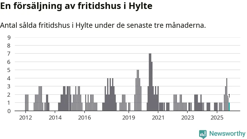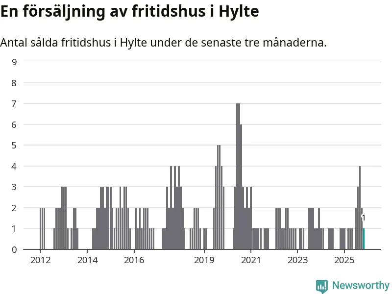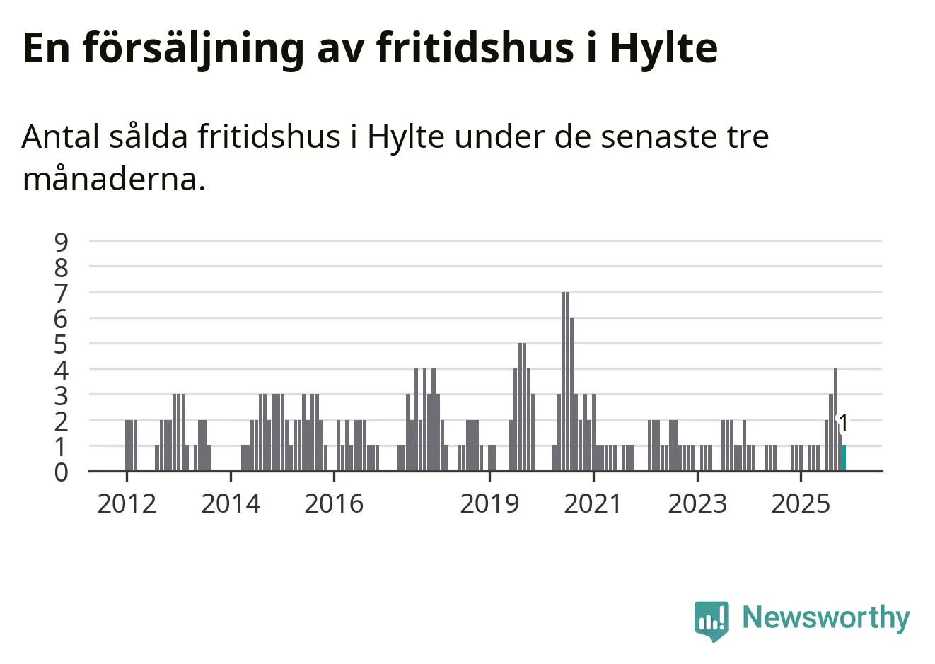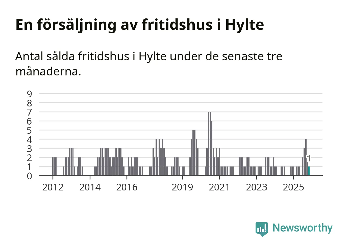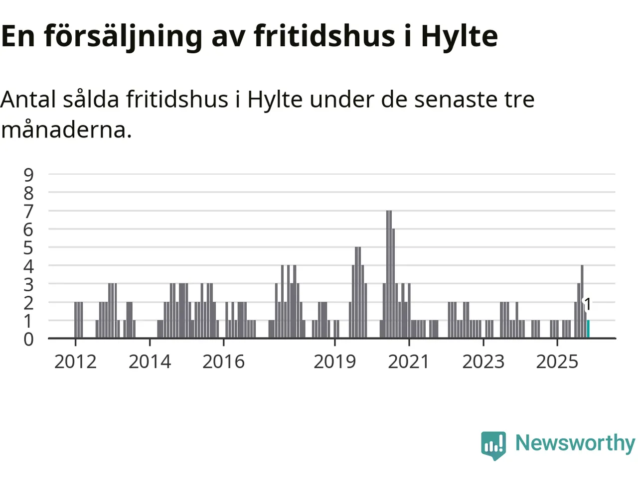 Mellan september och november gjordes sammanlagt en affär med fritidshus i Hylte kommun. Det är lika många affärer som vid motsvarande tid i fjol.