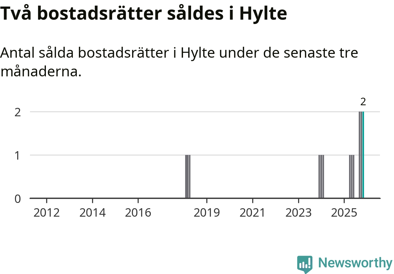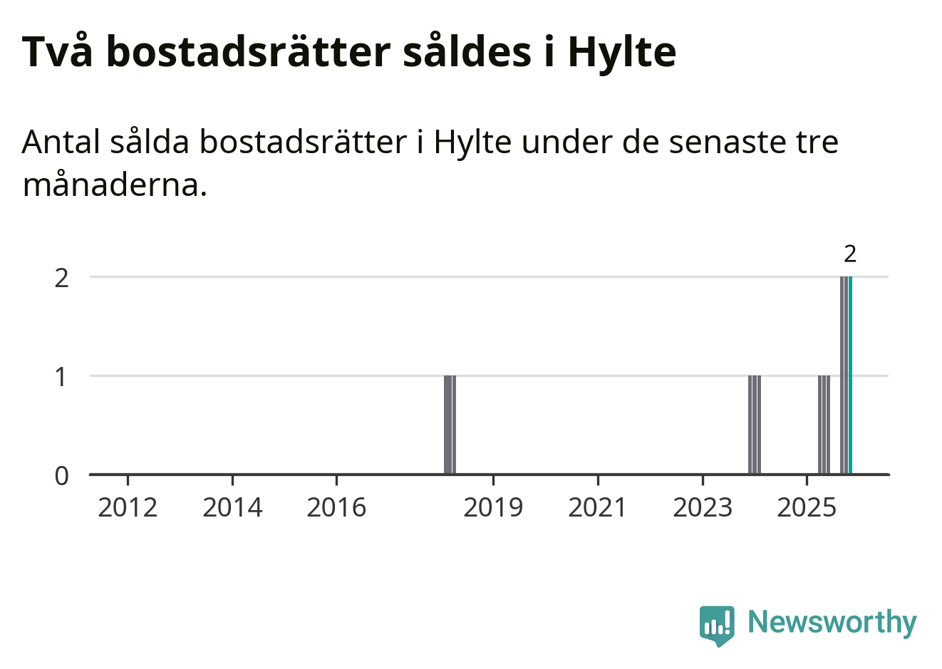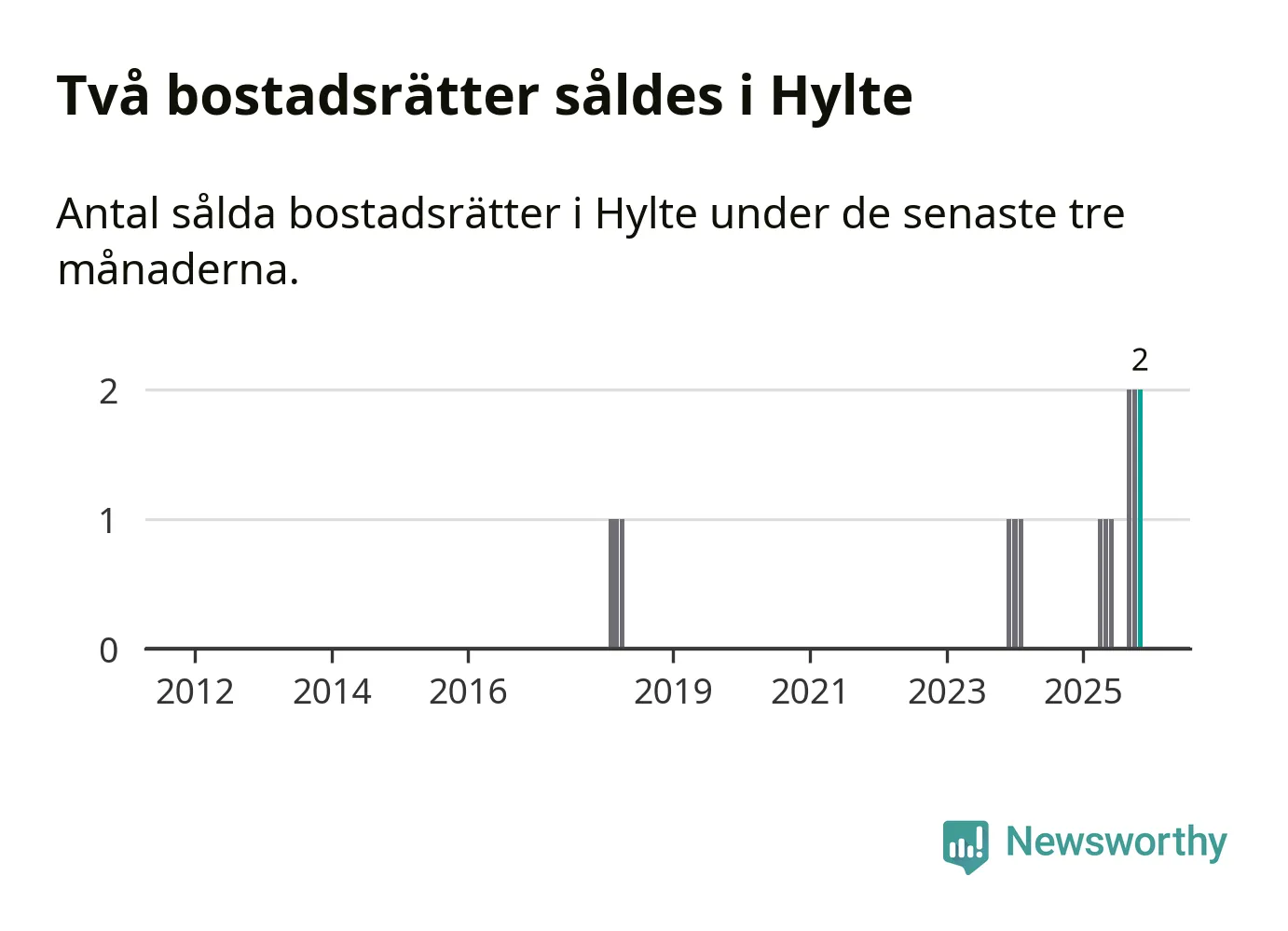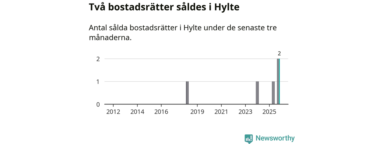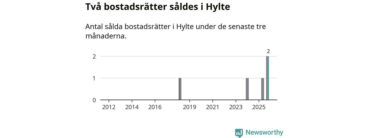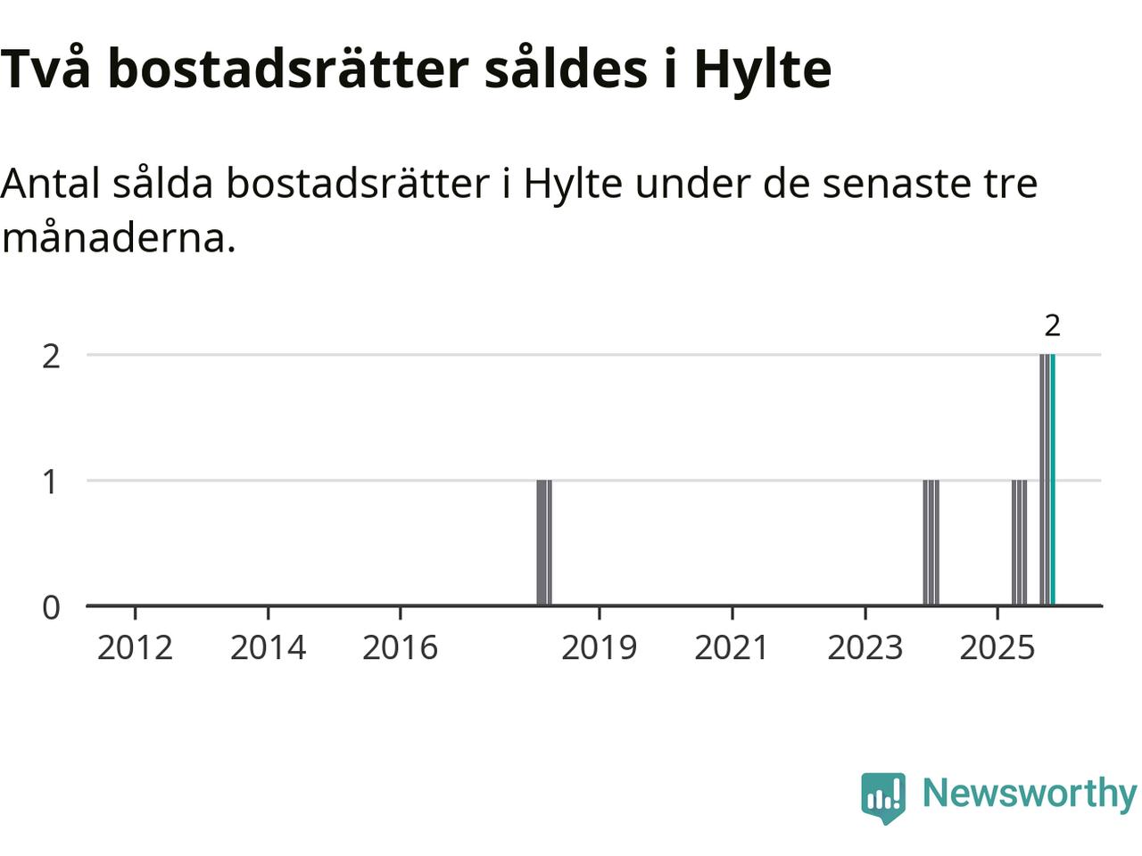 Mellan september och november gjordes sammanlagt två affärer med bostadsrätter i Hylte kommun.