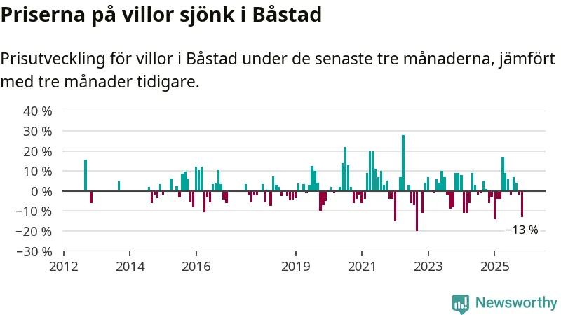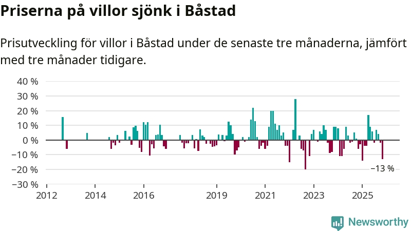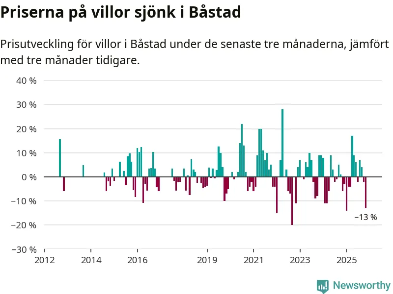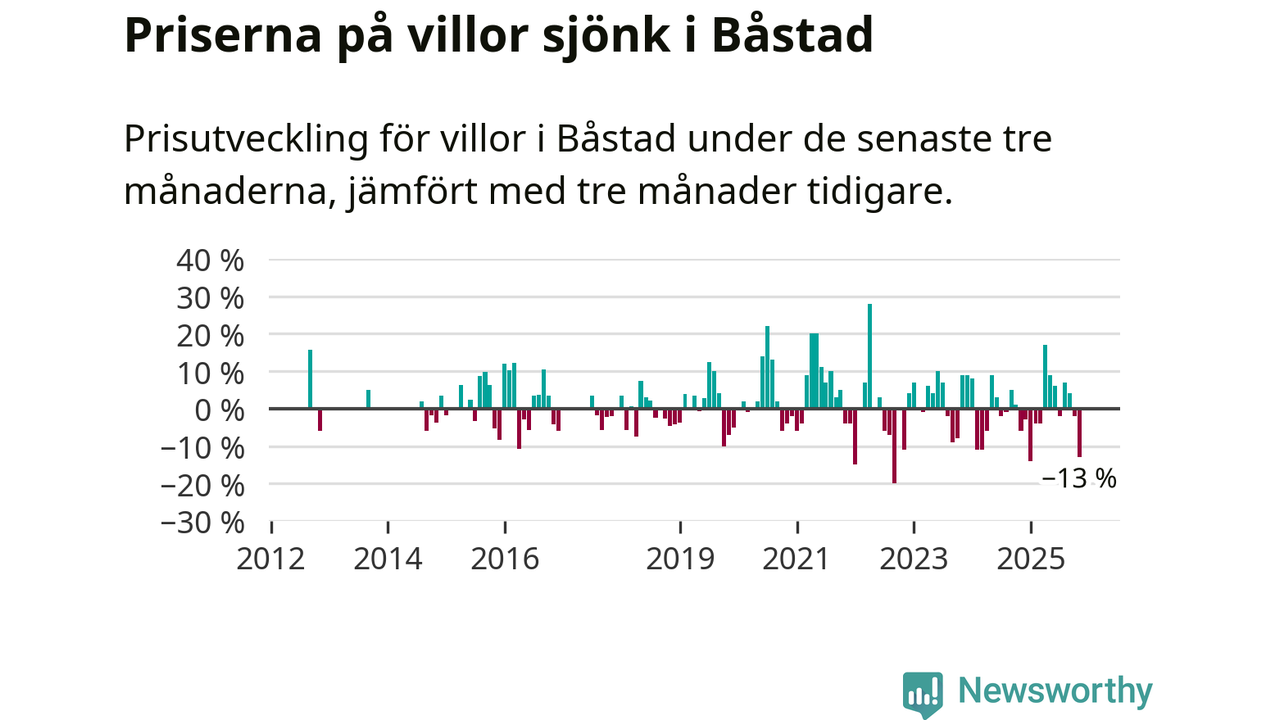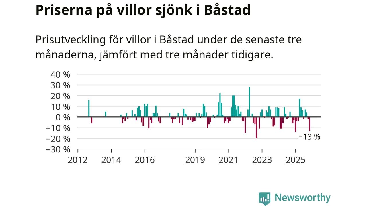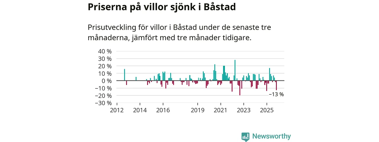 Villapriserna sjönk mellan september och november med 13 procent i Båstads kommun. Det är en betydande nedgång jämfört med det gångna året då priserna i snitt stått stilla.