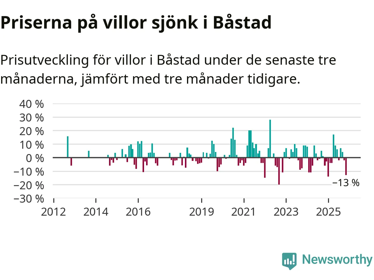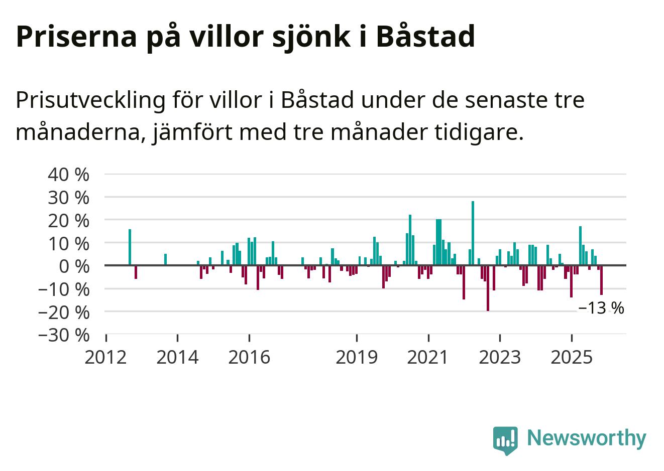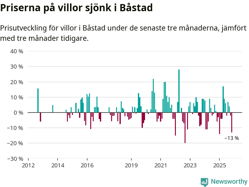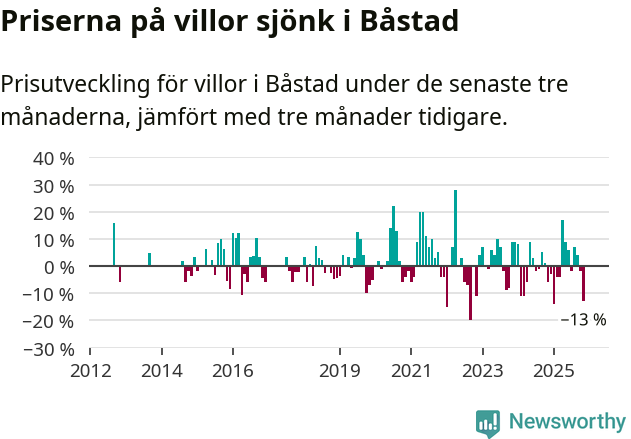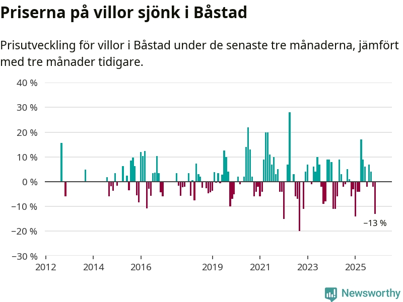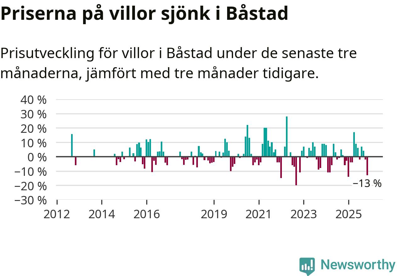 Villapriserna sjönk mellan september och november med 13 procent i Båstads kommun. Det är en betydande nedgång jämfört med det gångna året då priserna i snitt stått stilla.