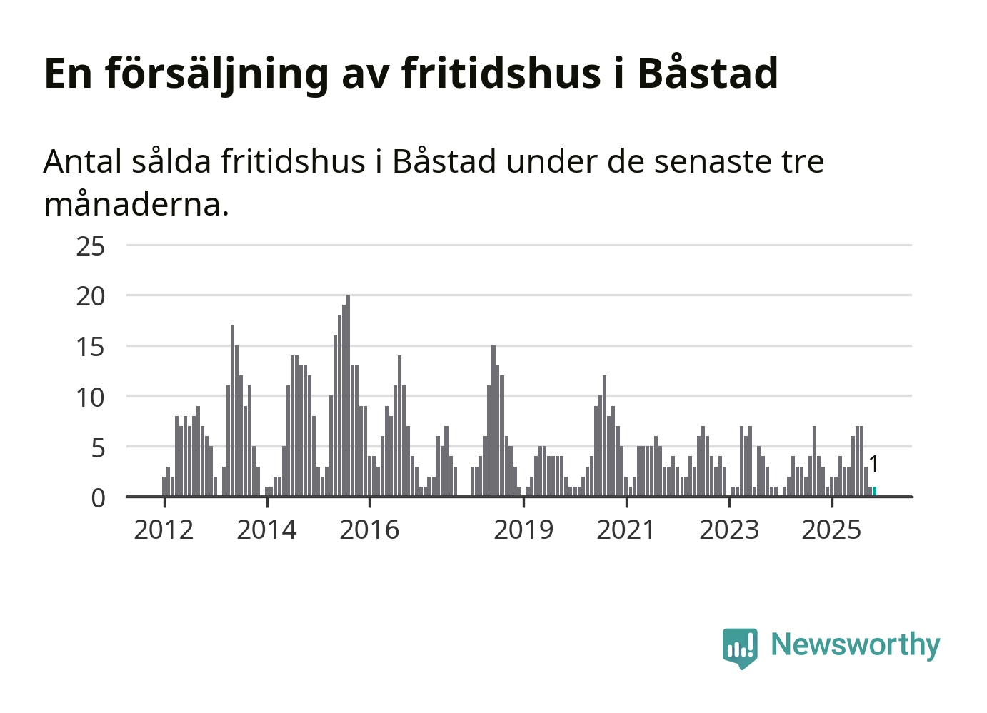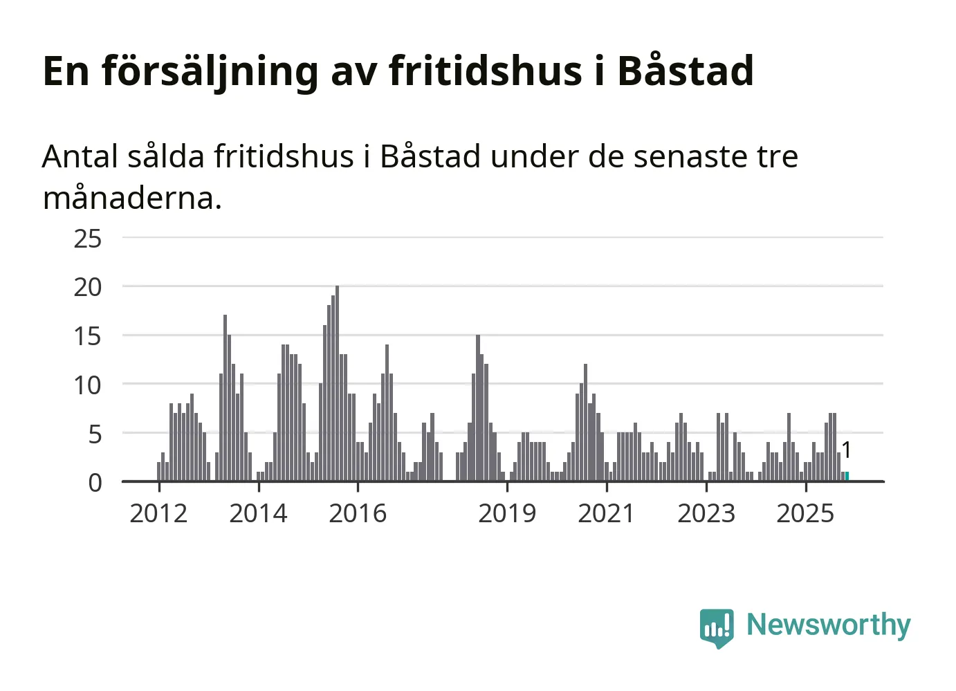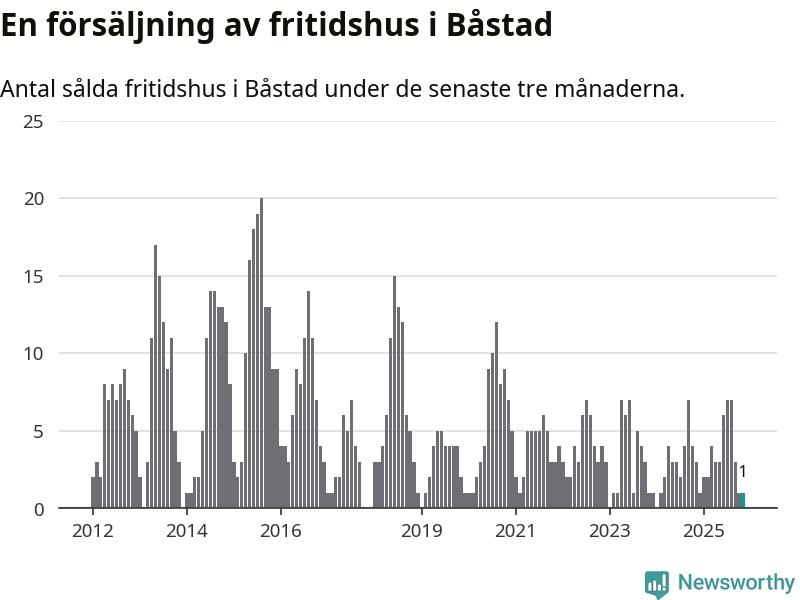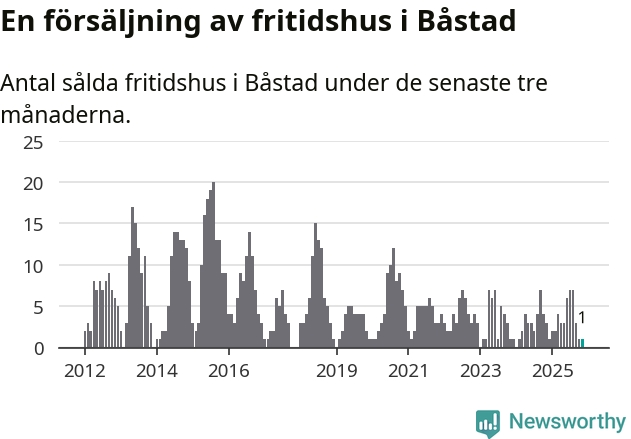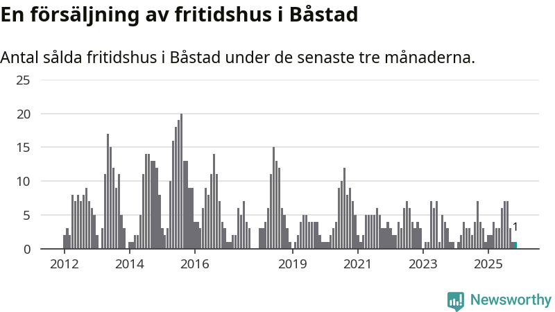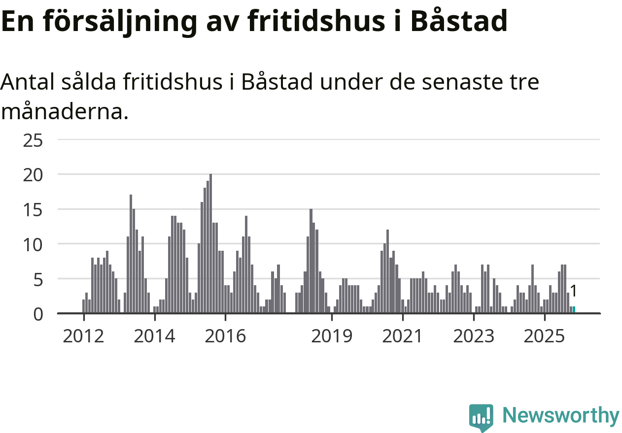 Mellan september och november gjordes sammanlagt en affär med fritidshus i Båstads kommun. Det kan jämföras med tre vid motsvarande tid i fjol.