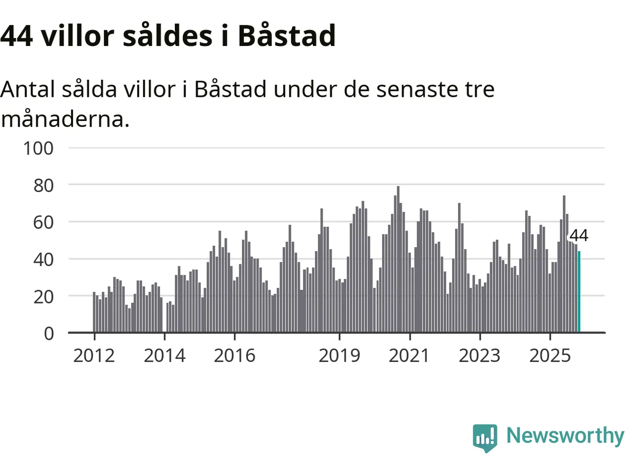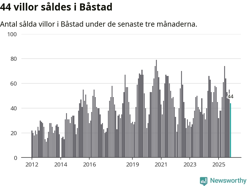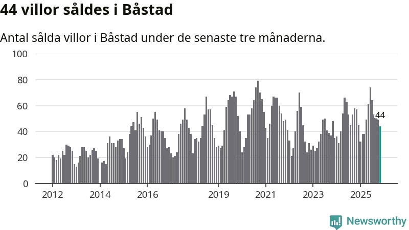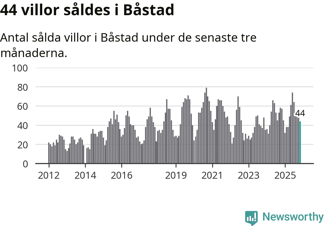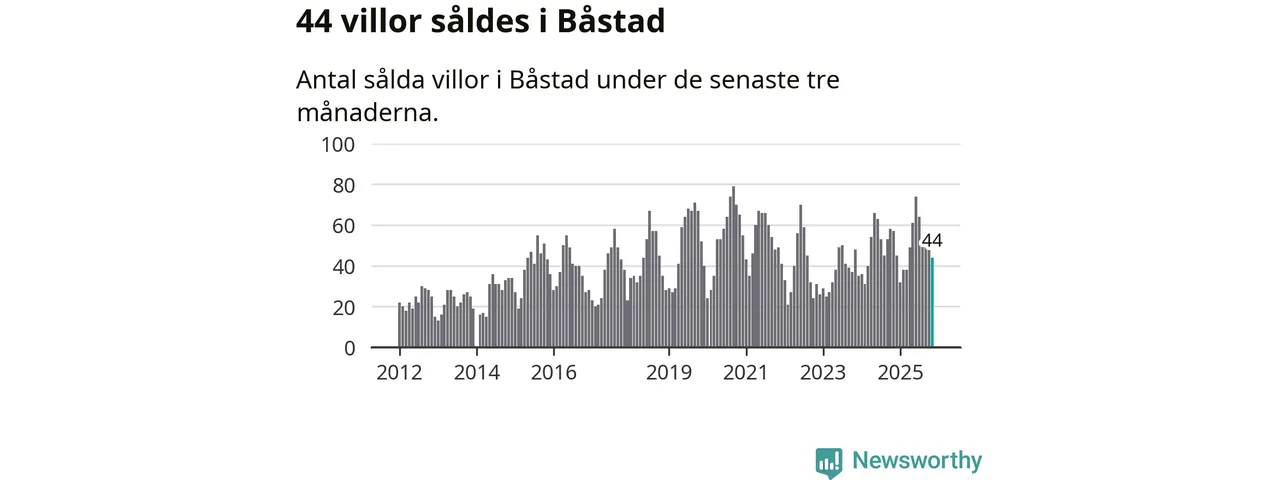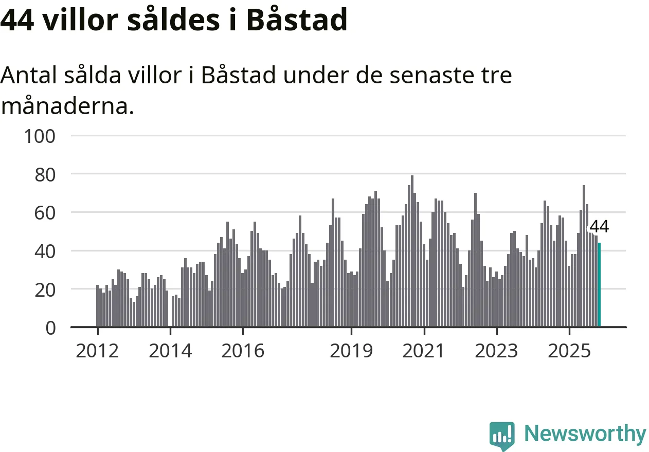 Sammanlagt såldes 44 villor i Båstads kommun mellan september och november till ett genomsnittligt pris på 6,3 miljoner kronor. I fjol gjordes 57 affärer vid den här tiden på året.