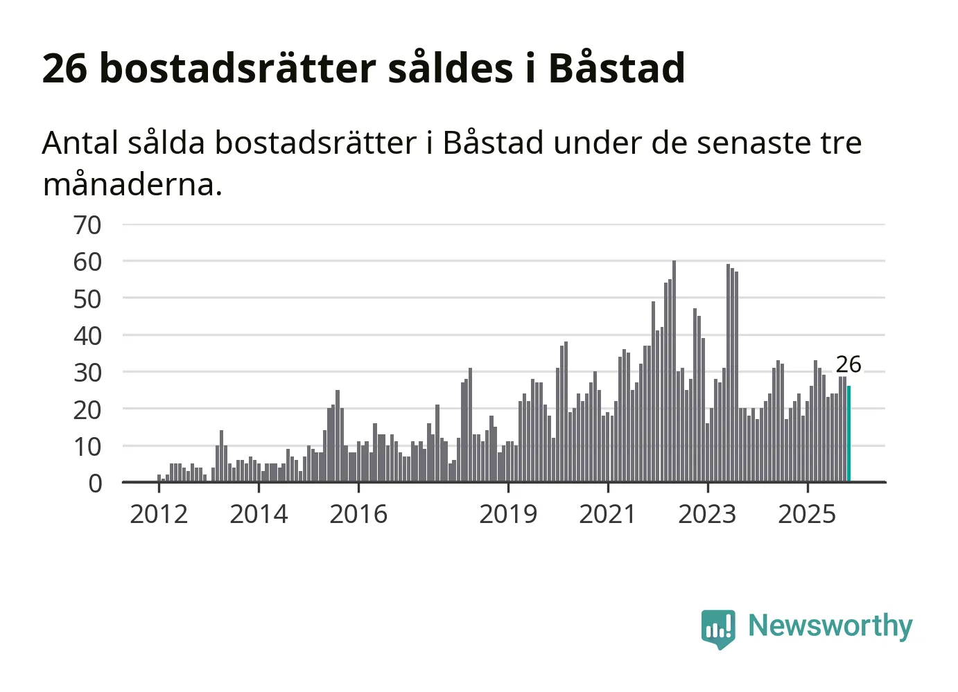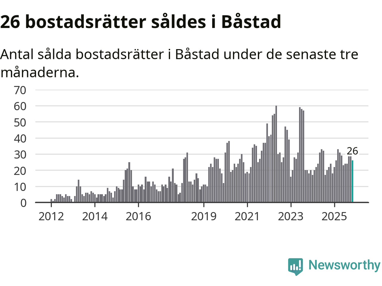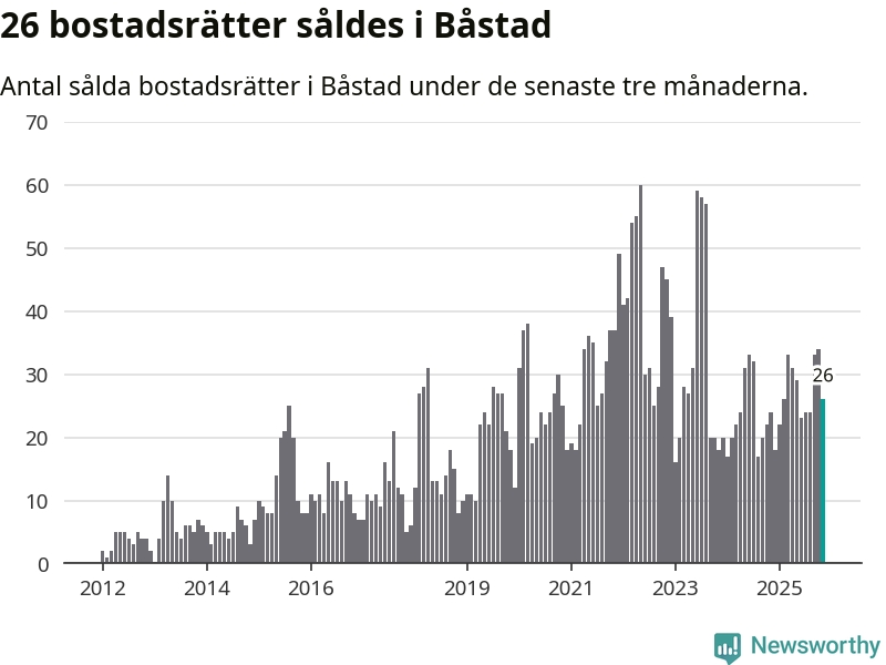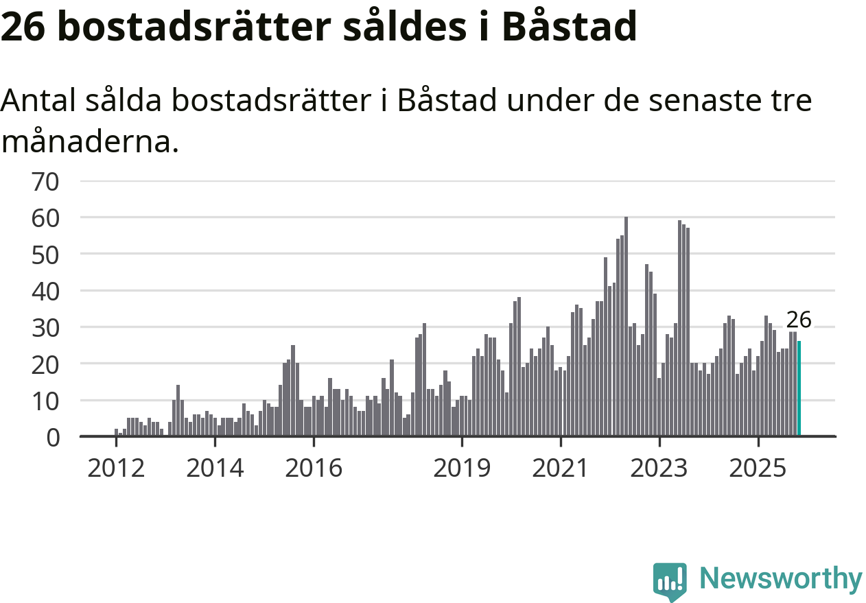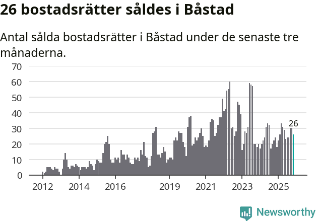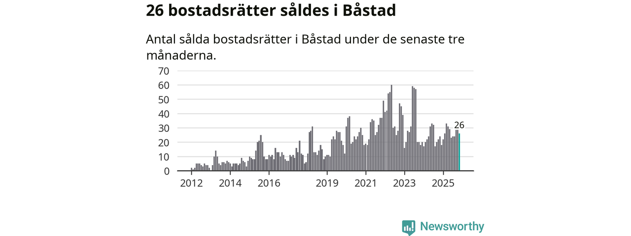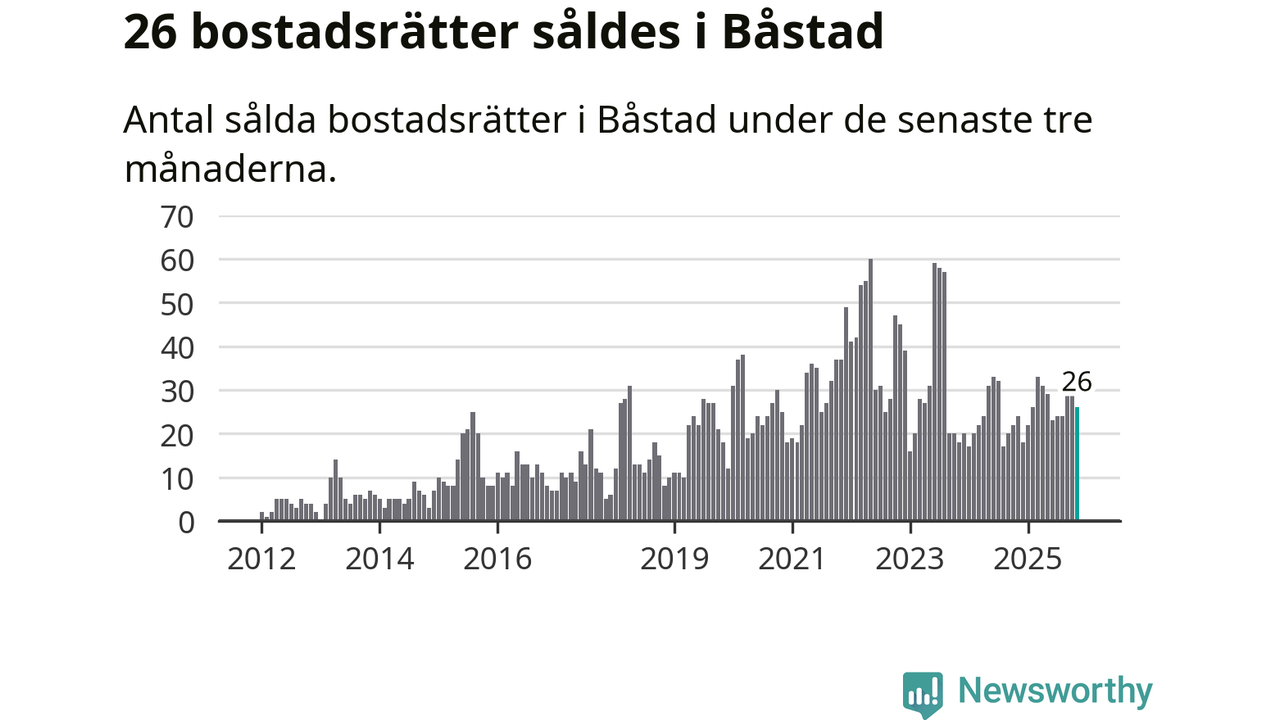 Mellan september och november gjordes sammanlagt 26 affärer med bostadsrätter i Båstads kommun. Det kan jämföras med 24 vid motsvarande tid i fjol.