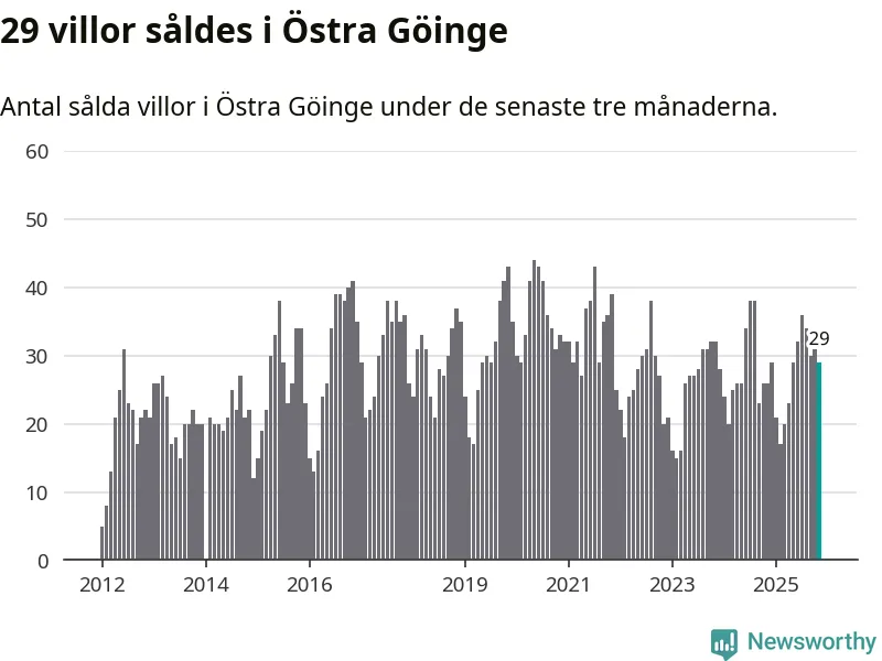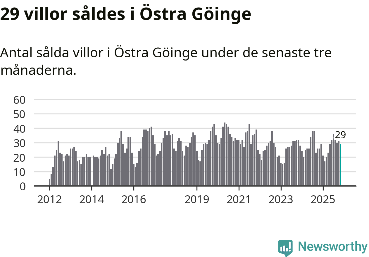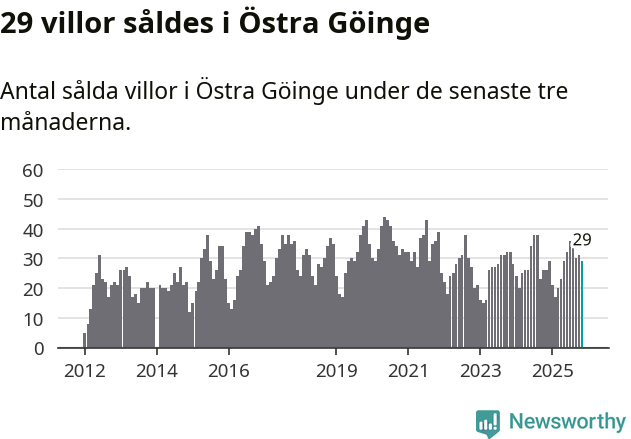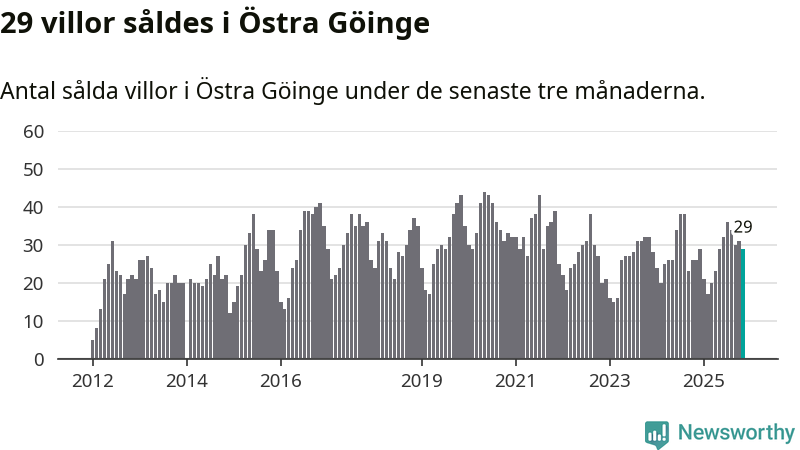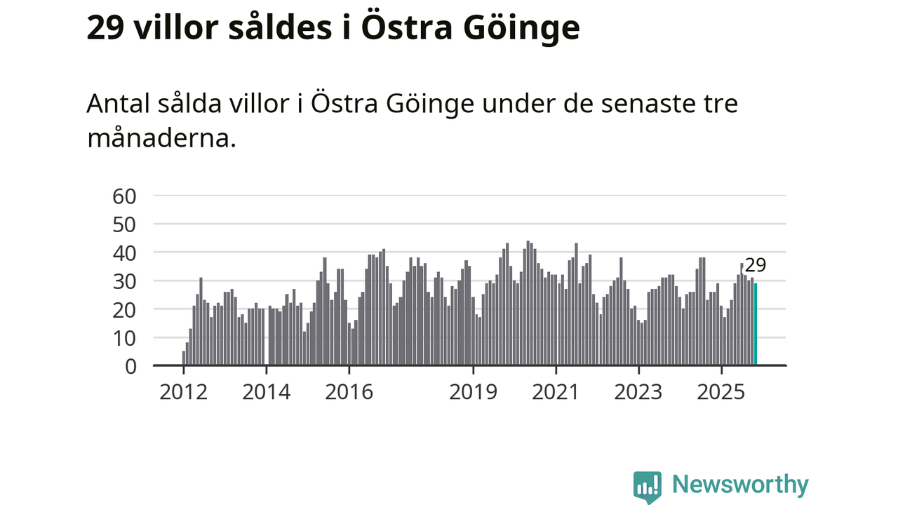 Mellan september och november gjordes sammanlagt 29 affärer med villor i Östra Göinge kommun. Det kan jämföras med 26 vid motsvarande tid i fjol.
