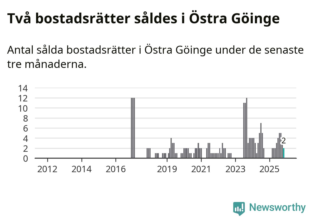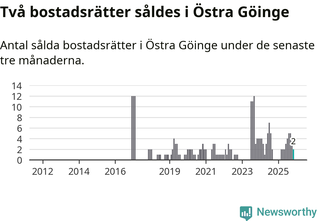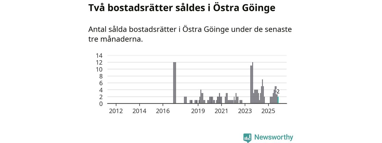 Graf: Antal sålda bostadsrätter i Östra Göinge kommun
