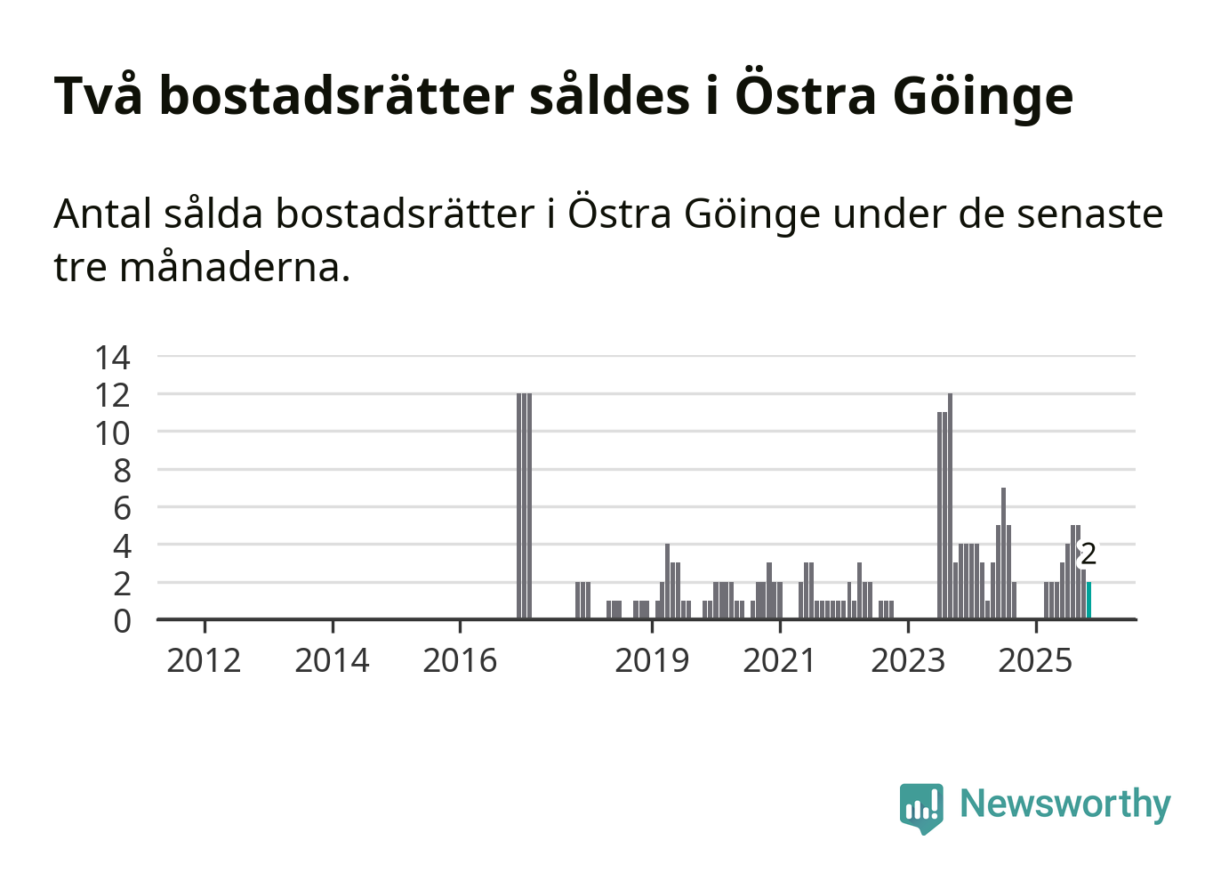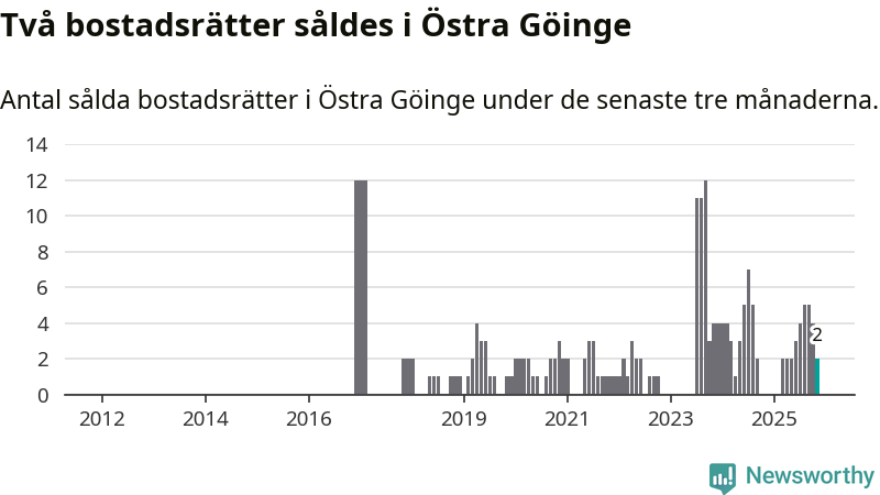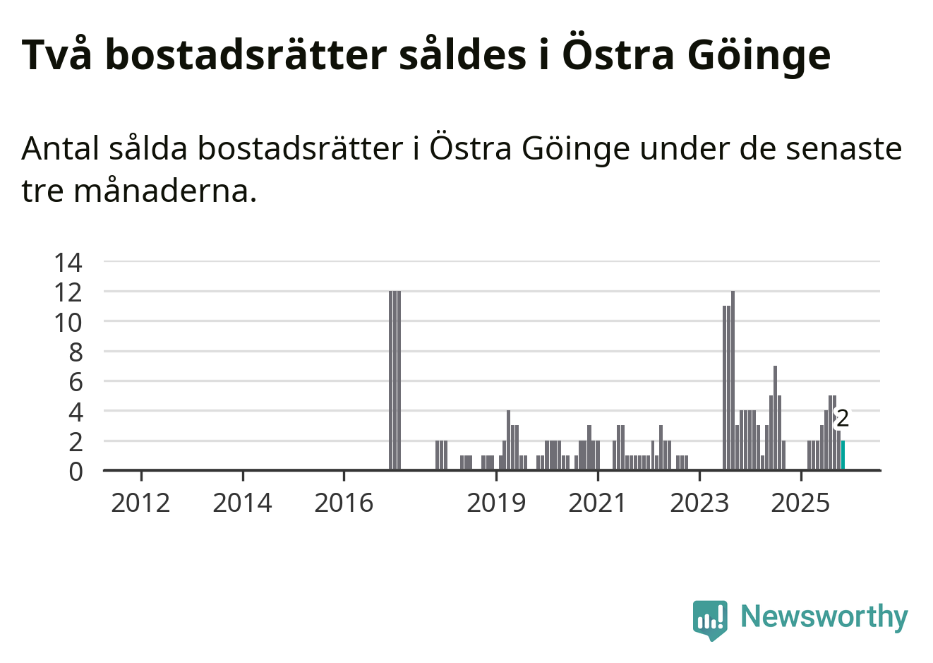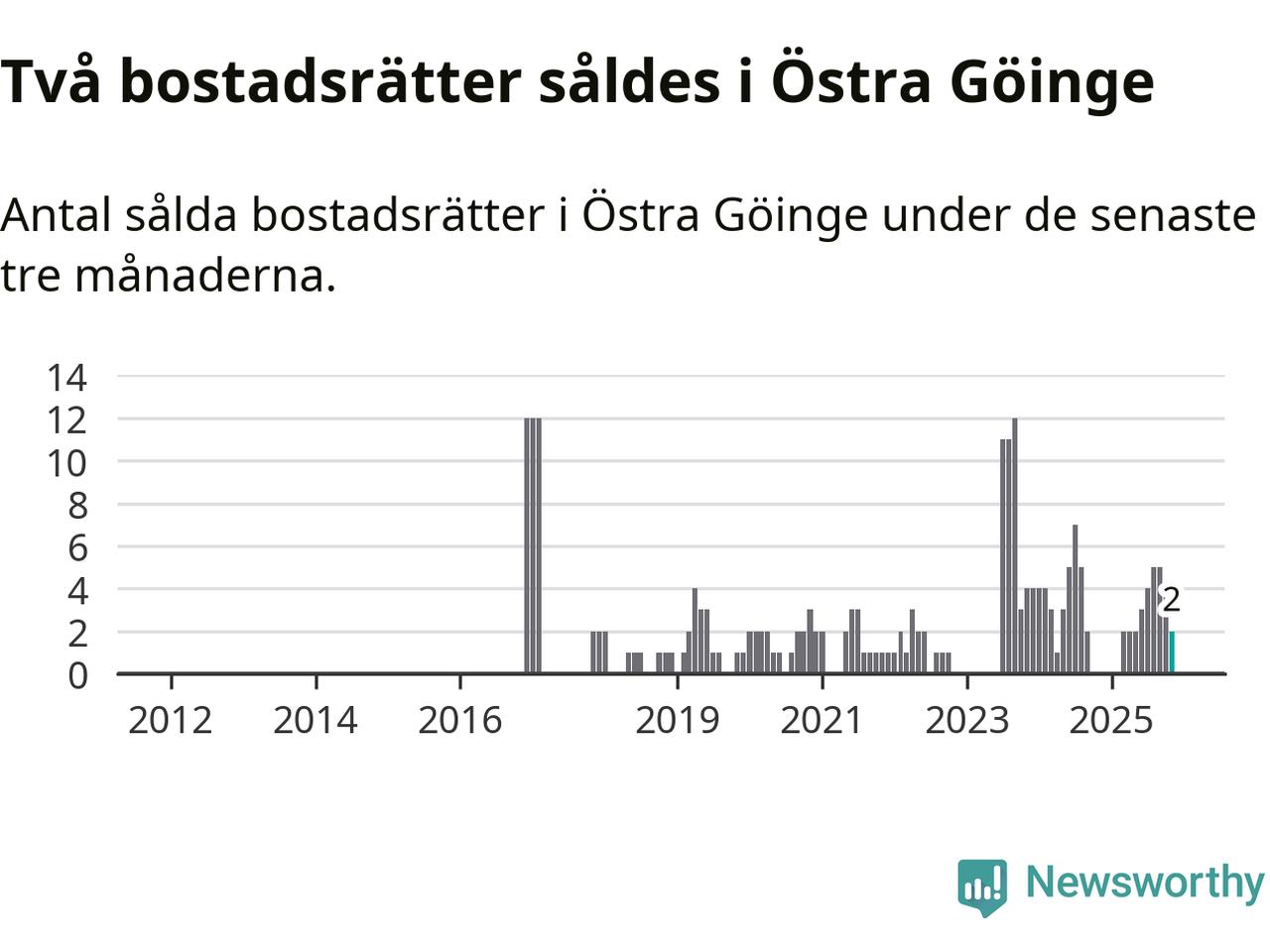 Graf: Antal sålda bostadsrätter i Östra Göinge kommun
