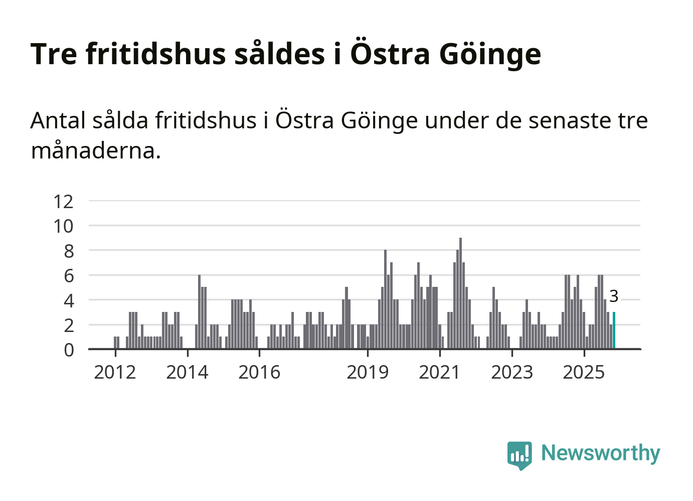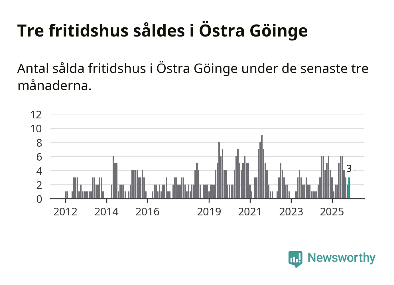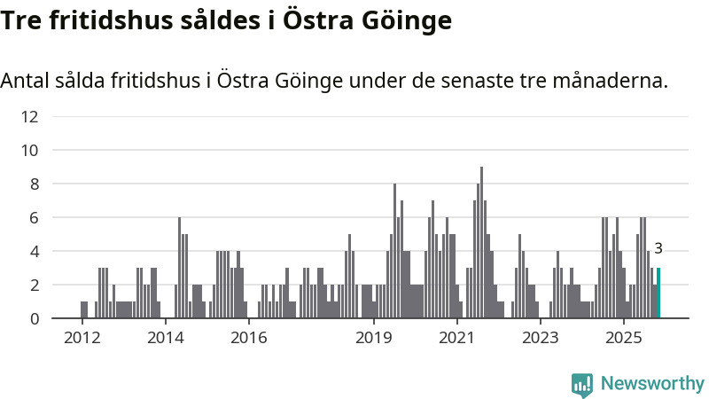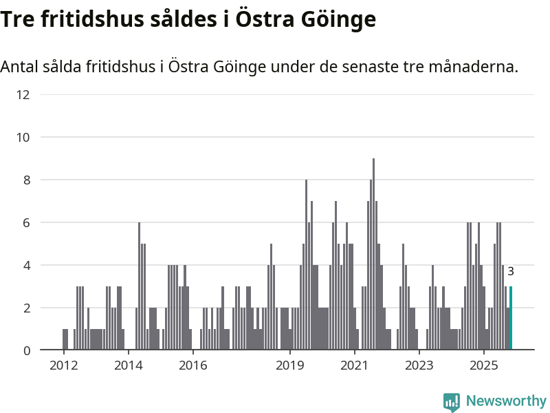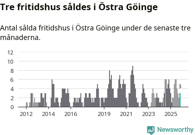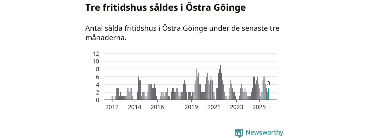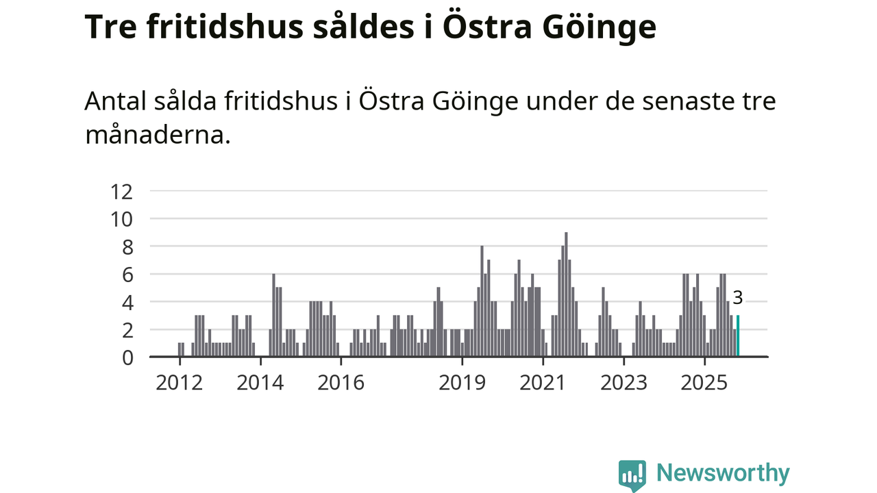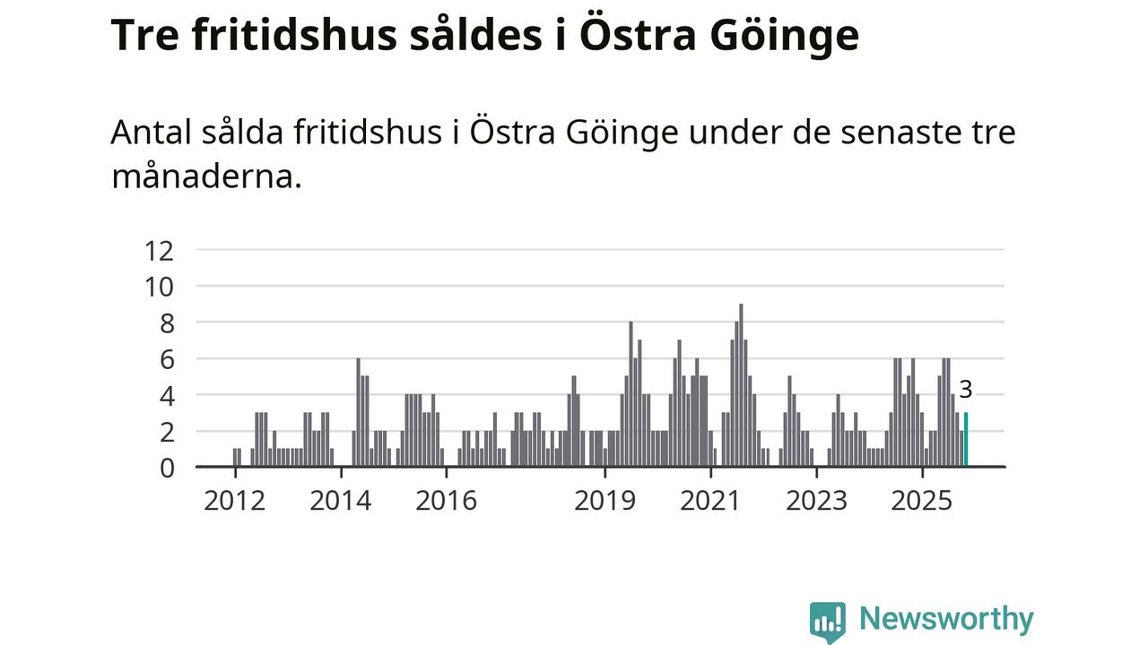 Mellan september och november gjordes sammanlagt tre affärer med fritidshus i Östra Göinge kommun. Det kan jämföras med sex vid motsvarande tid i fjol.