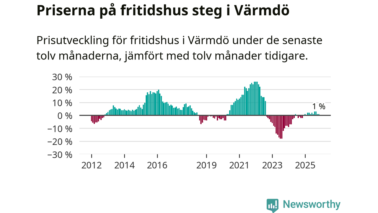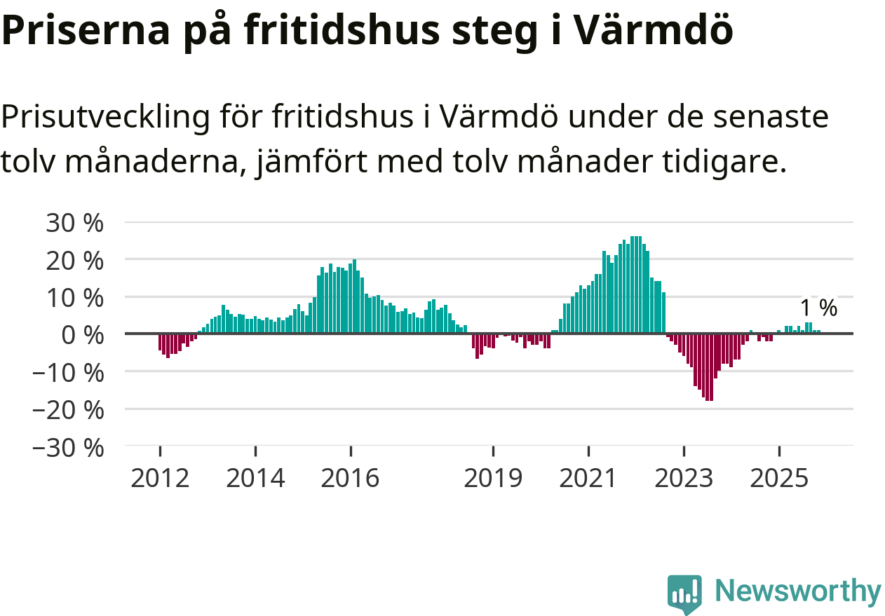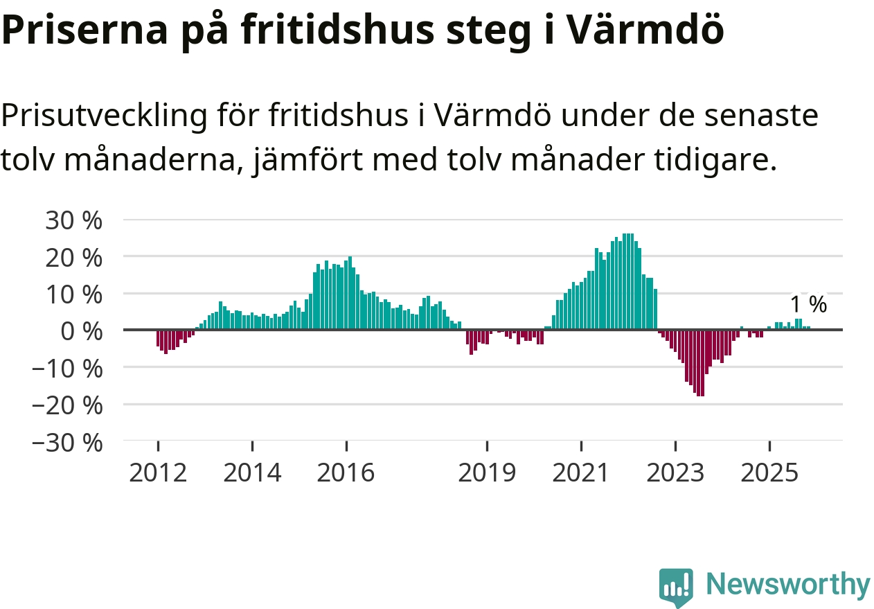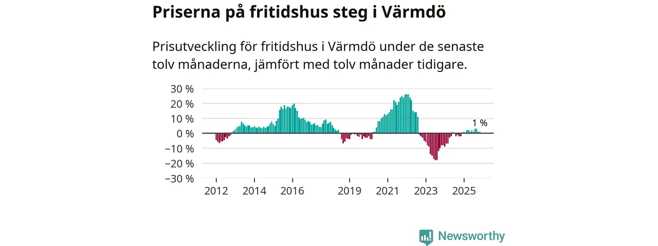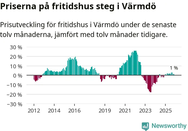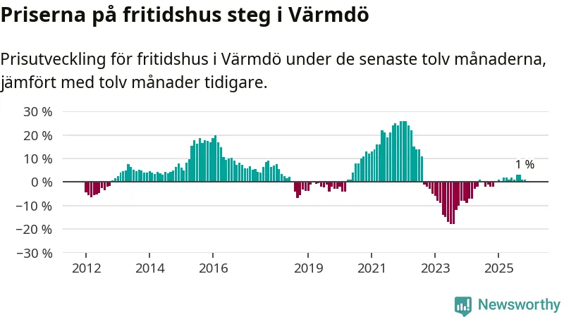 Priserna på fritidshus har gått upp i Värmdö kommun. Medelpriset på försäljningarna under de senaste tolv månaderna visar på en uppgång med 1 procent.
