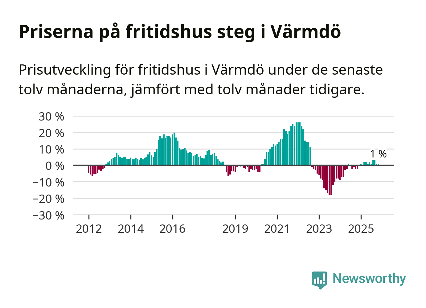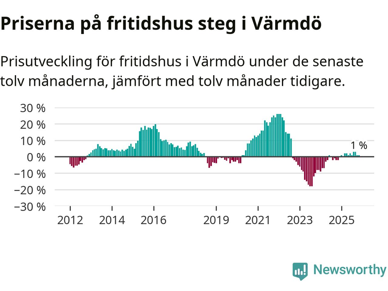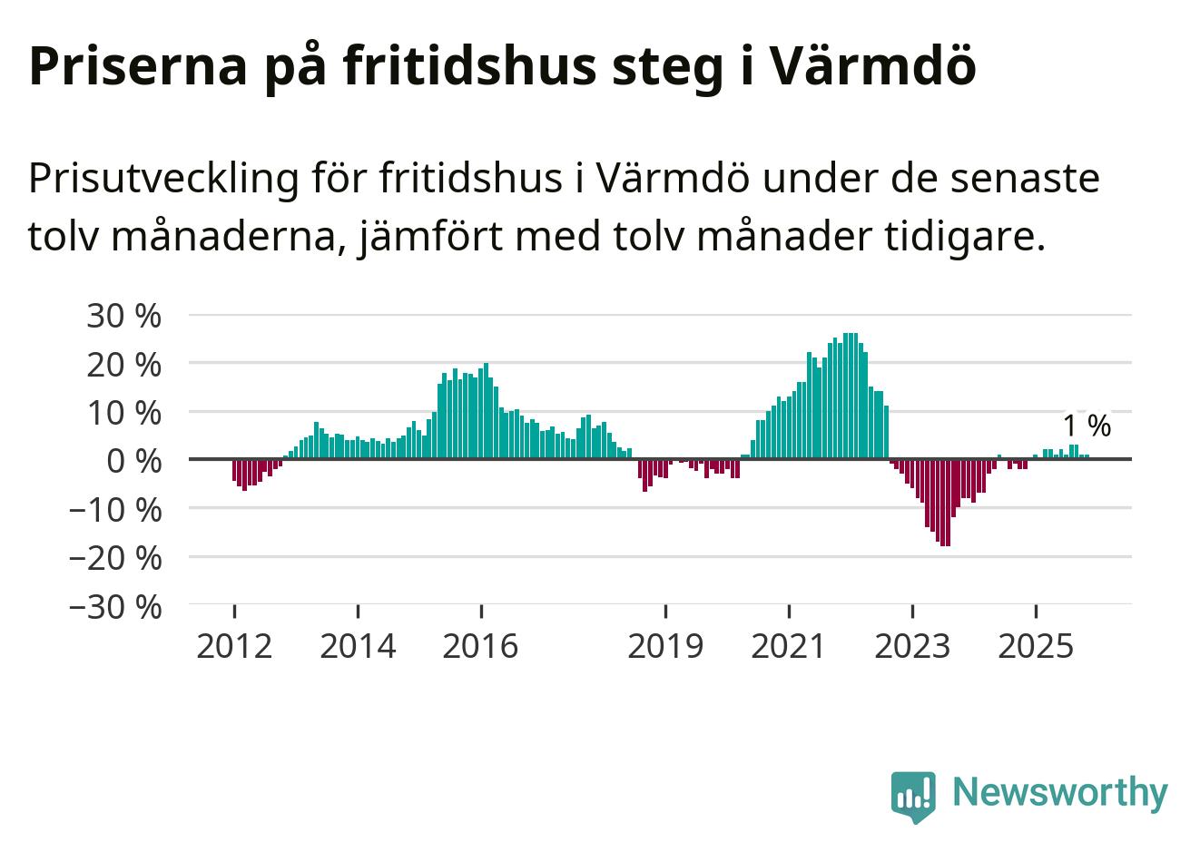 Priserna på fritidshus har gått upp i Värmdö kommun. Medelpriset på försäljningarna under de senaste tolv månaderna visar på en uppgång med 1 procent.