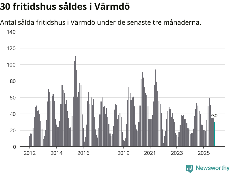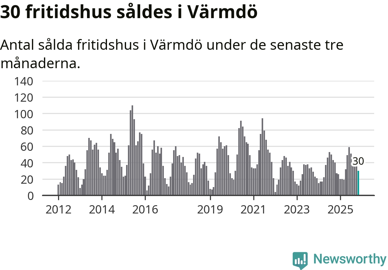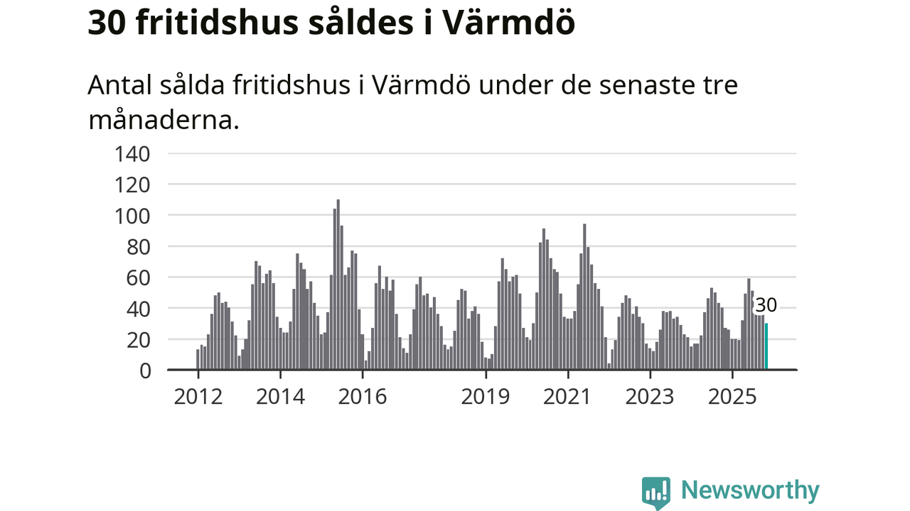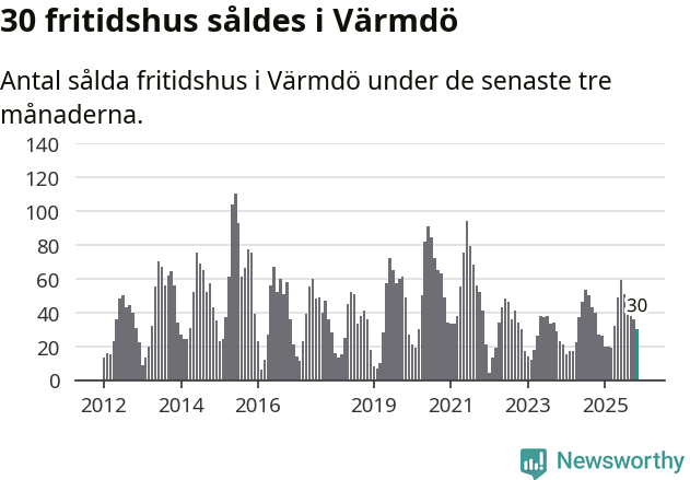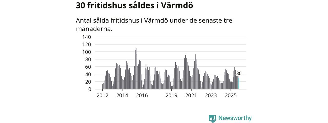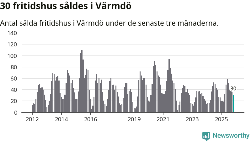 Graf: Antal sålda fritidshus i Värmdö kommun