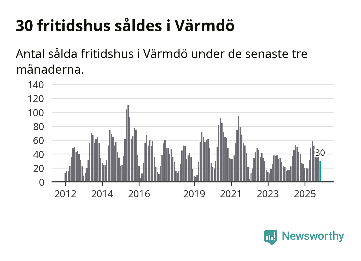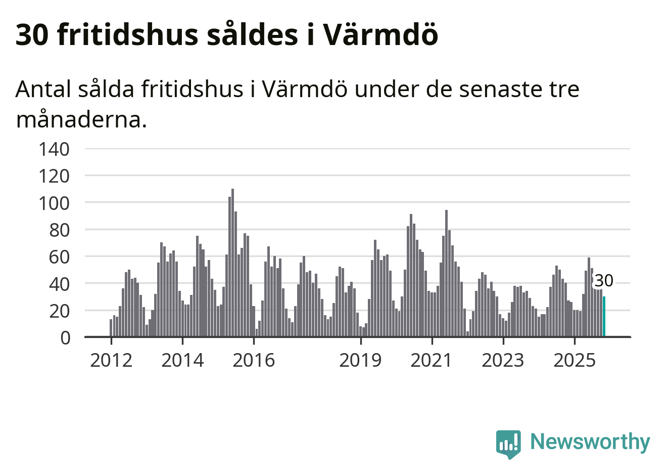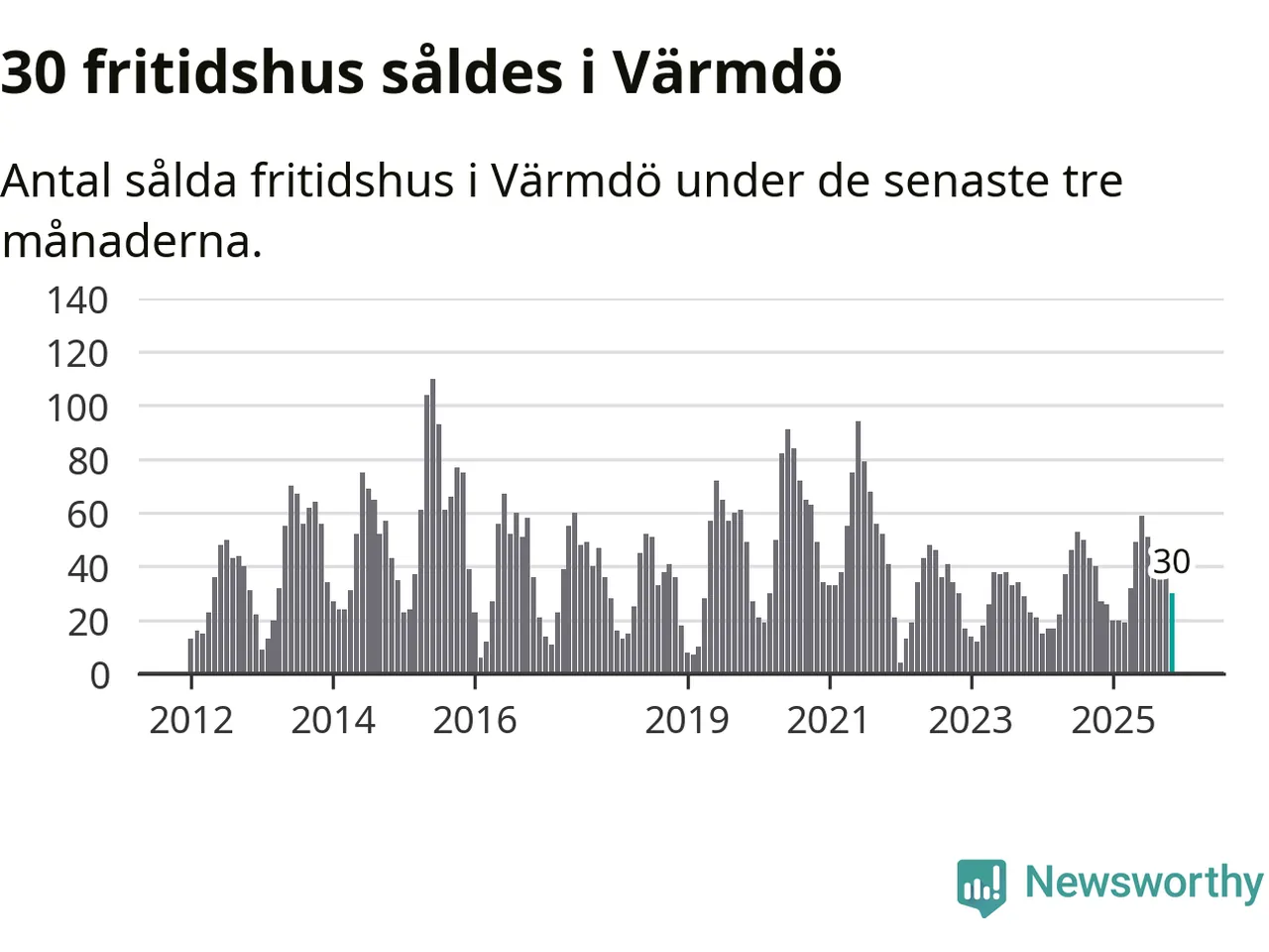 Graf: Antal sålda fritidshus i Värmdö kommun