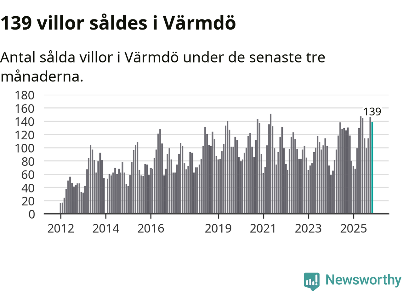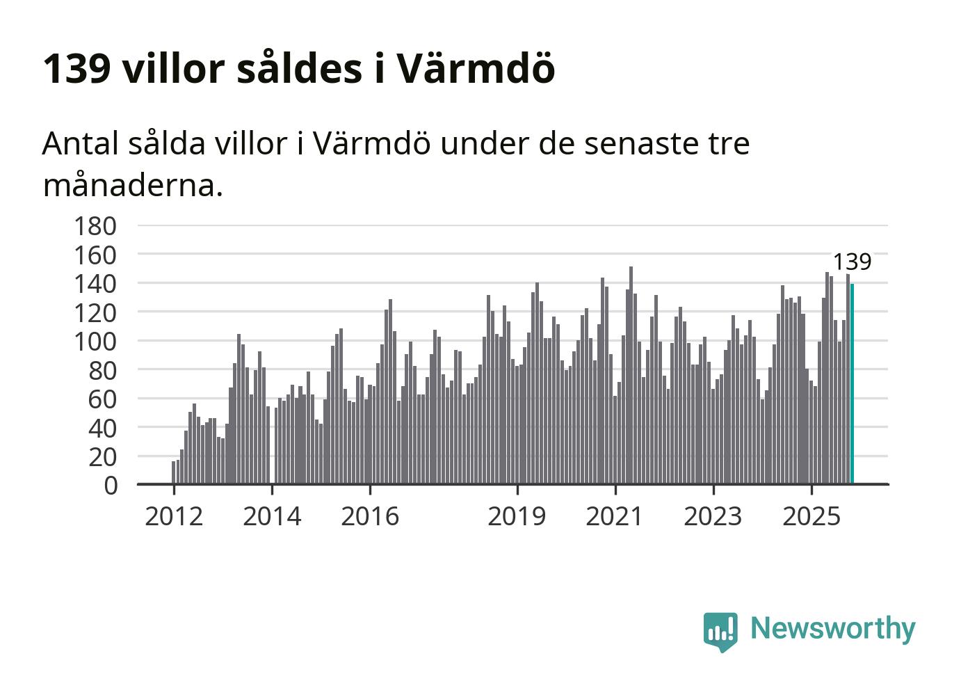 Graf: Antal sålda villor i Värmdö kommun